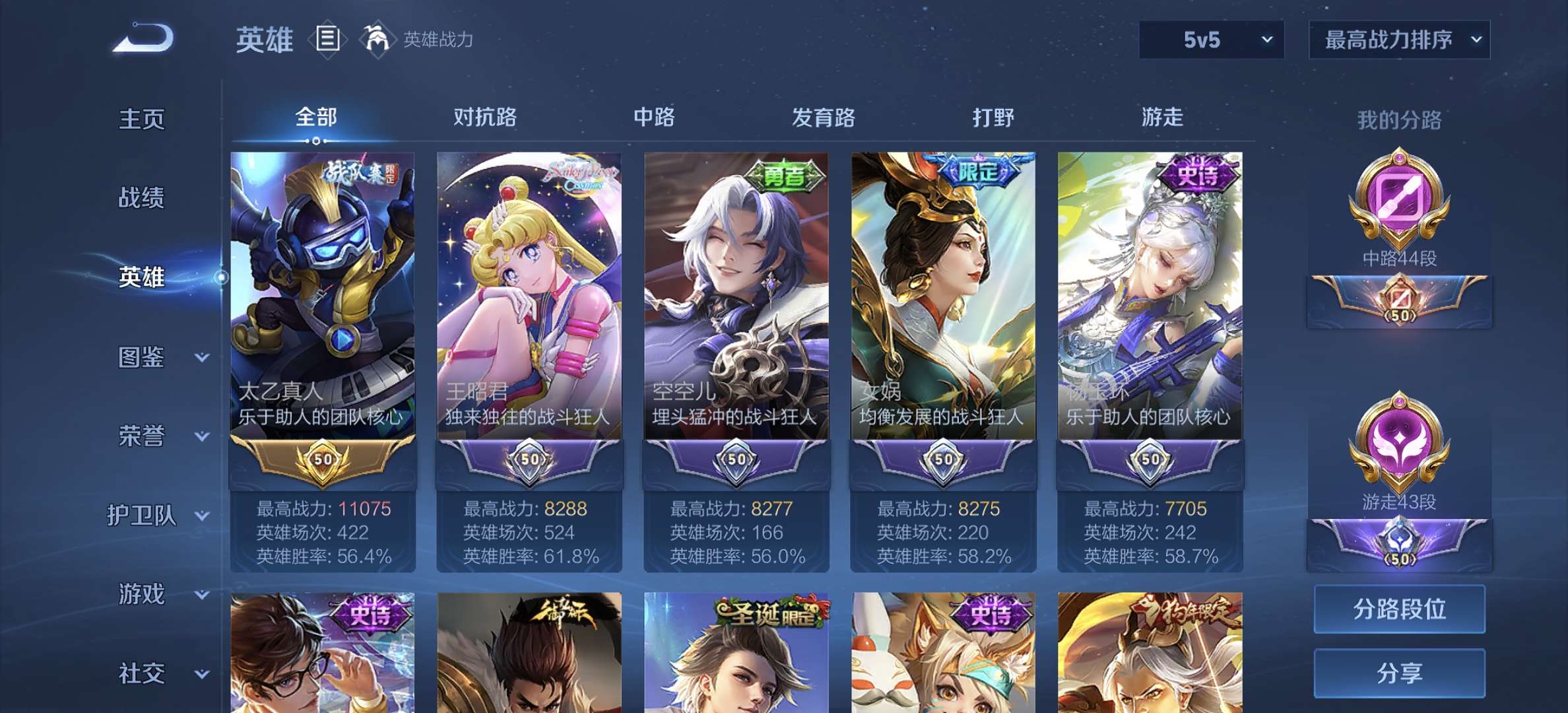 历史1.1w战力好多绝版皮肤,美少女战士,至尊宝,签名按键淘汰播报都有,和平有升级枪和玛莎,一万星币