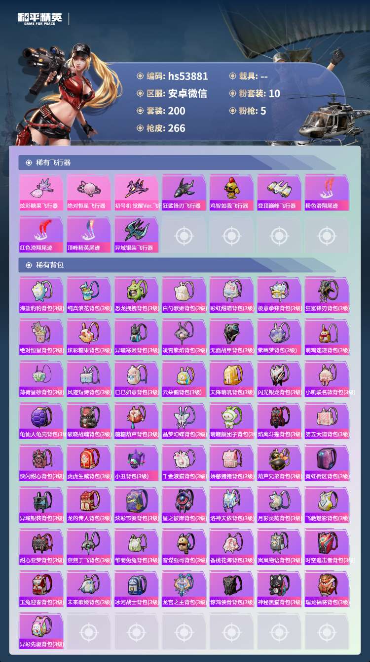 hs53881 安卓微-23王牌印记-10粉装-5特效枪-82092热力值-200套装-266枪皮