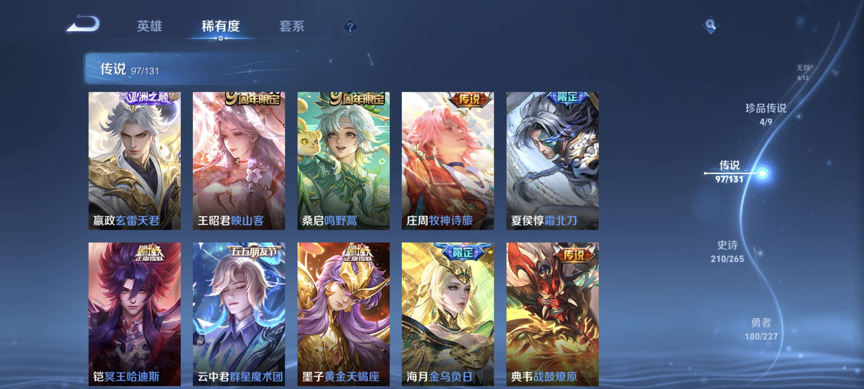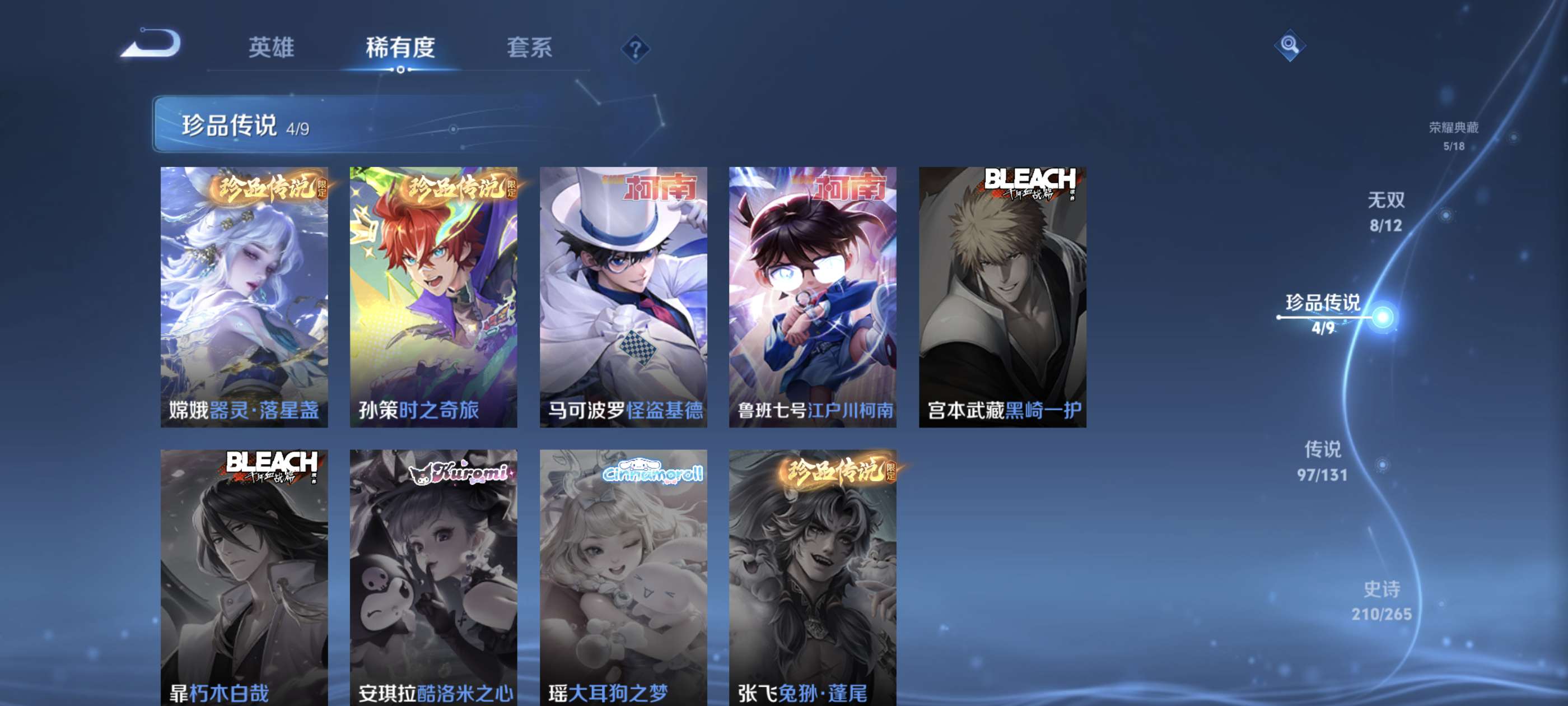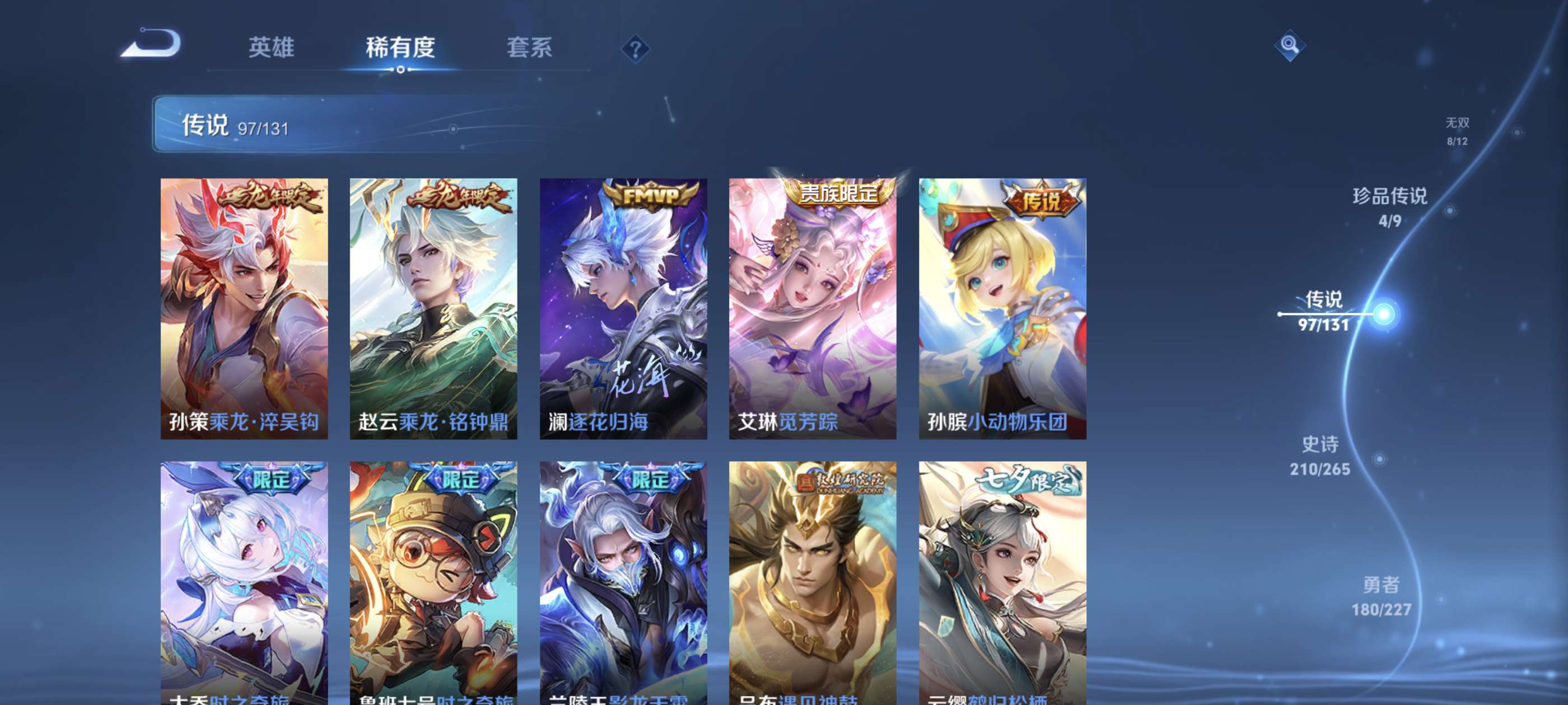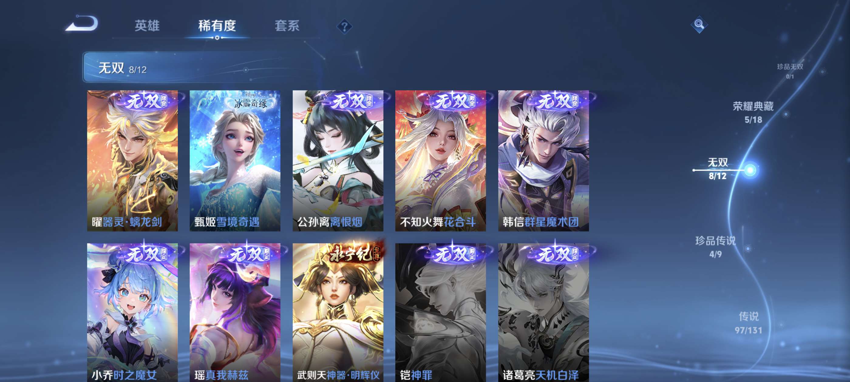 586皮肤 7典藏(小兵和武则天英雄)8无双 4珍品 97传说
