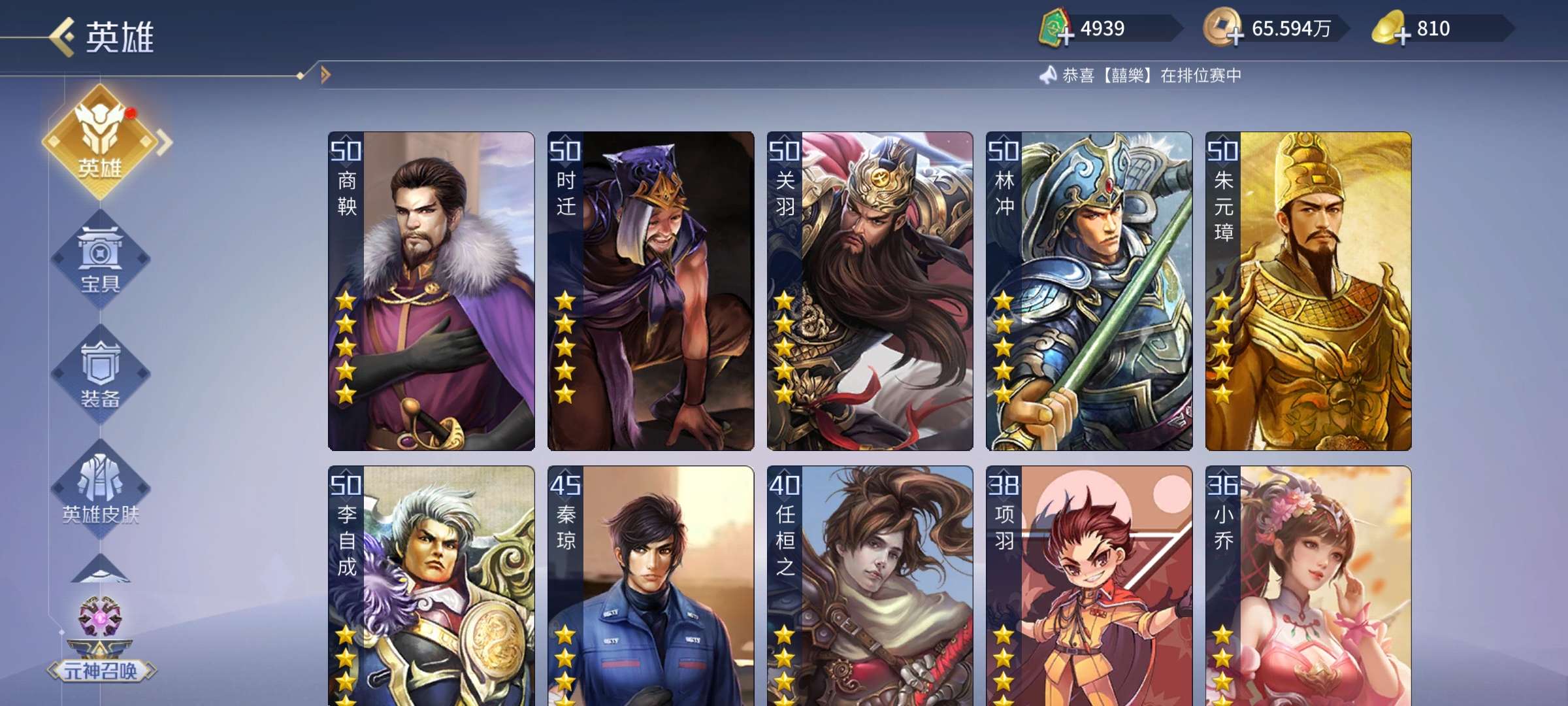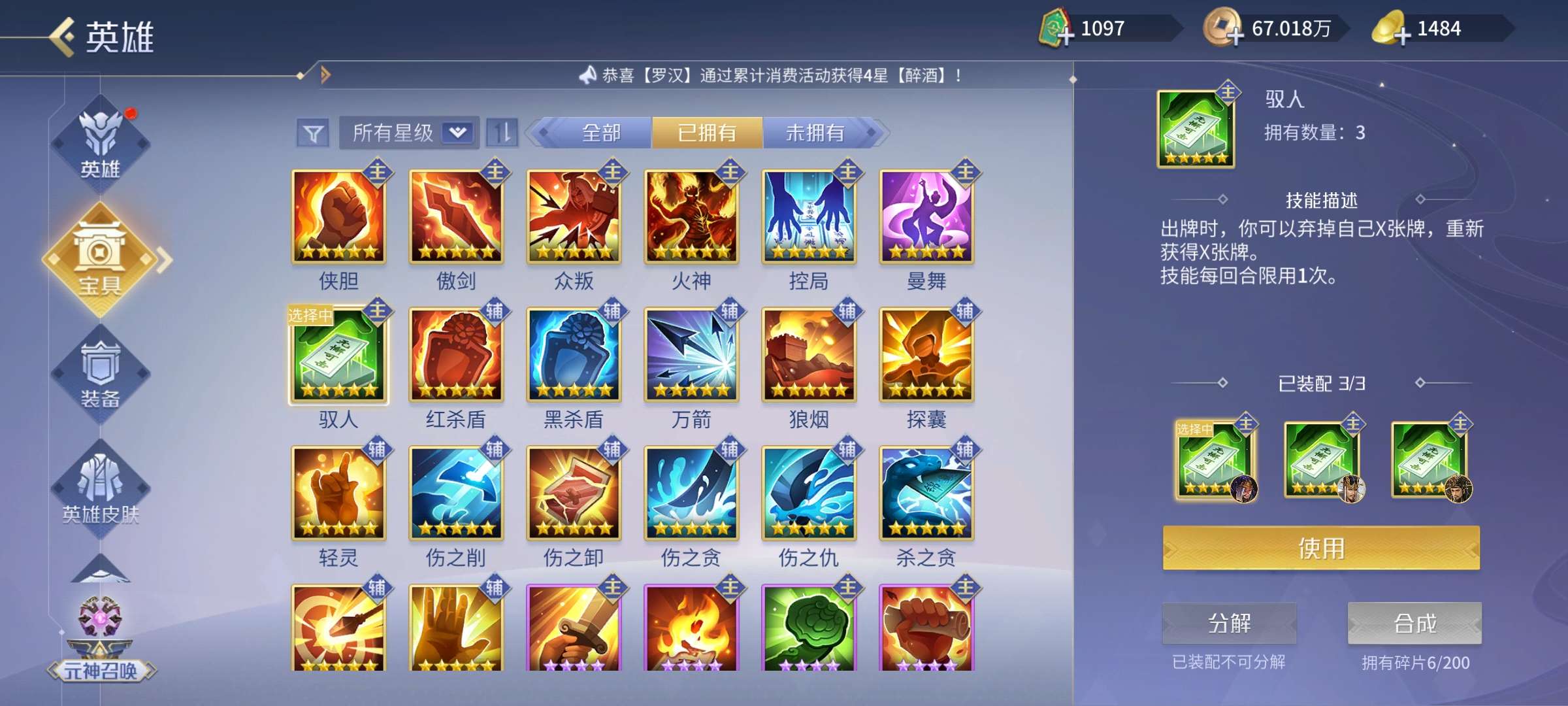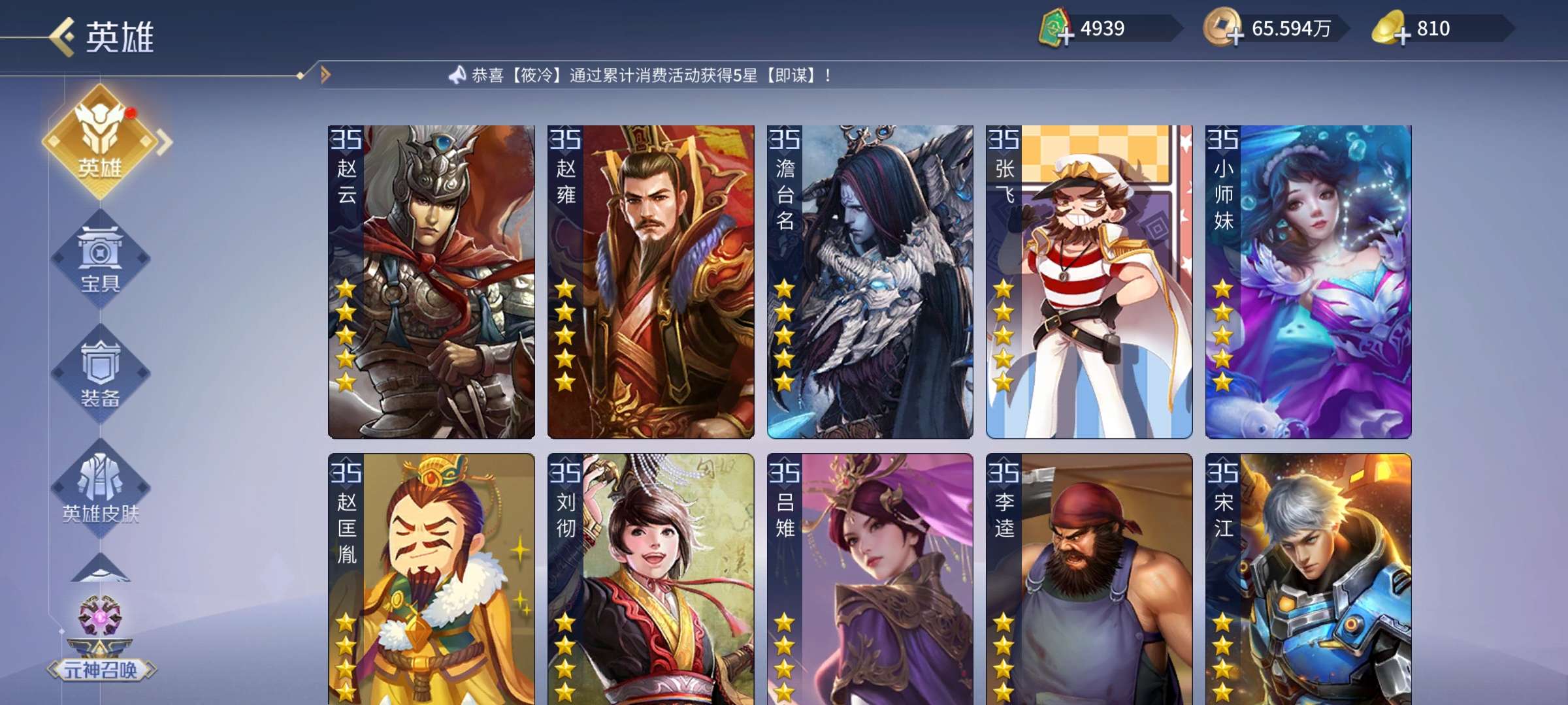 5侠两傲3驭人两控一曼舞,商偷芈月诸葛都能玩,两套4星套大量资源