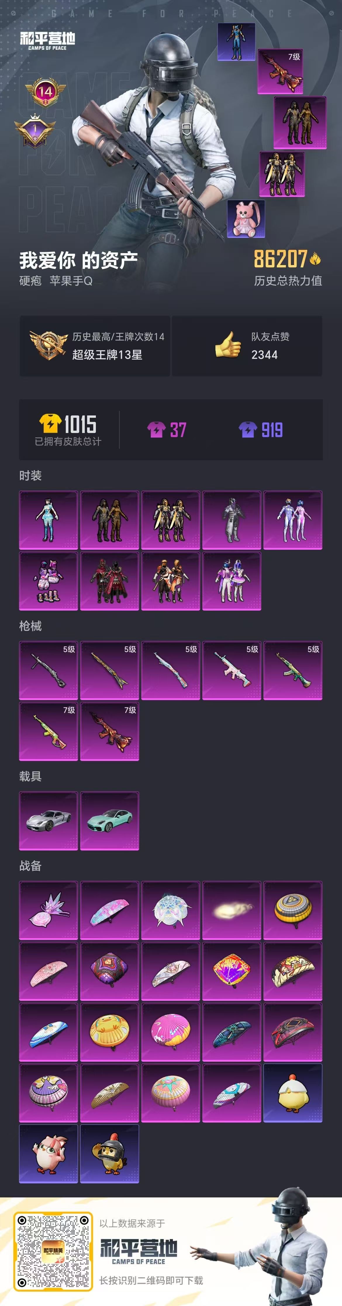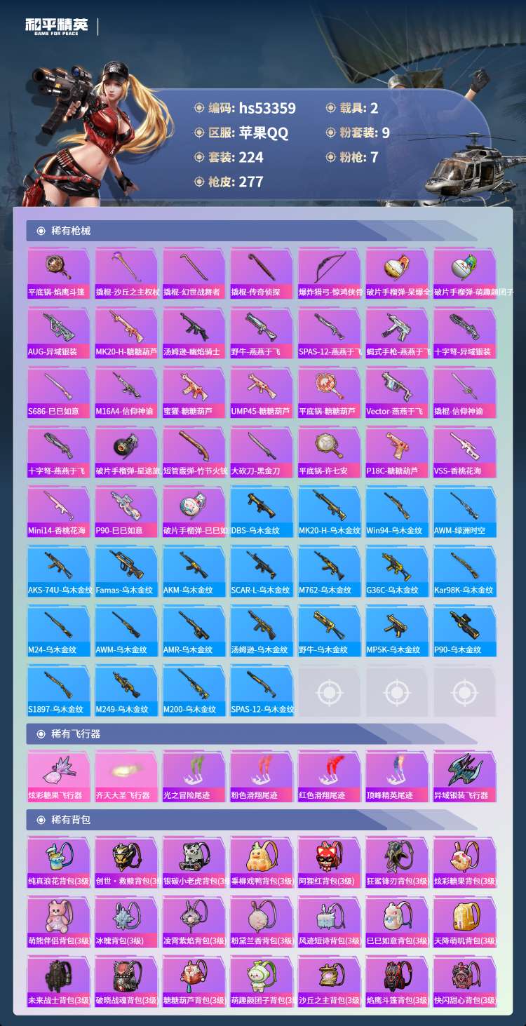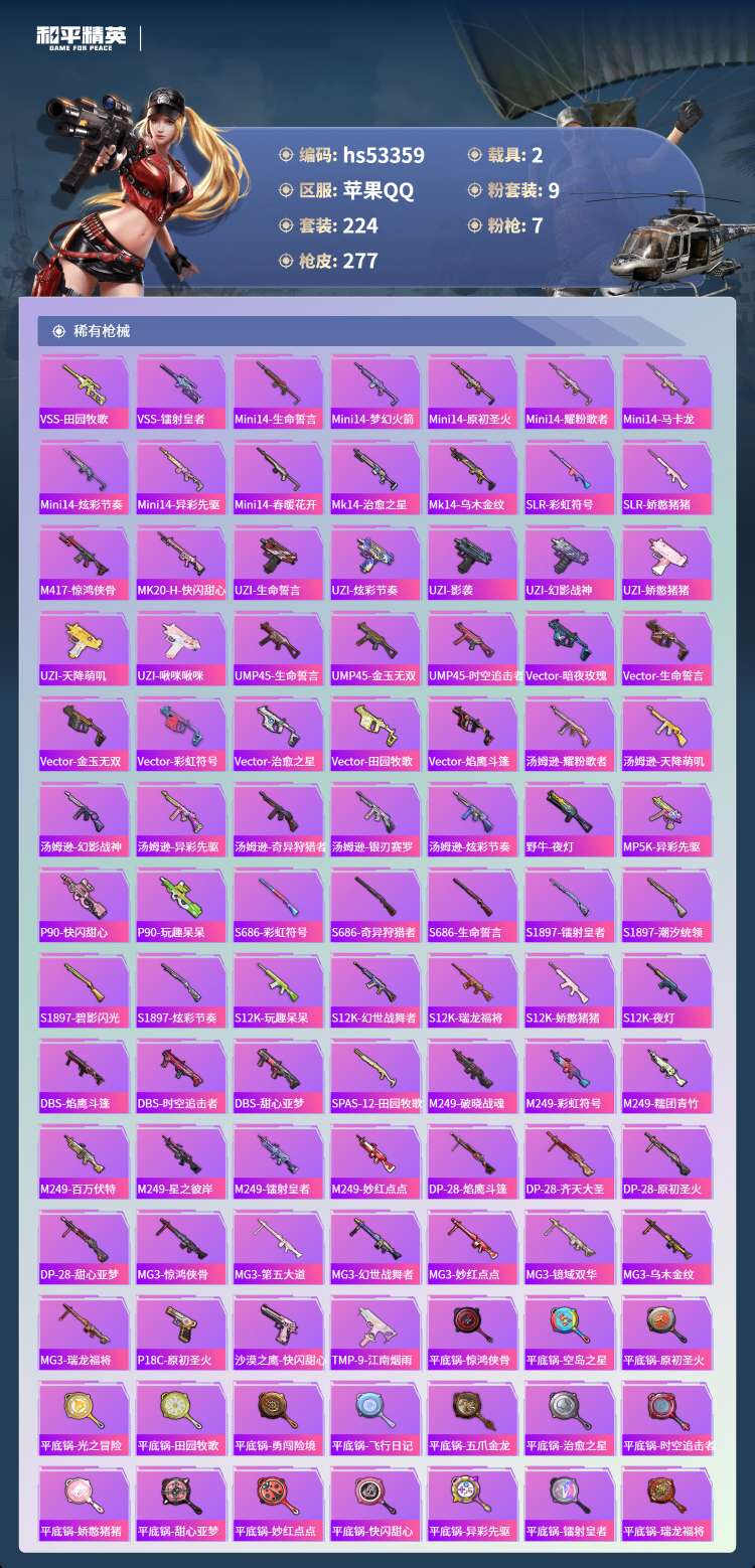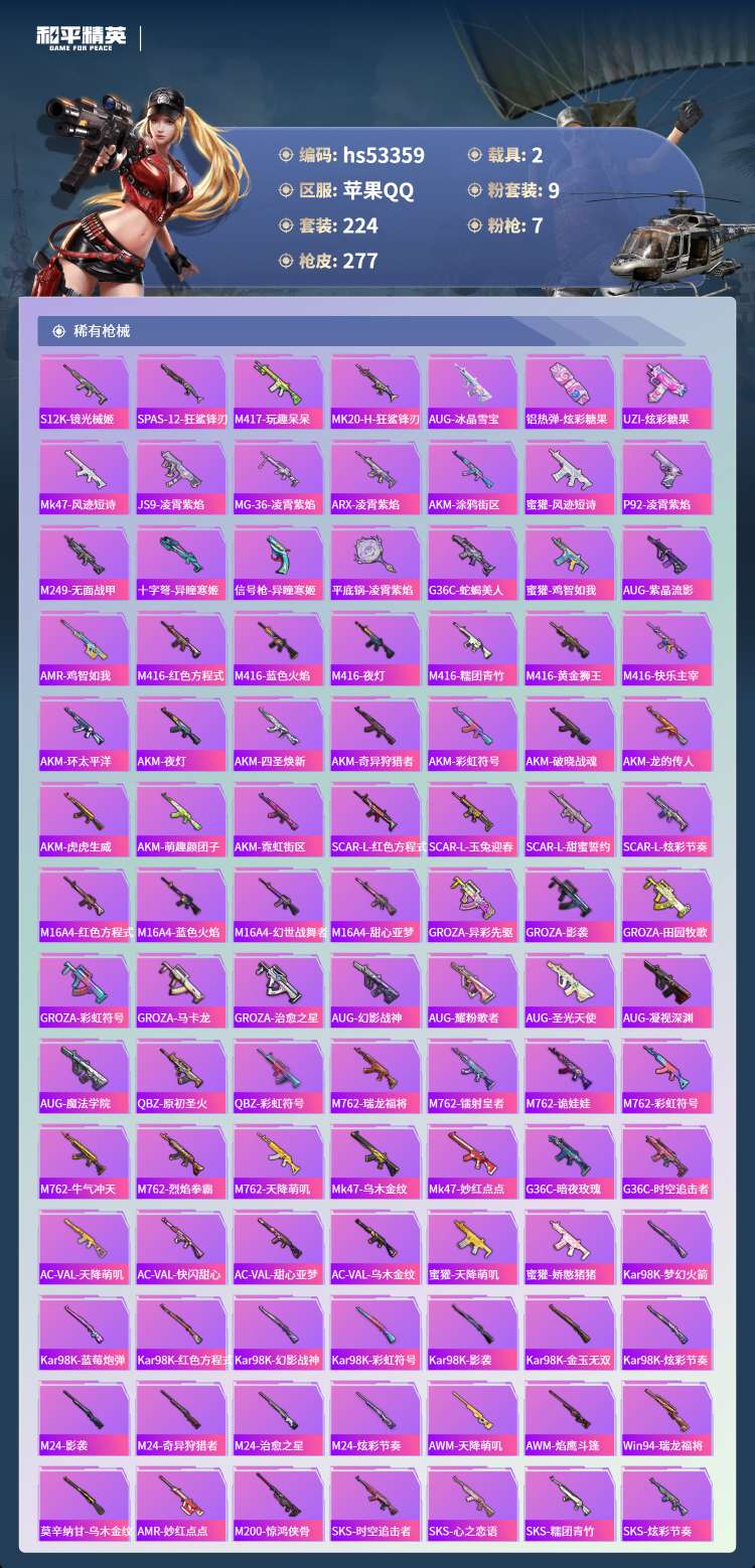 hs53359 苹果手Q-14王牌印记-9粉装-7特效枪-2载具-86207热力值-224套装-2