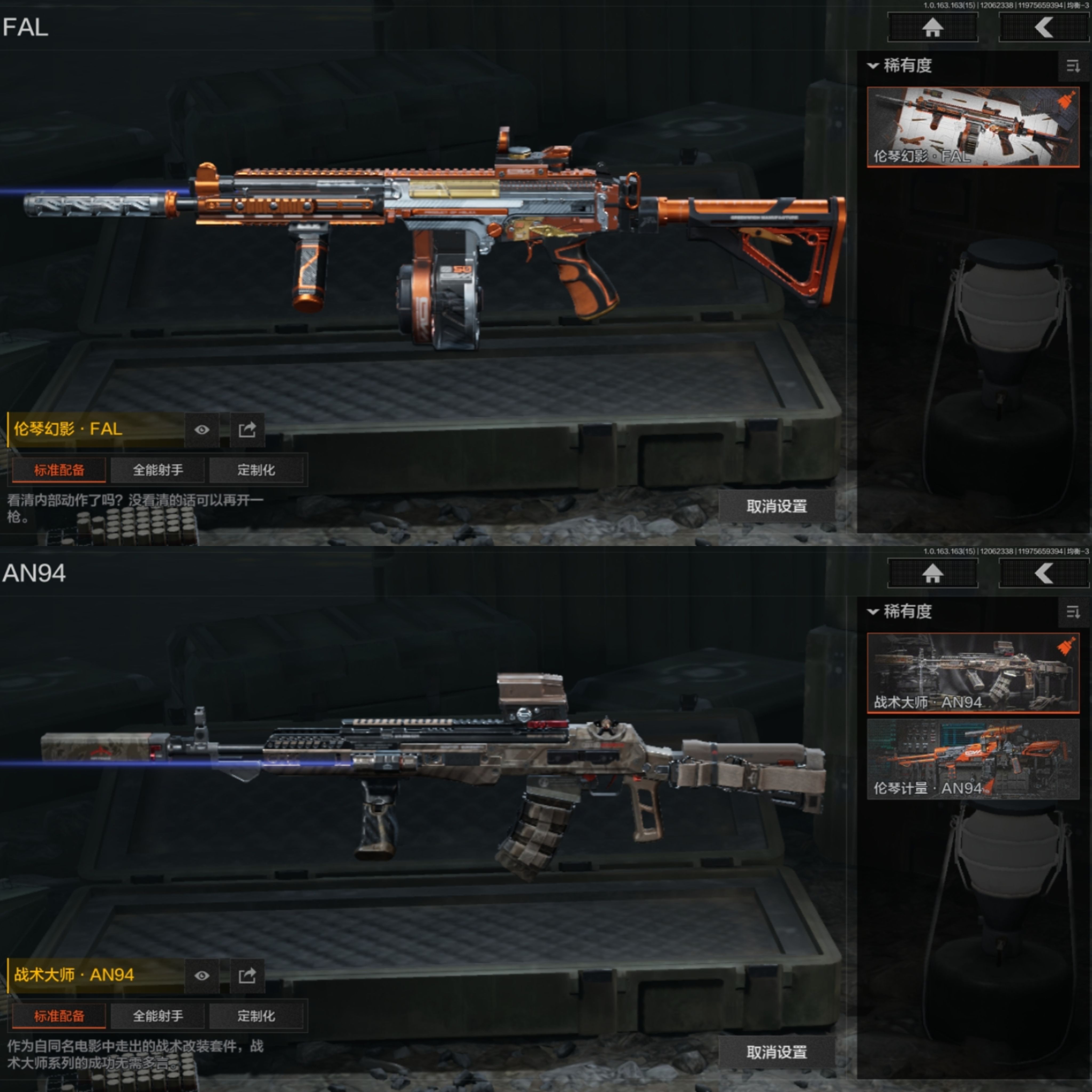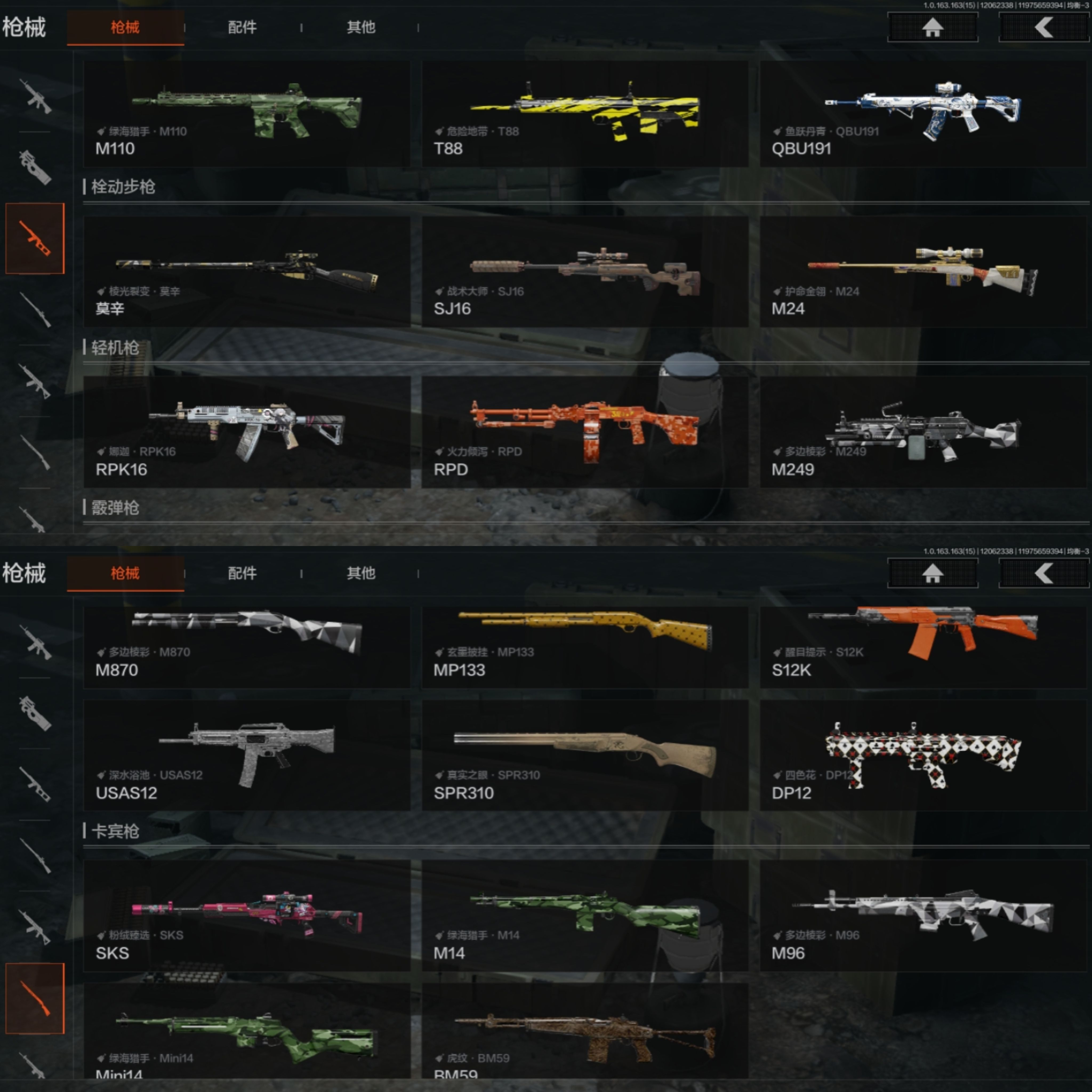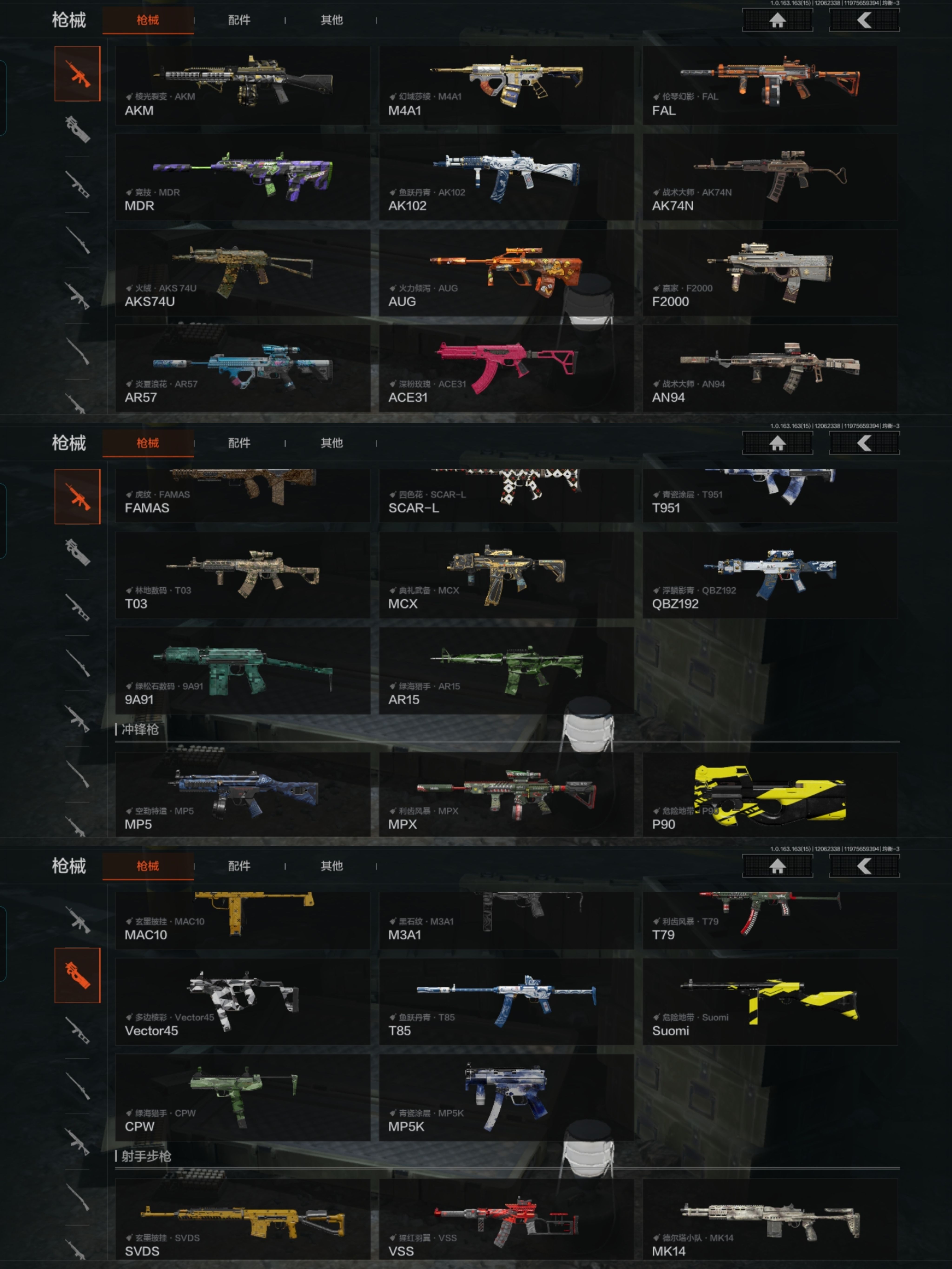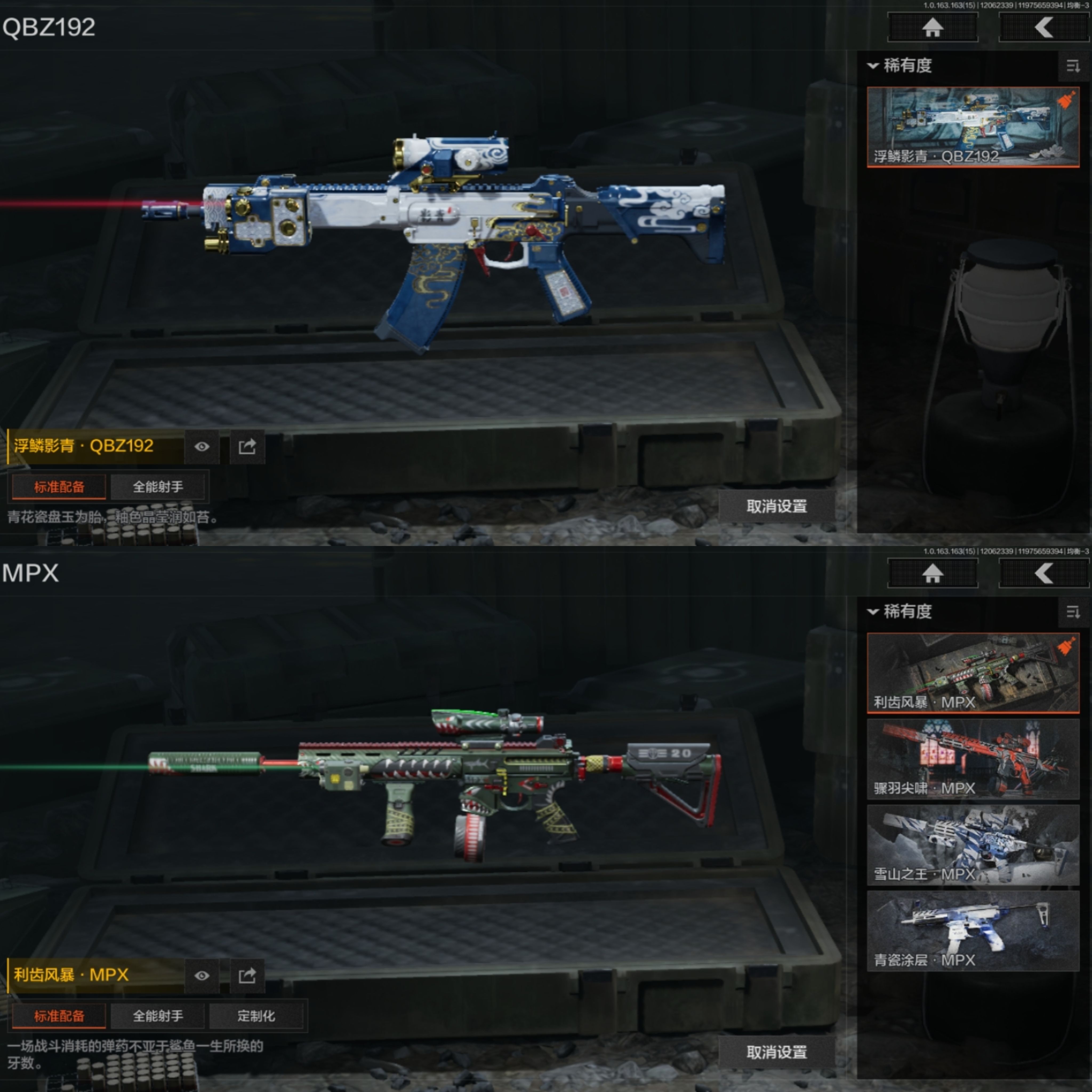 FY5840,总资产9m,近战武器:,苍穹利爪,赢家匕首,王国卫队礼装,都市夜影套装,伦琴幻影·FAL,战术大师·AN94,浮麟影青·QBZ192,利齿风暴·MPX,棱光裂变·AKM,竞技·MDR,炎夏浪花·AR57,林地数码·T03,幻域莎绫·M4A1,鱼跃丹青·AK102,火力倾泻·AUG,典礼武备·MCX,暗区突围安卓Q区实名:可修改
