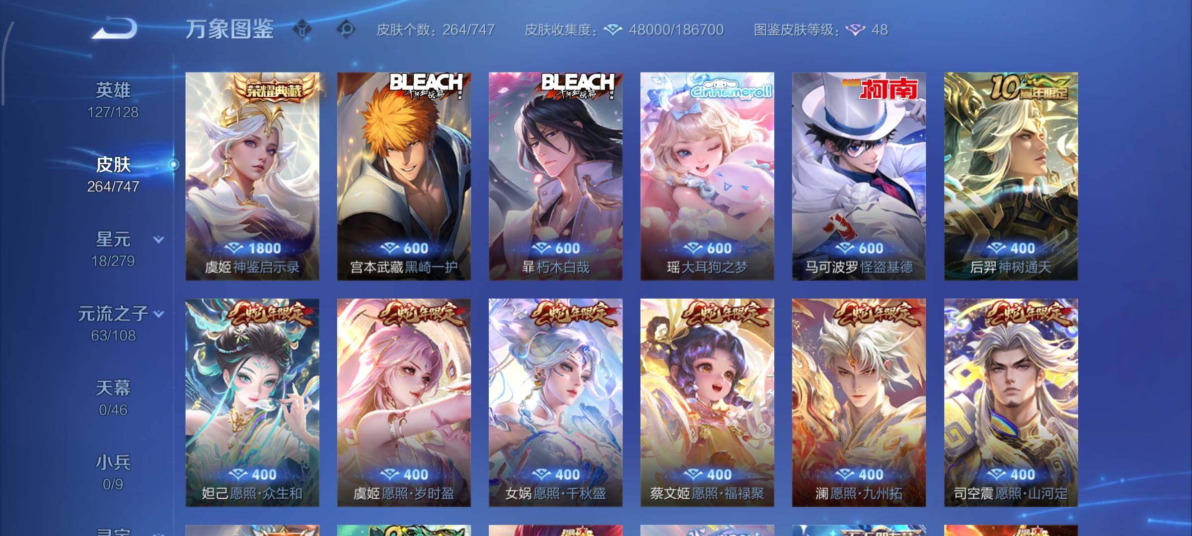 营地账号:/【高性价比·满蛇龙年限定·神鉴启示录·马可怪盗基德·瑶大耳狗之梦·暃朽木白哉·黑崎一护·心动手记·金乌负日·马超琥珀纪元·铠琥珀纪元·霜月吟·深海之息·前尘镜·浮生妄·妄想实况·鹤归松栖·大乔时之奇旅·永恒水手月亮·夜礼服假面·可二次】YXw8237-安卓Q-127英雄-264皮肤-6王者印记-50铭文-贵族积分8w【贵族8】【1典藏·4珍品·2星传说·39传说·