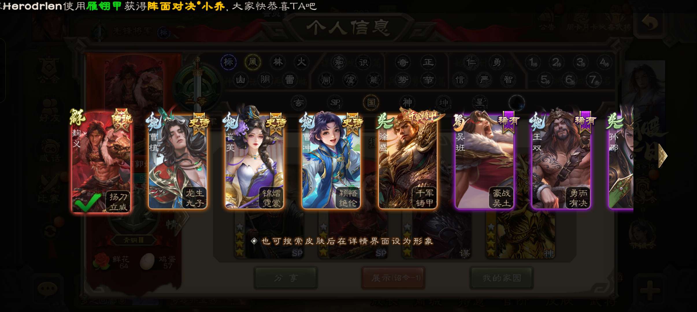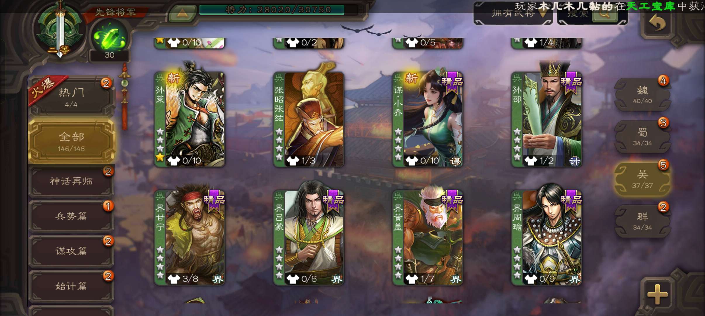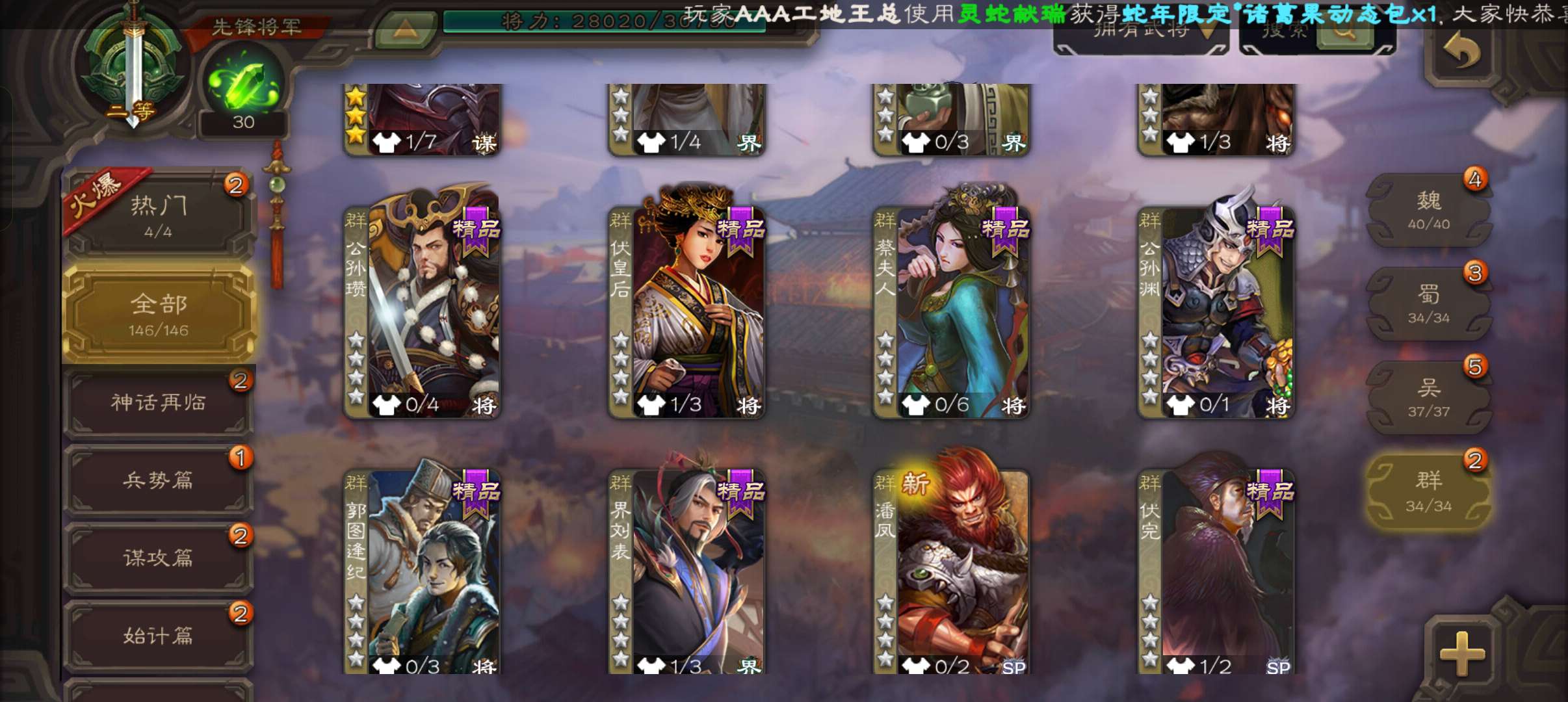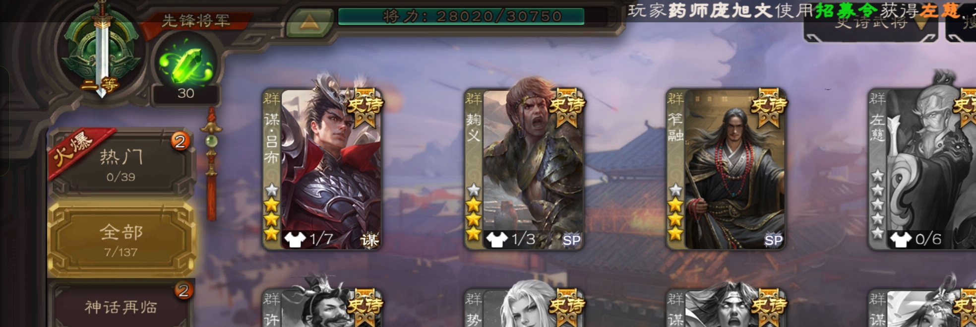 7史诗先锋,7万豆5万毛,笮荣谋吕布回廊动白马神吕布谋马超沙摩柯王粲,谋小乔甘夫人袁涣146将