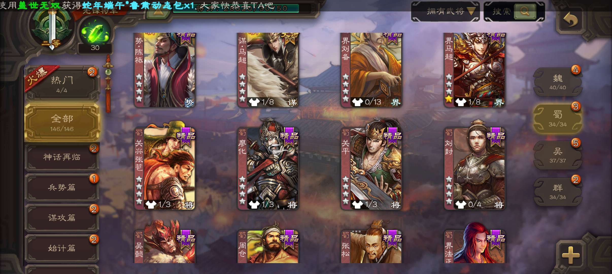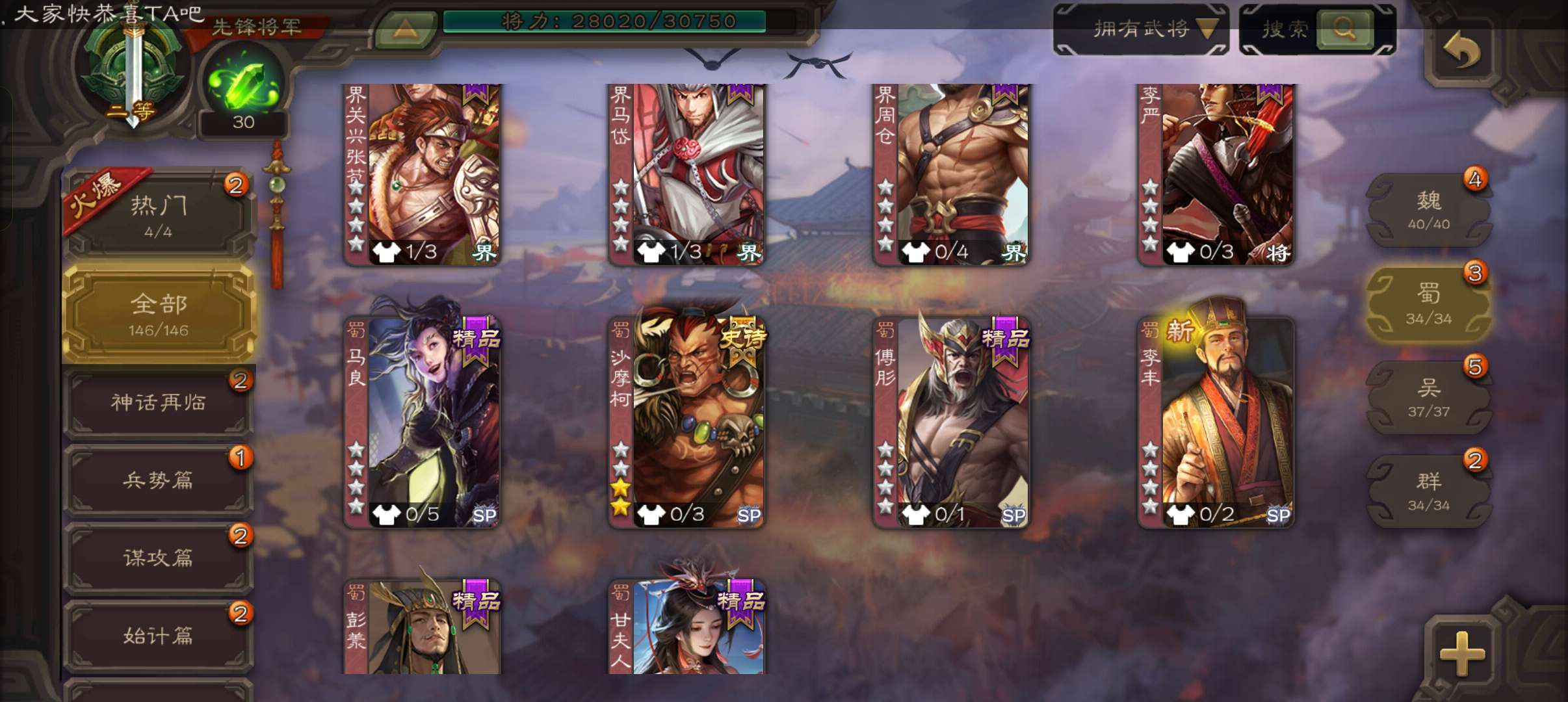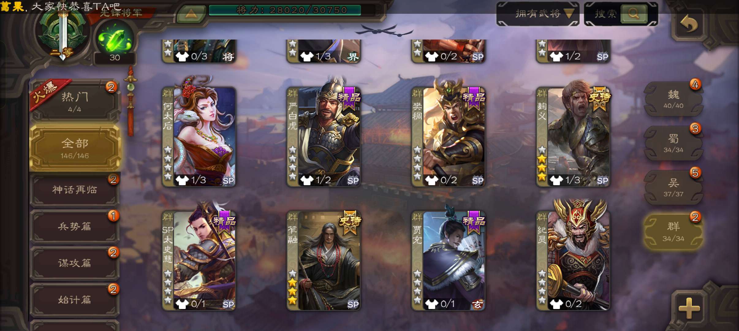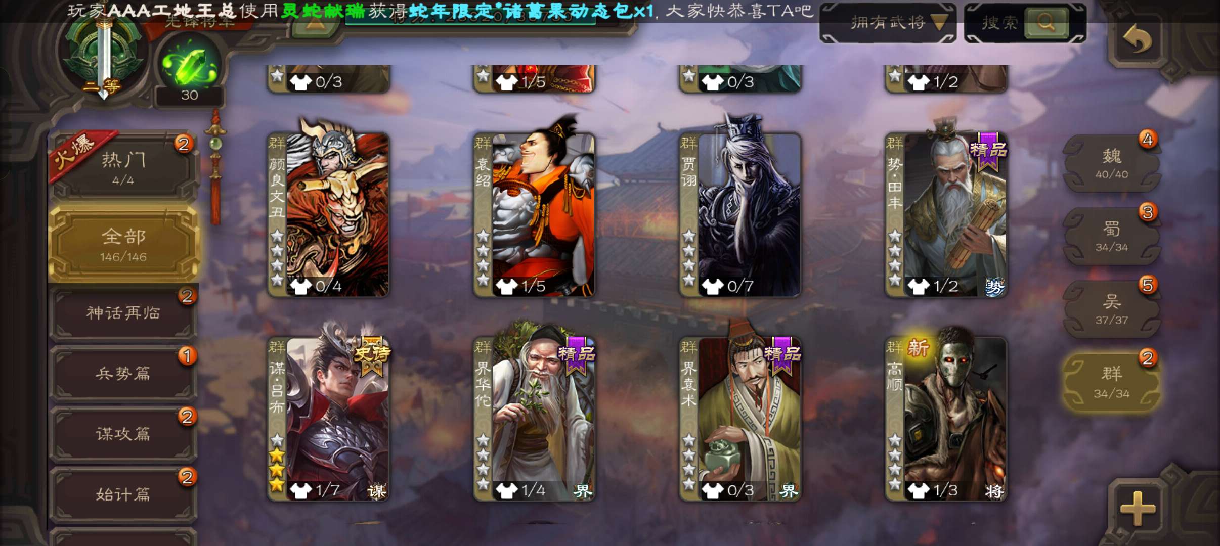 史诗武将数量: