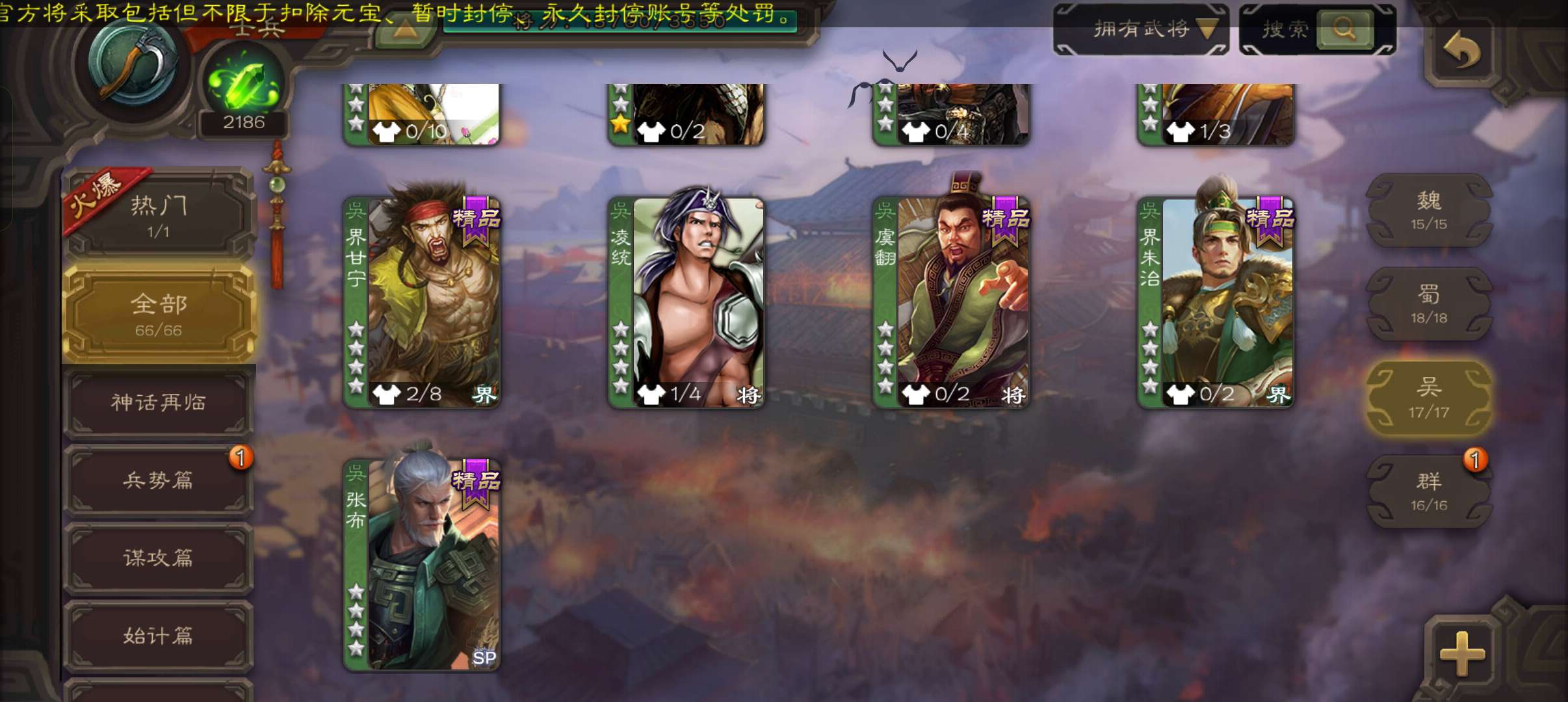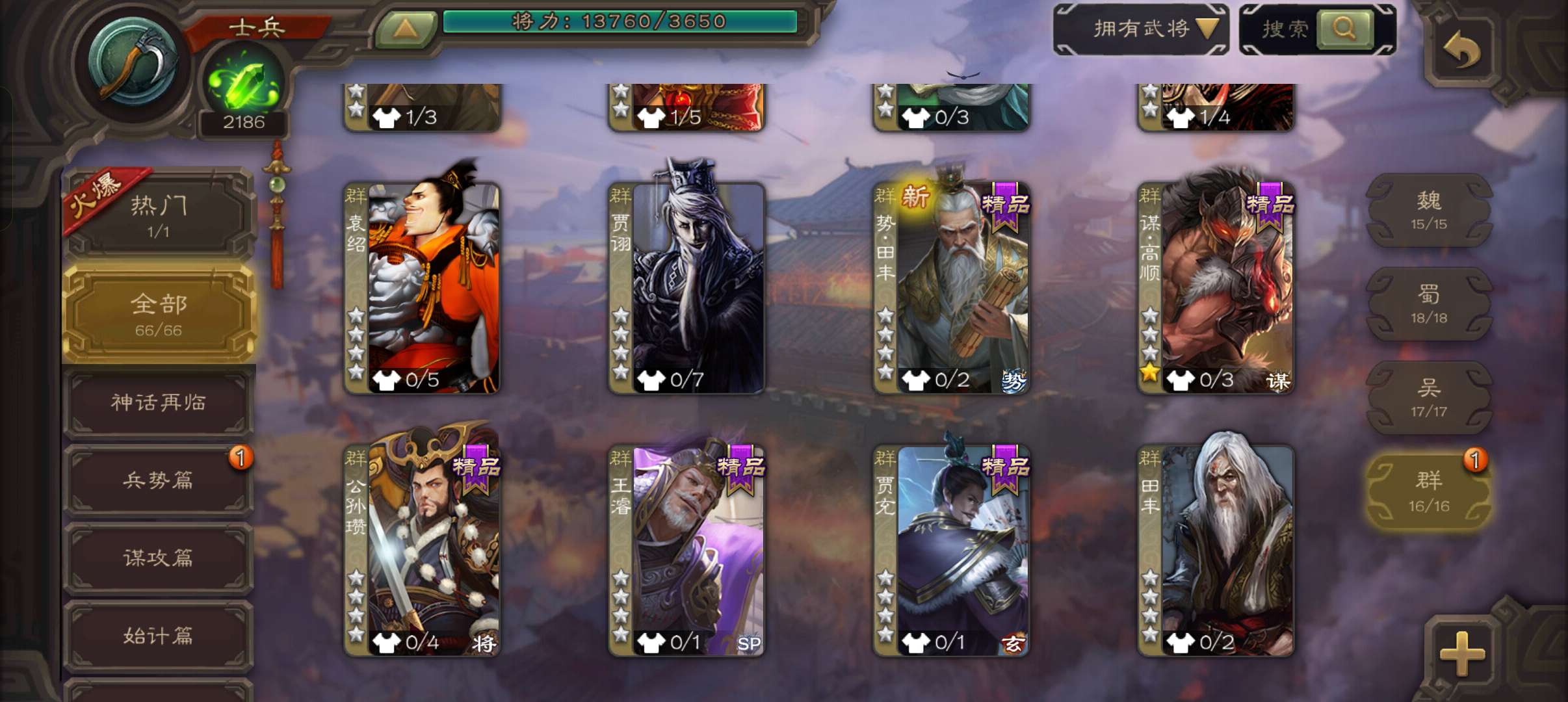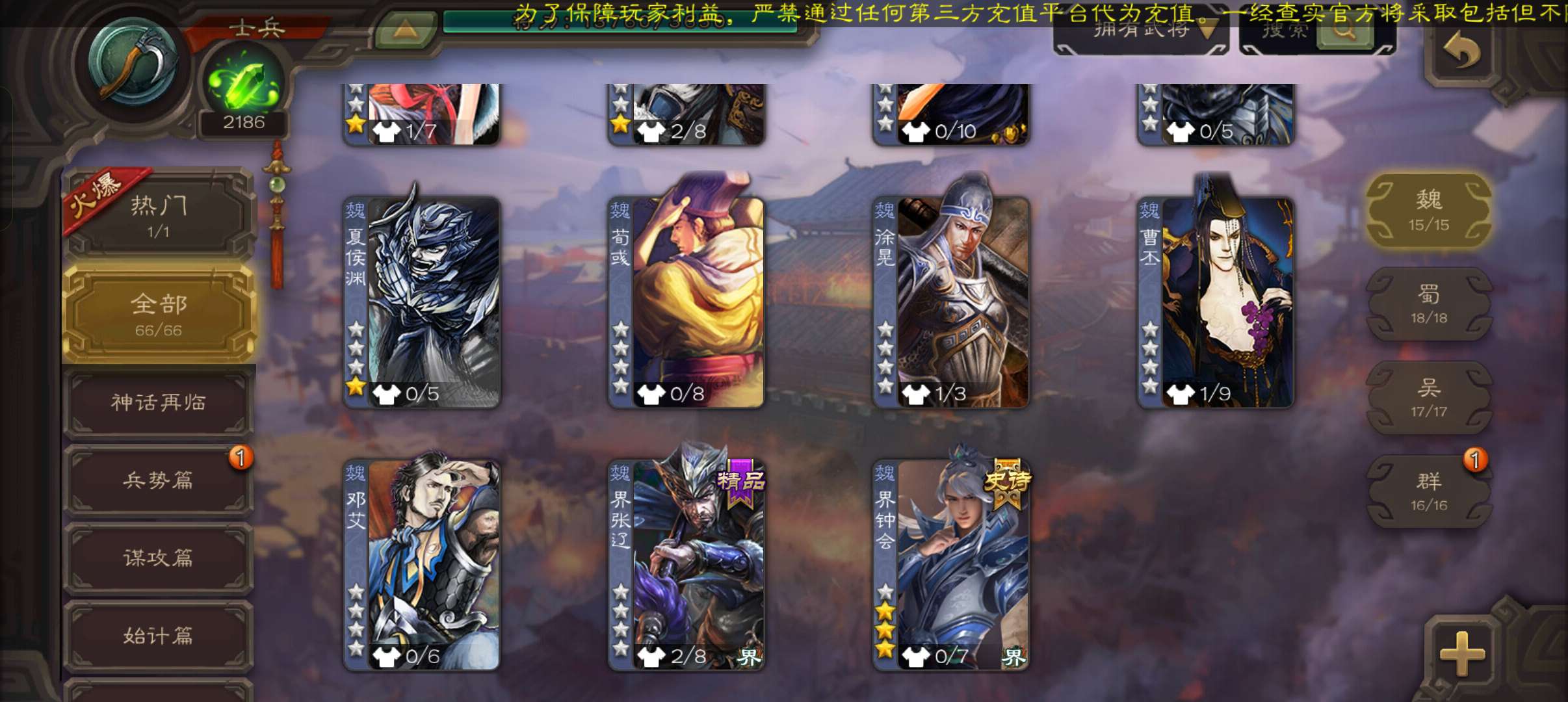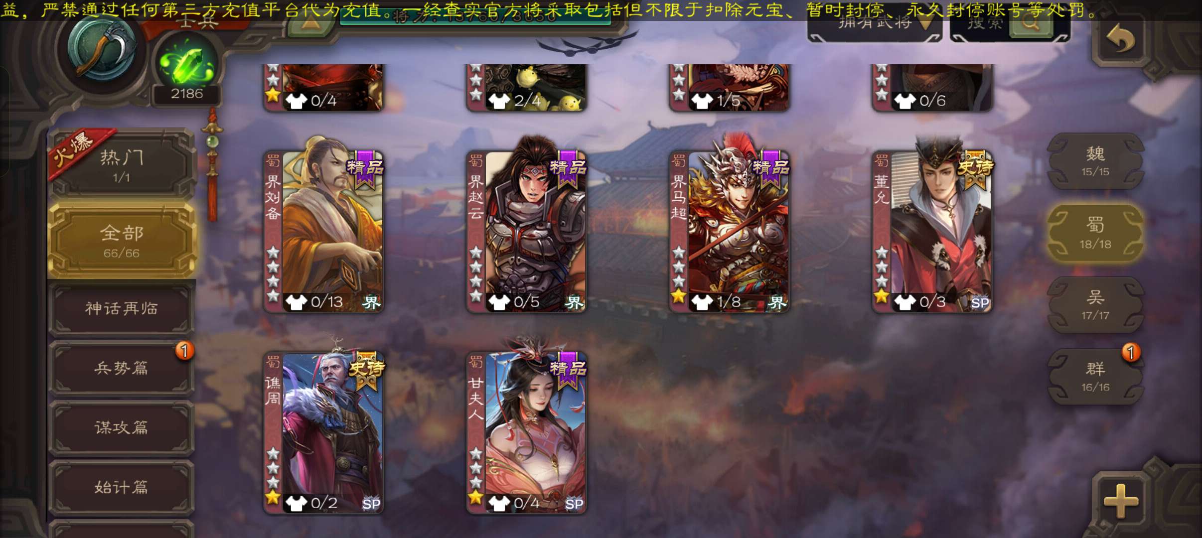 66将士兵,2180魂5.4万羽毛,界钟会谯周董允3史诗,甘夫人谋高顺势田丰张布,84招募令