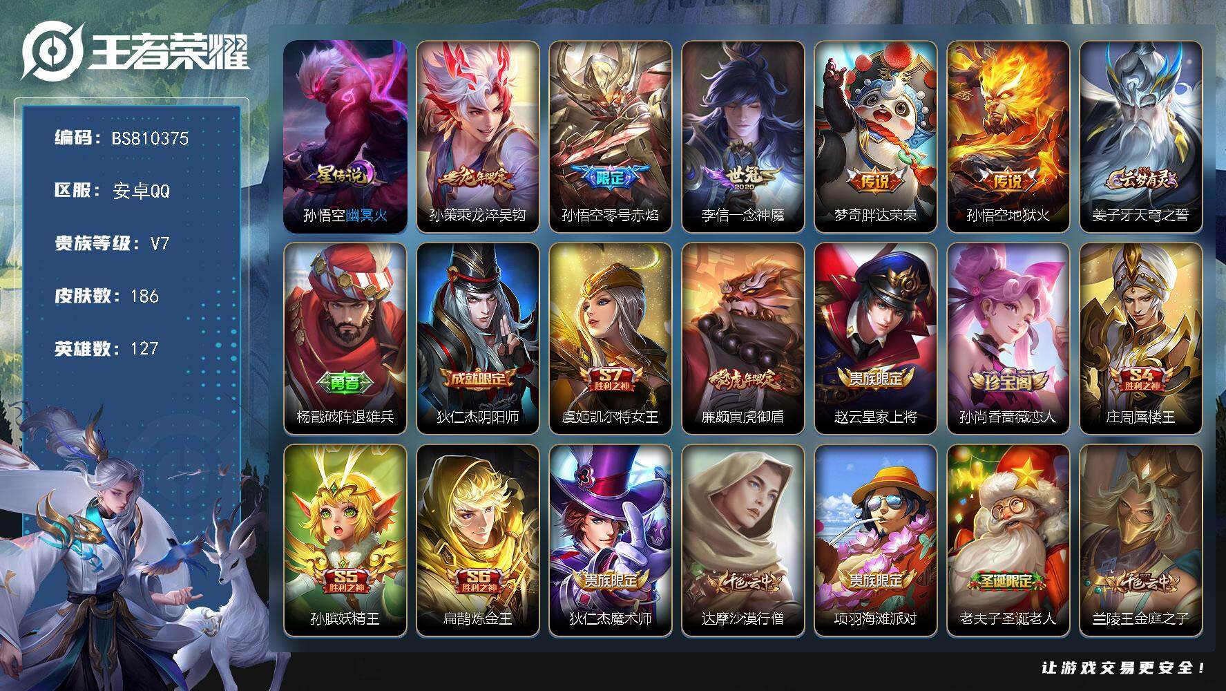 186皮肤 1星传说 5传说 49限定 4印记 1天幕【英雄全皮】:影全皮