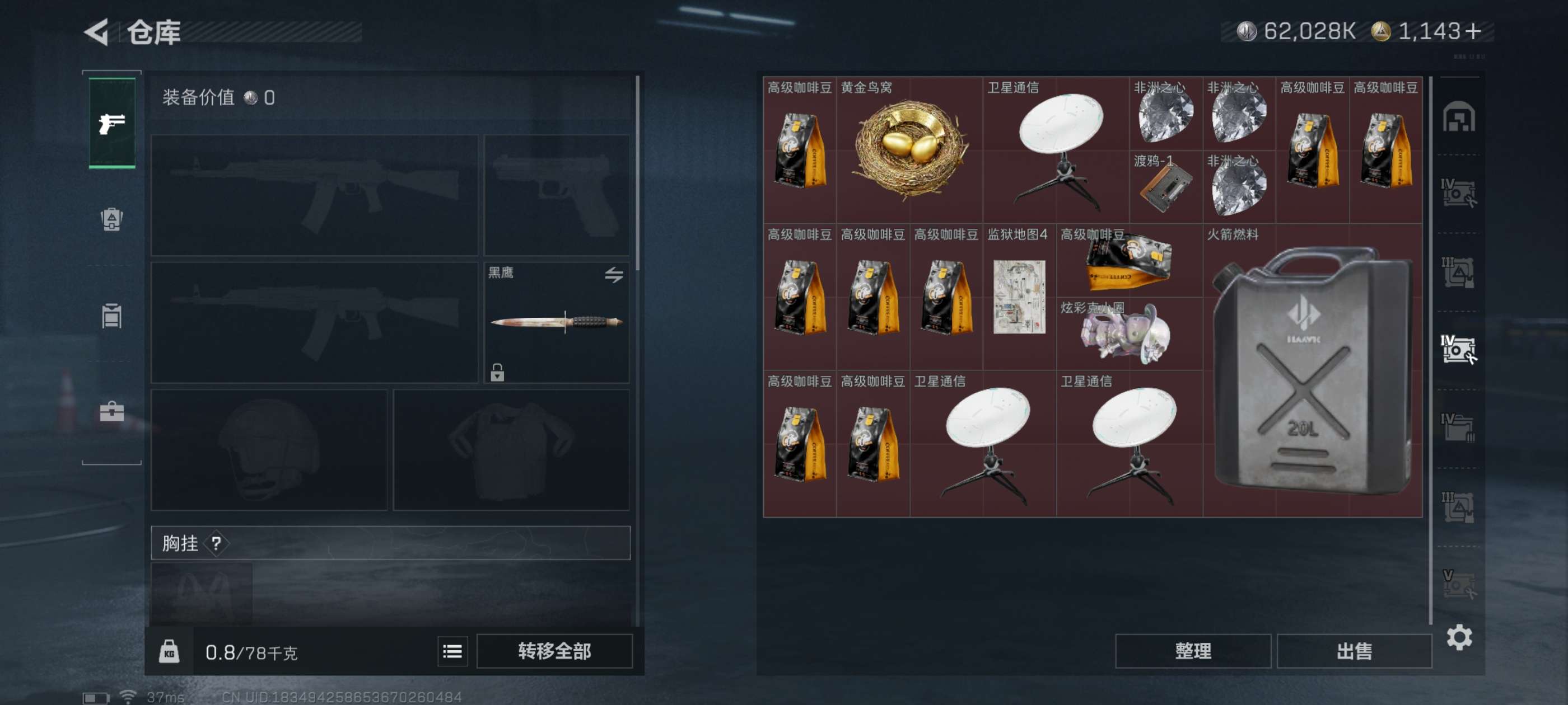10几个六套,88发awm子弹,1000多三角券,大量纯币,3颗非洲之星,炫彩克小圈,黄金鸟窝等等