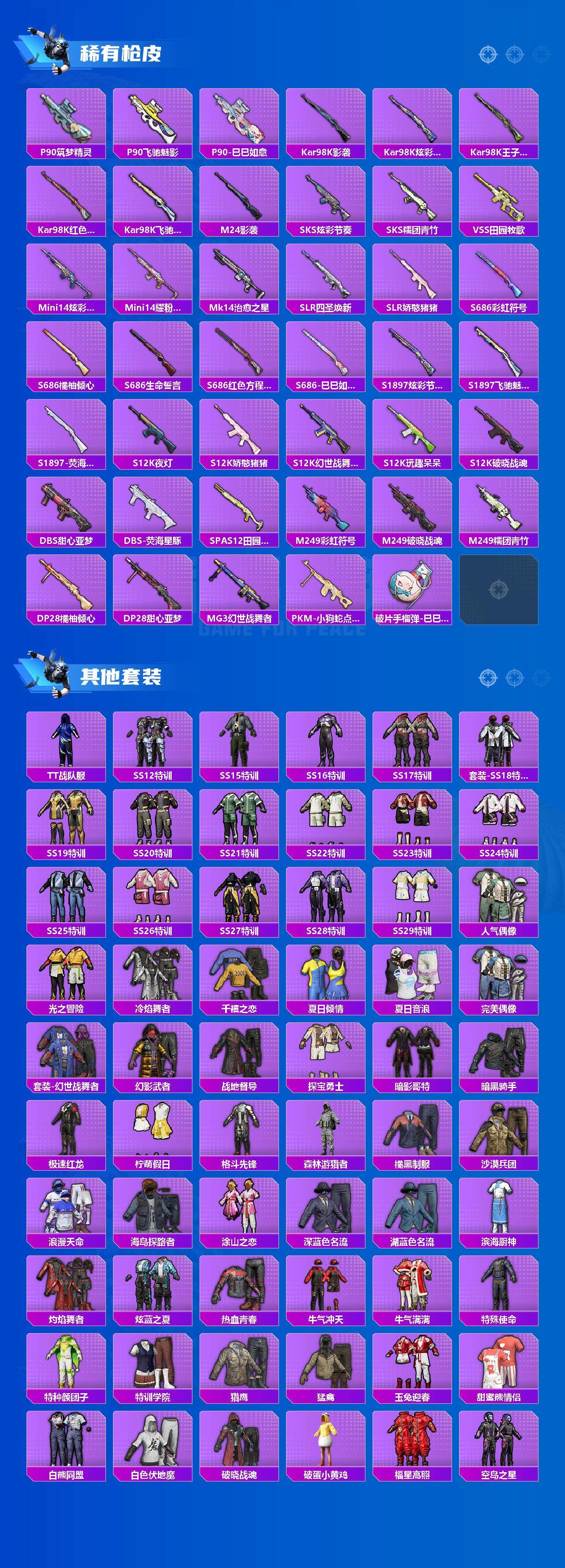 【粉色枪皮等级】:M416-电玩时刻(五级),GROZA-镜光银凌(五级),AUG-暖羊咩咩(五级),M762-青锋波束(五级),UMP45-量子极限(五