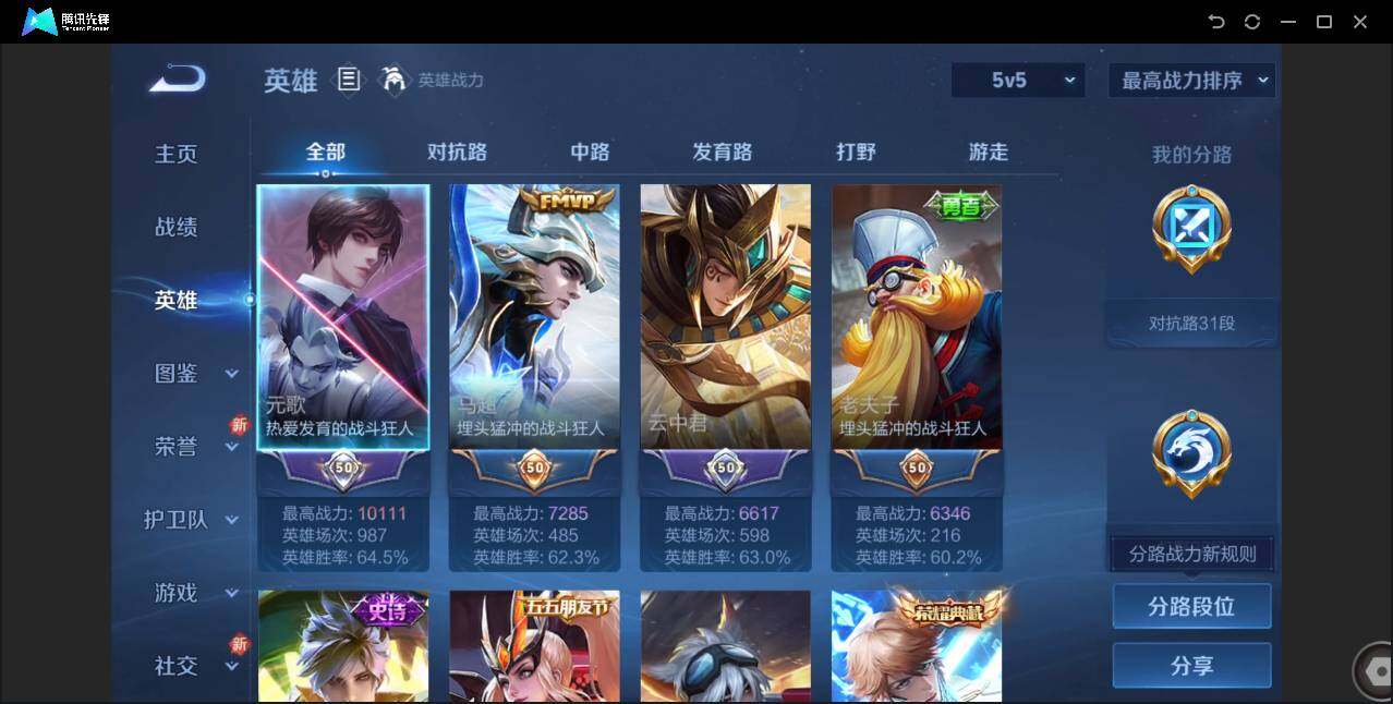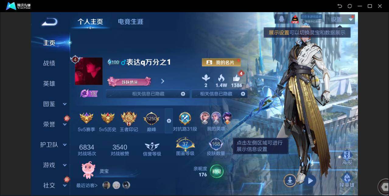 【W4266】安卓Q区-可二次-贵4-125英雄-168皮肤-1典藏-4传说-34史诗-43限定-2按键-鸣剑·曳影/无双飞将/久胜战神/神树通天/江河有灵/魅语/顽趣/赏金猎手/电玩·爆裂旋风/鸣野蒿-贵族积分3845-