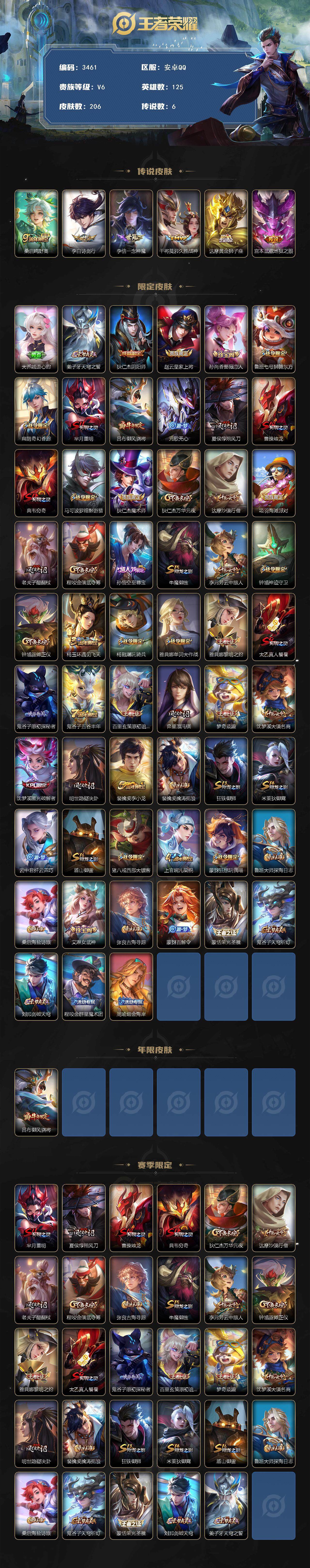 /安卓Q-V0-最强王者段位-125英雄-206皮肤-6传说-46史诗