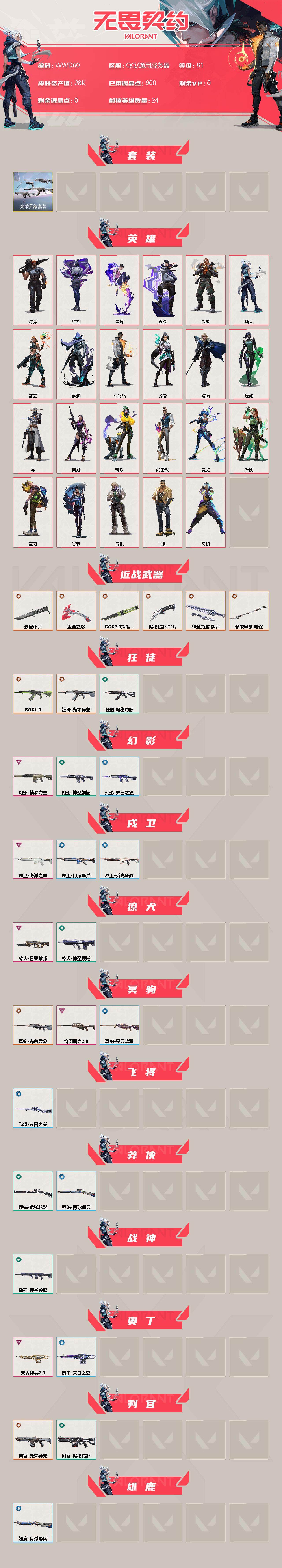 【WWD60】终极*13/卓越*6/皮肤*56/等级*81/段位:黄金/光荣异象套装/幻棱/炼狱/维斯/暮蝶/钛狐/壹决/铁臂/捷风/雷兹/幽影/不死鸟/贤者/猎枭/蝰蛇/零/芮娜/奇乐/尚勃勒/霓虹/斯凯/盖可/黑梦/钢锁/近战武器-光荣异象 歧途/近战武器-RGX 11z Pro//2.0 蝴蝶刀/近战武器-剥皮小刀/近战武器-盖亚之怒/近战武器-诡秘蛇影 军刀/近战武器-神圣领域 战刀/狂徒-RGX 11z Pro/狂徒-光荣异象/狂徒-诡秘蛇影/幻影-侦察力量/幻影-神圣领域/幻影-末日