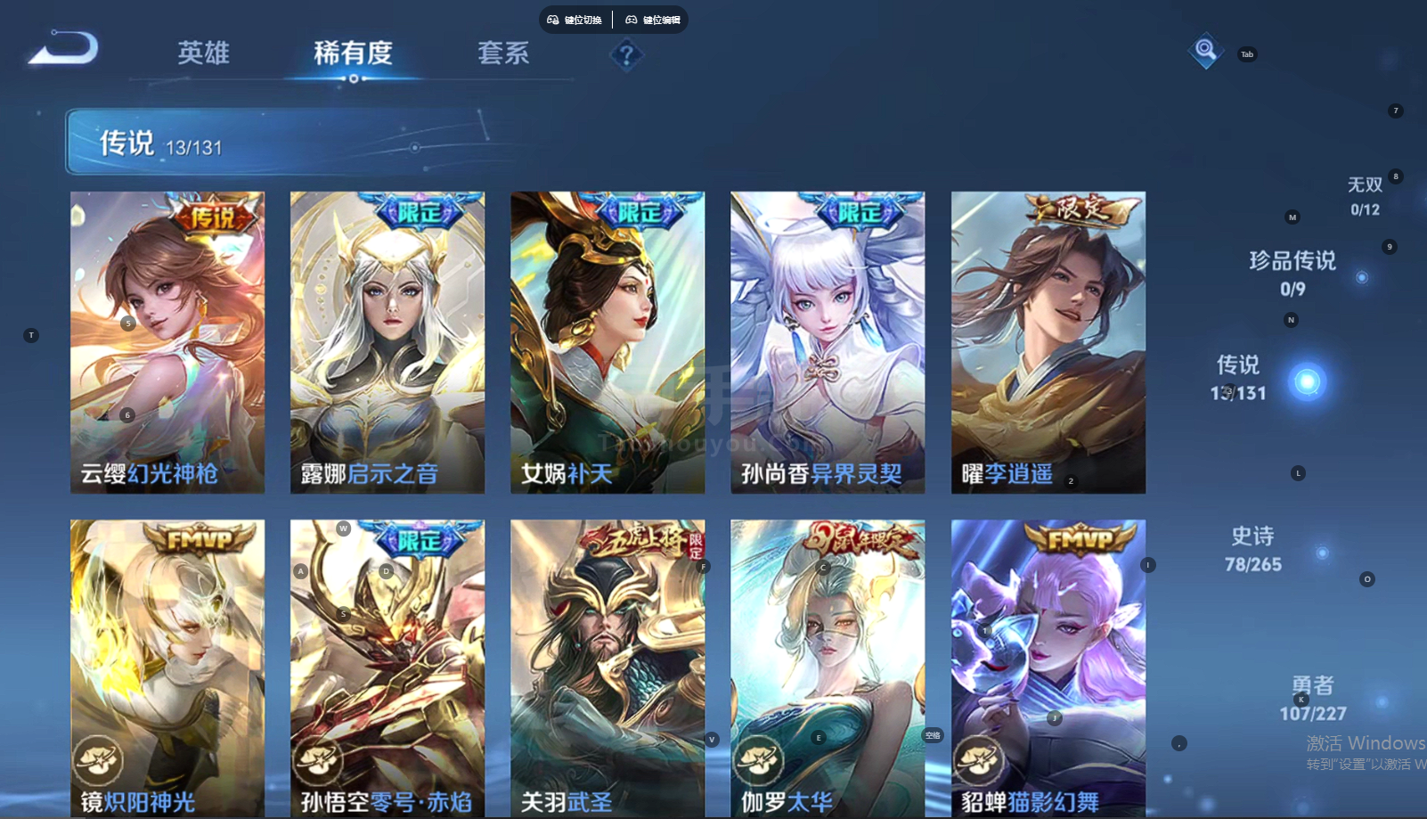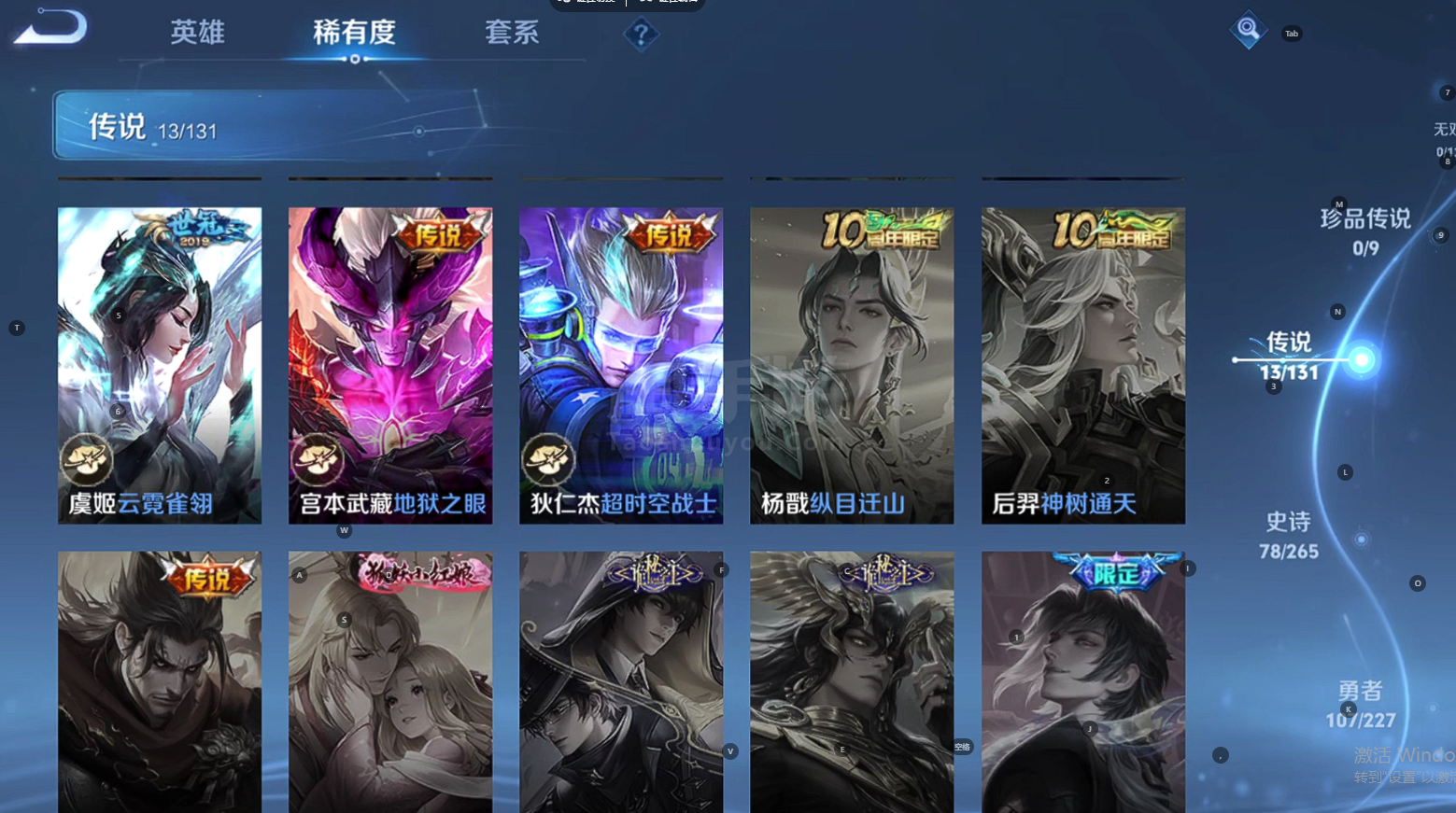 安卓q-可二次-v7-248皮-13传说炽阳神光李逍遥补天云霓雀翎精品限定小号低价出