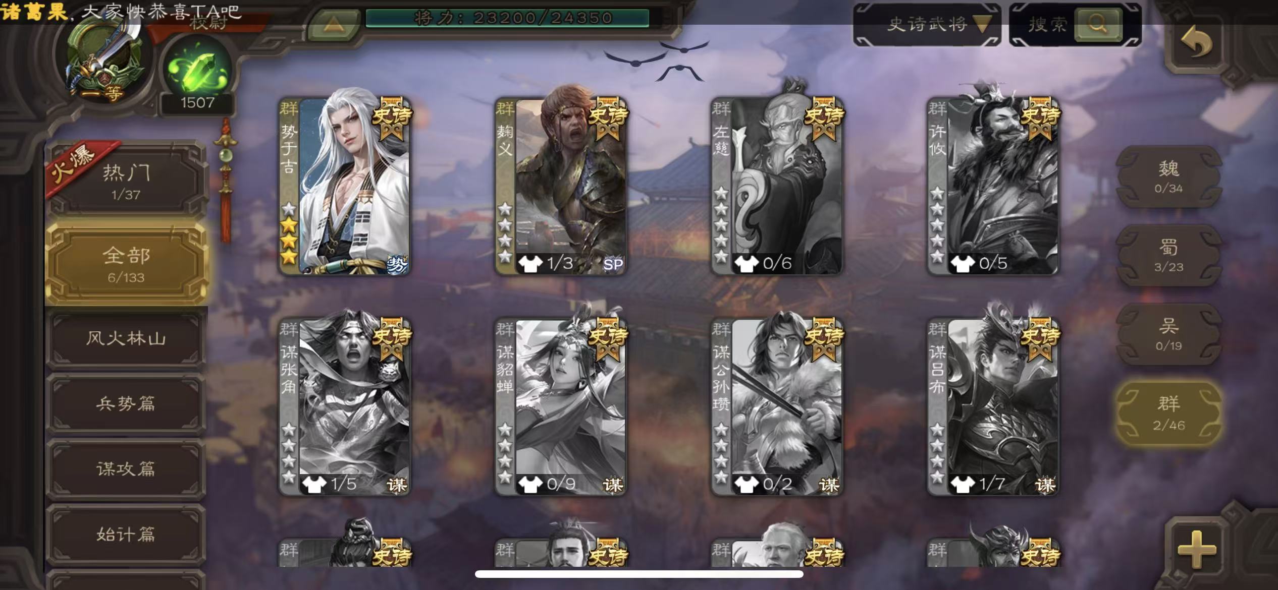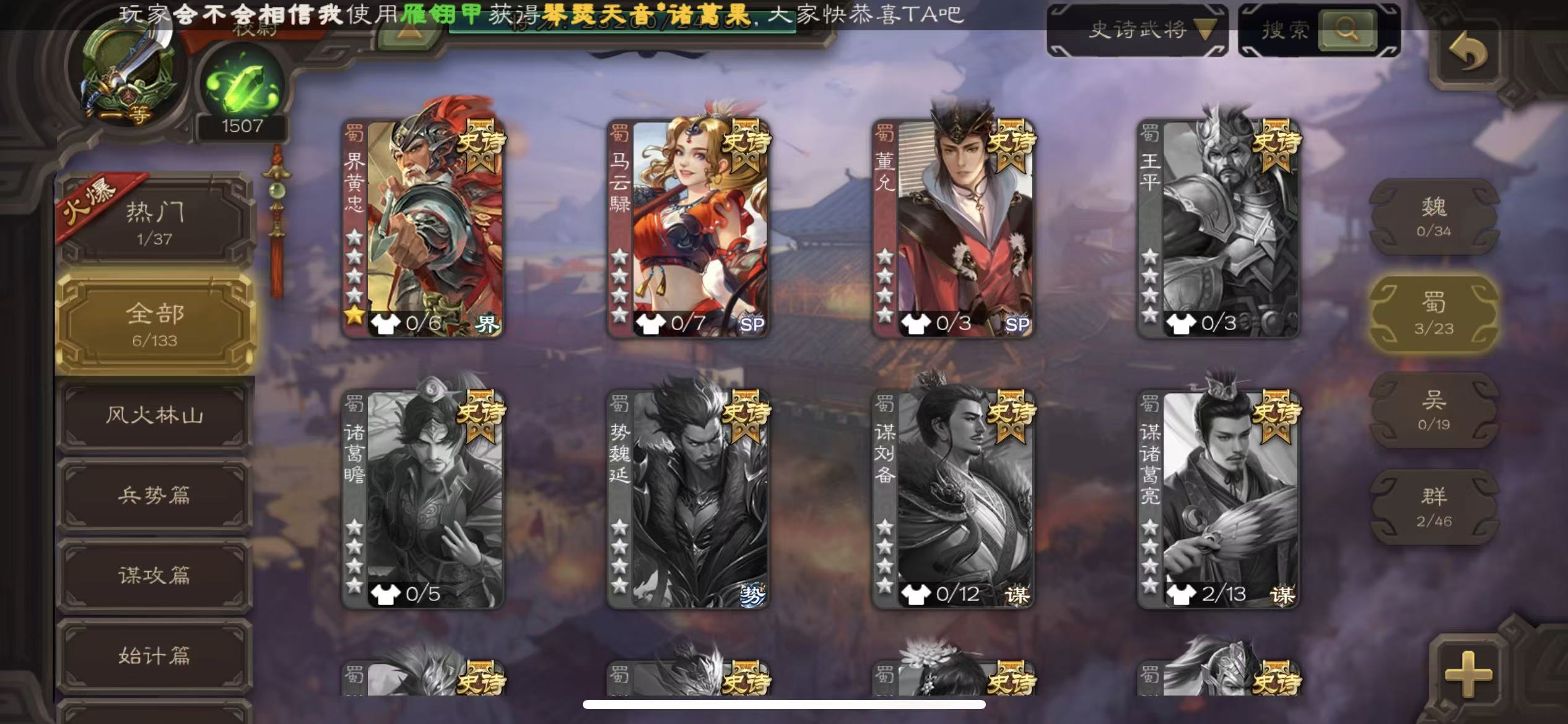 史诗武将数量:
