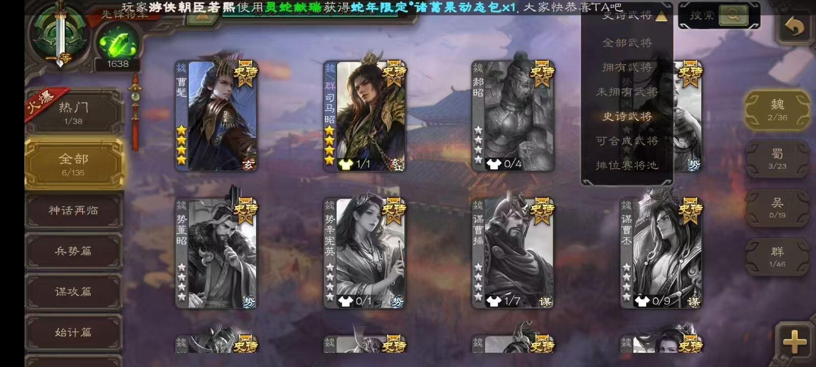 史诗武将数量: