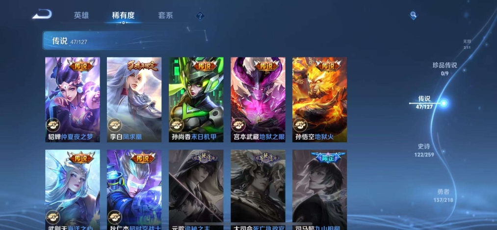 581-可二次【V10 397皮肤10水晶2无双2小兵1星元48传说可秒换绑】苹果QQ-126英雄-397皮肤【10水晶】 拾光映像 最初的交响 幻阙歌 银白咏叹调 全息碎影 天鹅之梦 星空梦想 大秦宣太后 无限飓风号【无双皮肤】真我赫兹 神器·明辉仪【星元皮肤】金色仲夏夜【传说皮肤】凤求凰 遇见神鼓 觅芳踪 神器·明辉仪 妄想奇谈 鹤羽星尊 妄想实况 灼幽烈阳 记忆之芯 电玩·雷克斯 追逃游