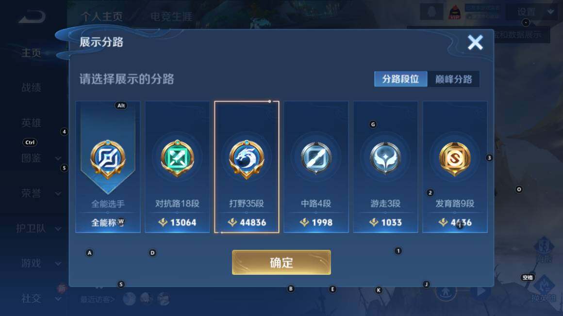 营地账号:1757989633/1星传说,打野35段,对抗18段,6按键,星币3711,安卓Q-V5-125英雄-171皮肤-5传说-42史诗