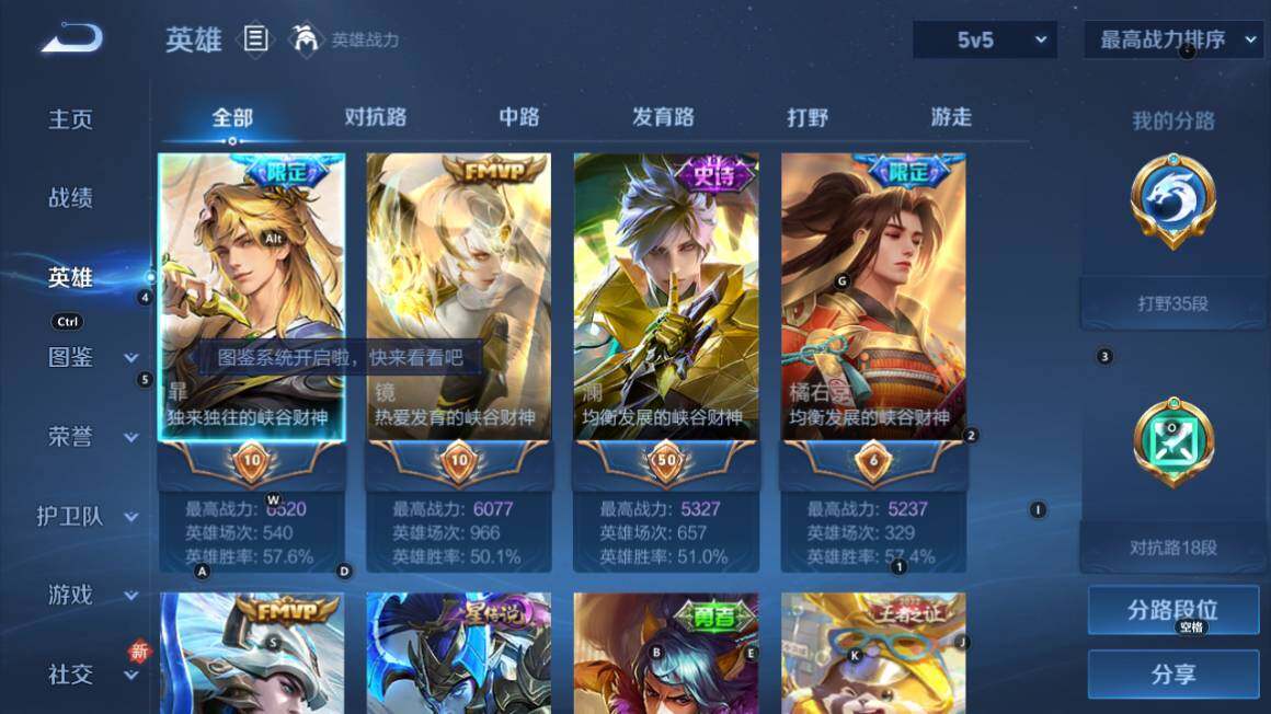 1星传说,打野35段,对抗18段,6按键,星币3711,安卓Q-V5-125英