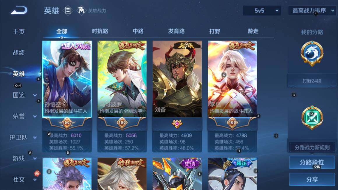 2星传说,有至尊宝,打野24段,对抗18段,发育17段,14按键,差316元升