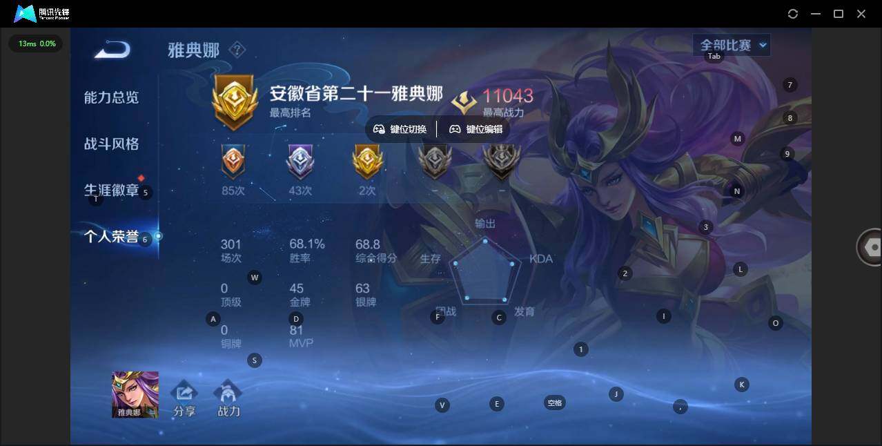 【金标雅典娜】实名: 可修改 贵族等级: V10 英雄数: 128 皮肤数: