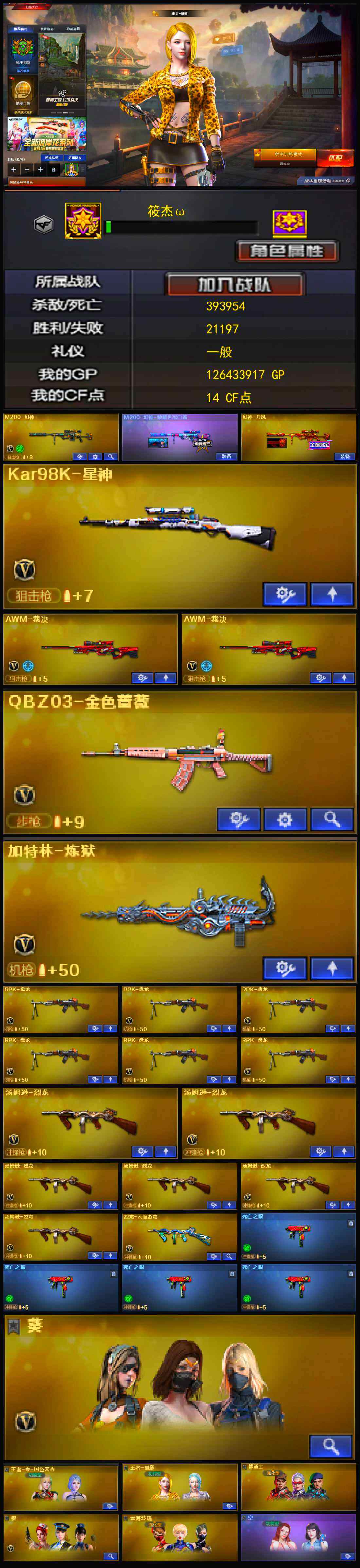 【CF3277】山西一区-109V-9王者-7炫金【幻神2皮】【6烈龙】【死亡之眼】【6盘龙】【M200-幻神】【M200-幻神-荣耀世冠白鲨】【幻神-丹凤】【Kar98K-星神】【AWM-裁决】【QBZ03-金色蔷薇】【加特林-炼狱】【RPK-盘龙】【汤姆逊-烈龙】【烈龙-云海游龙】【死亡之眼】【葵】【王者-零-国色天香】【王者-魅影】【修道士】【樱】【云海玲珑】【空】【M4A1-雷神】【雷神-荣耀之魄】【雷神-宠儿-2019MVP】【雷神-冠军之魄】【雷神-烈虎皮肤】【雷神-能量核心】【雷神