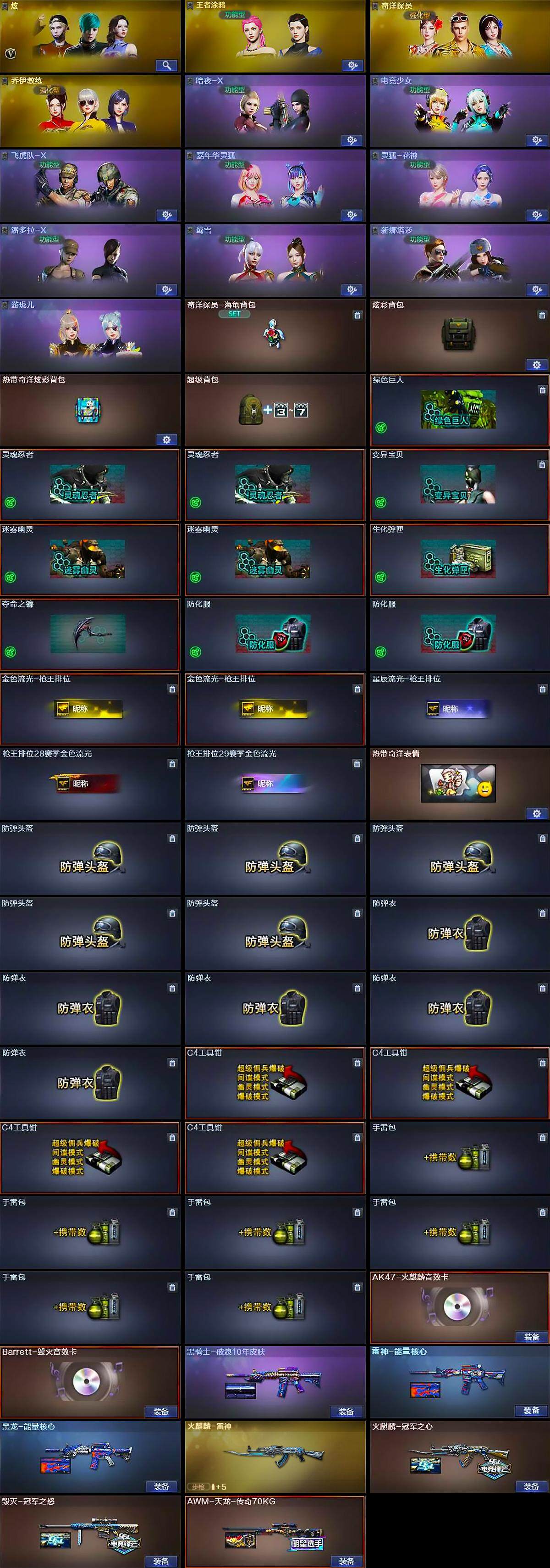 【皮肤】:雷神-能量核心,火麒麟-雷神,火麒麟-冠军之心,毁灭-冠军之怒,黑龙-能量核心,黑骑士-破浪10年皮肤,AWM-天龙-传奇70KG