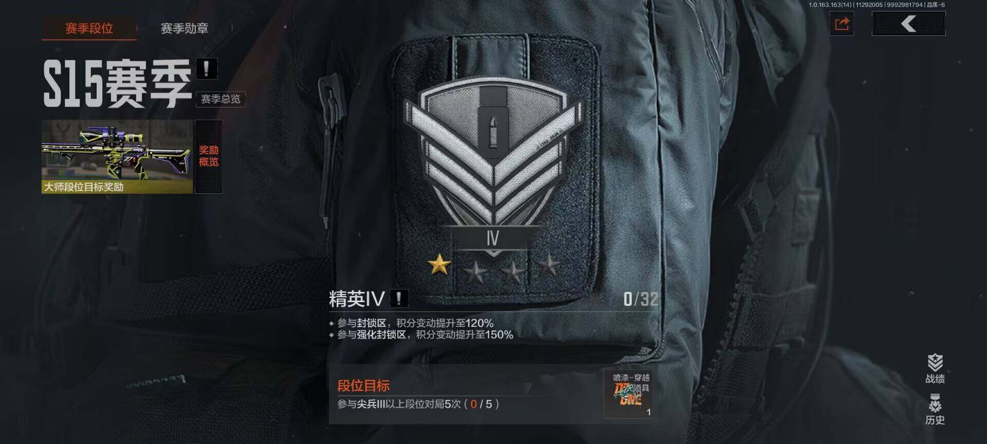 等级:30/段位:精英/仓库价值(百万):9/柯恩币:2867/工兵铲/收割者