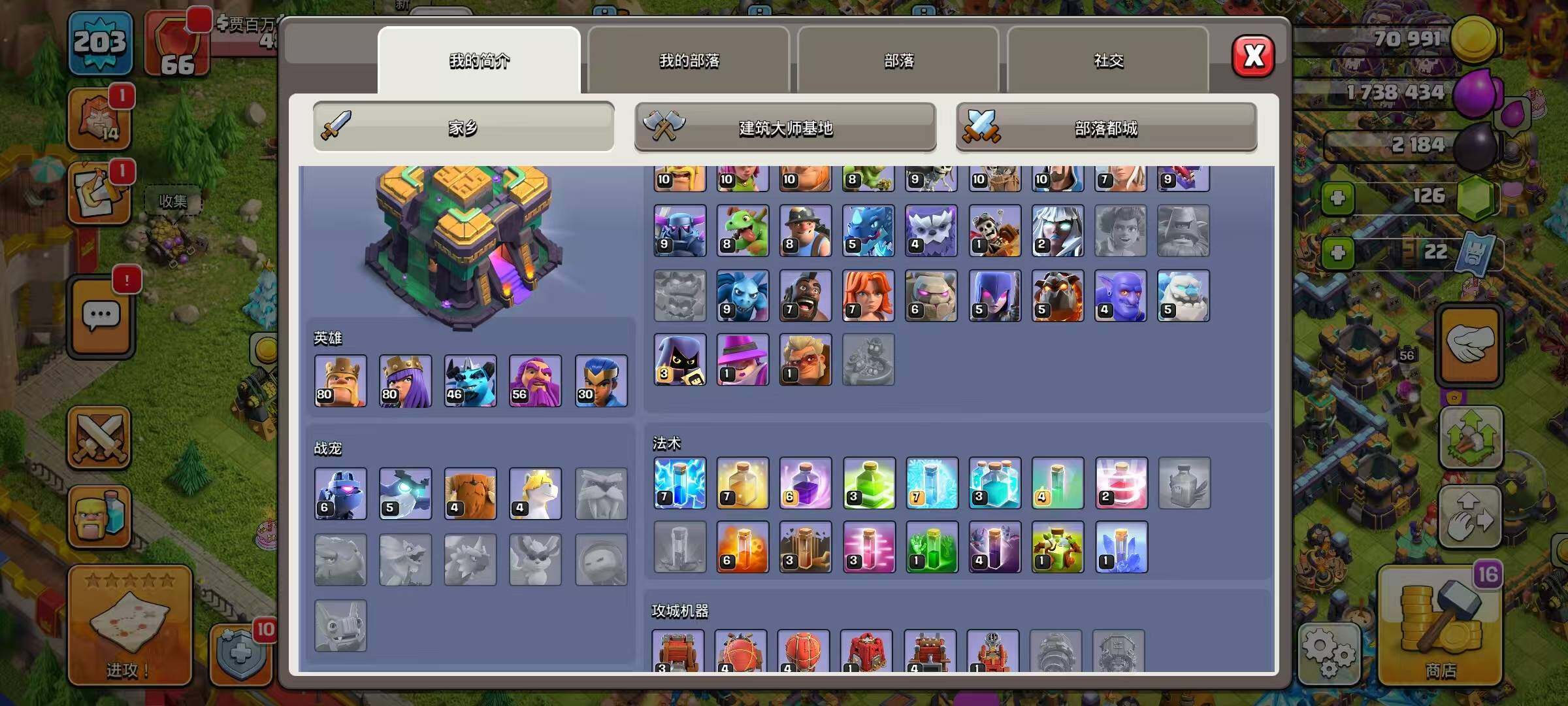 【COCX720】6农/英雄等级80-80-56-30/海上基地/冰天雪地/部落工坊/皇家竞技场/像素世界