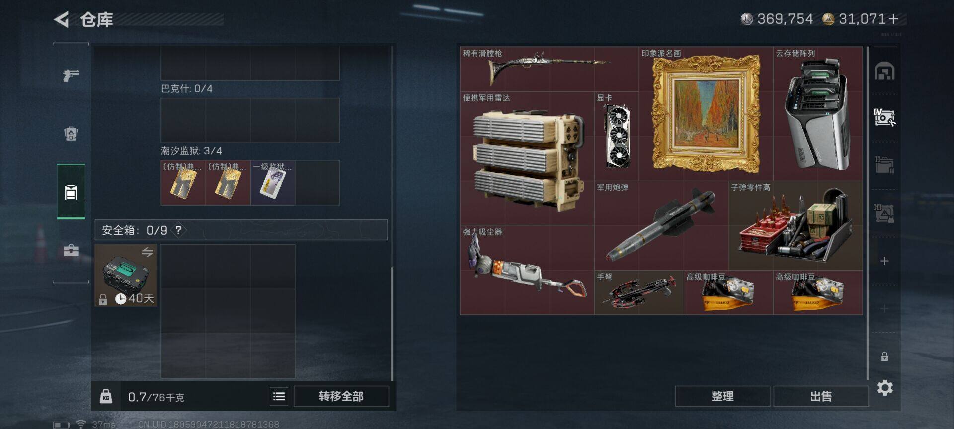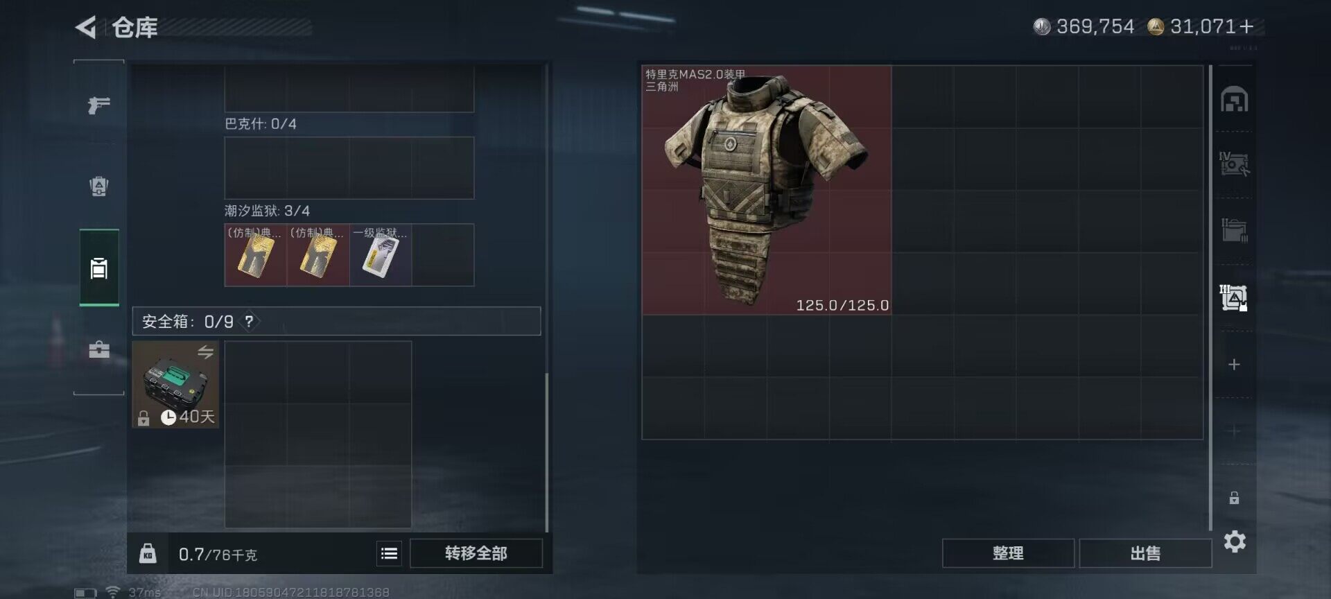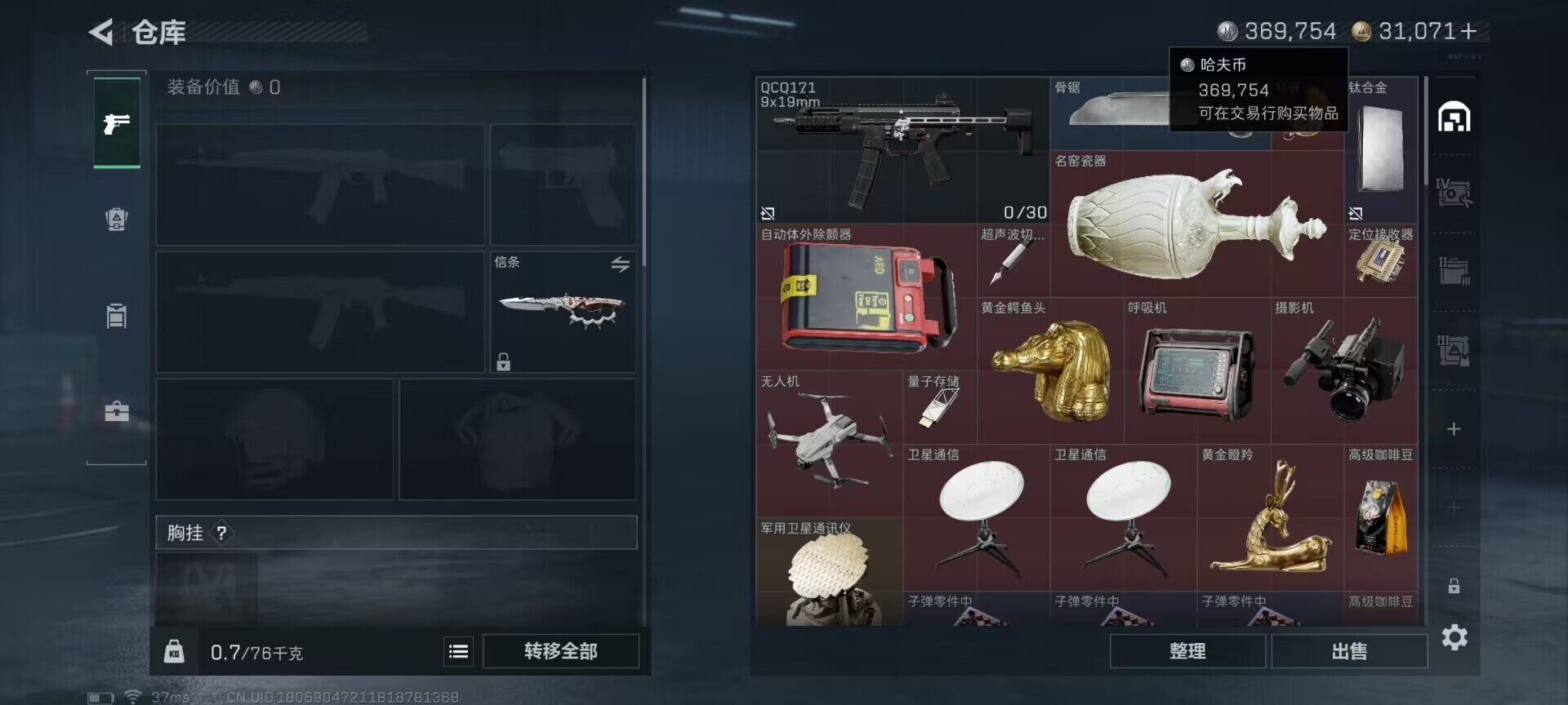 总资产(M):53M/哈夫币(K):369K/全面战场等级:22_段位:军士长/烽火地带等级:60_段位:黑鹰/