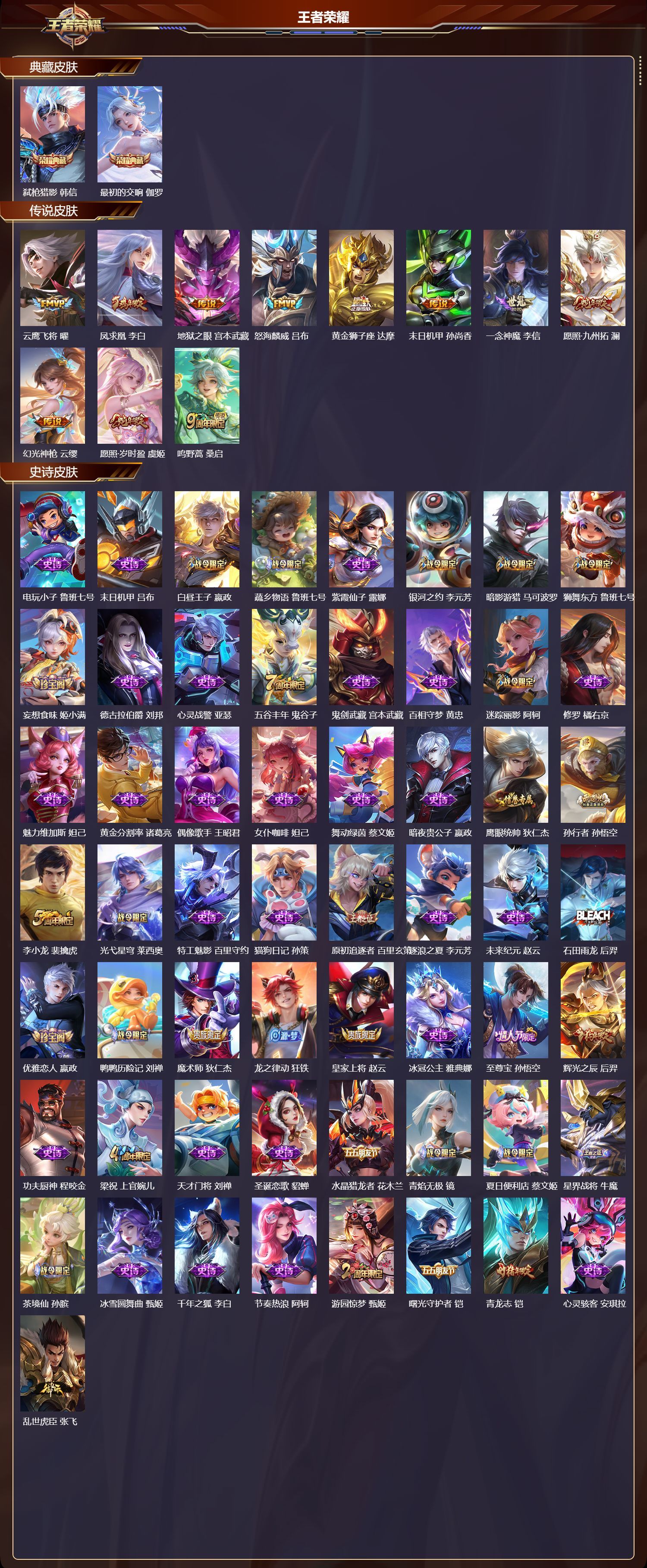 安卓QQ/非凡王者/267皮肤/127英雄/2典藏/0珍品无双/0无双/0珍品传说/11传说/64史