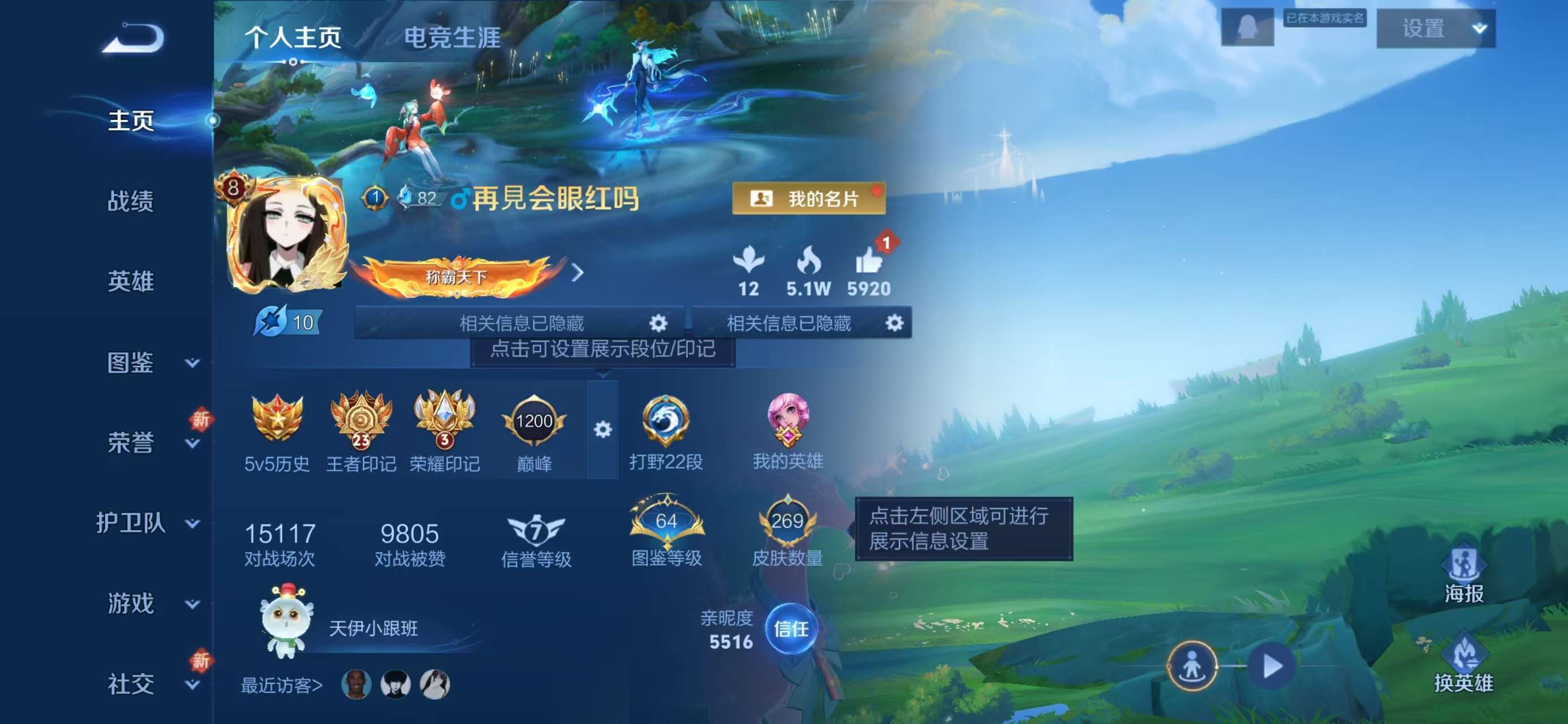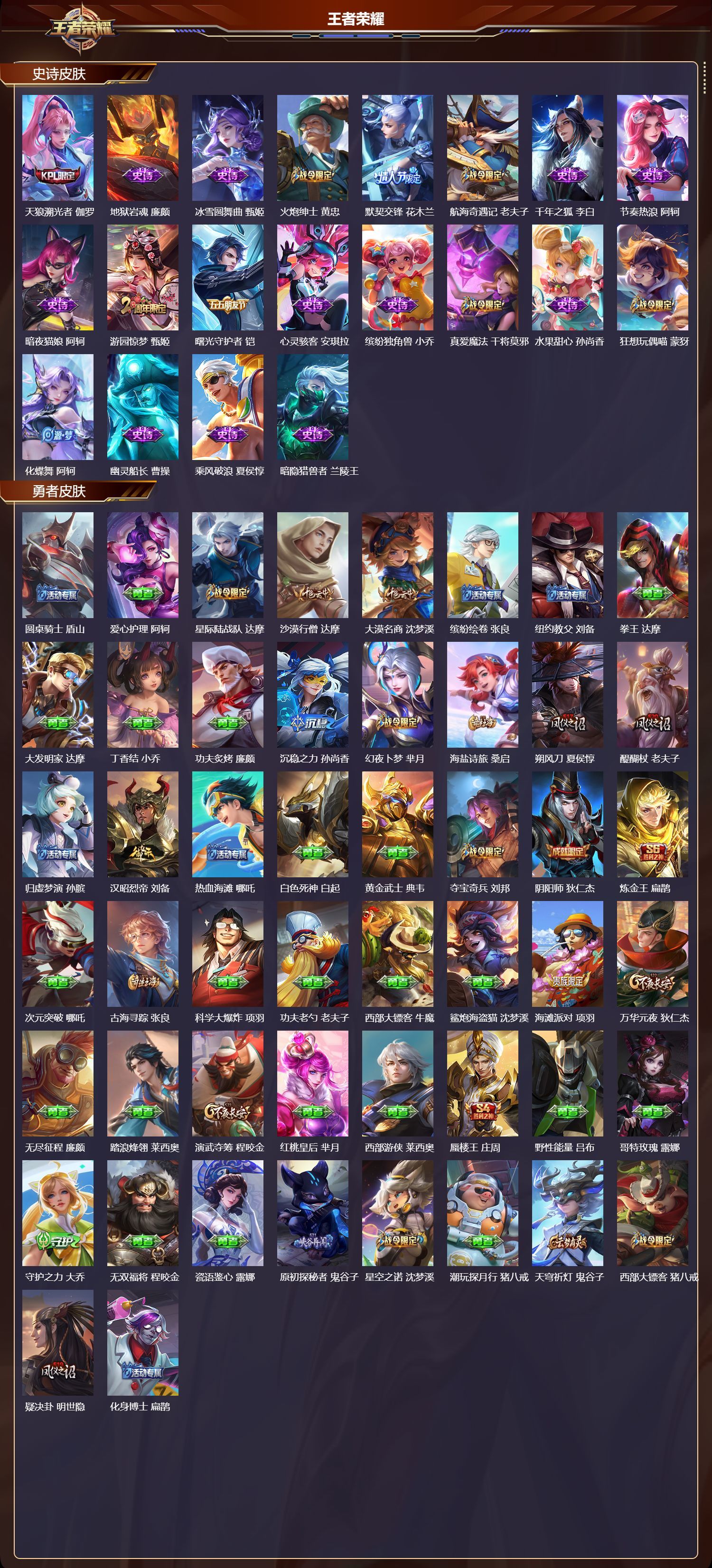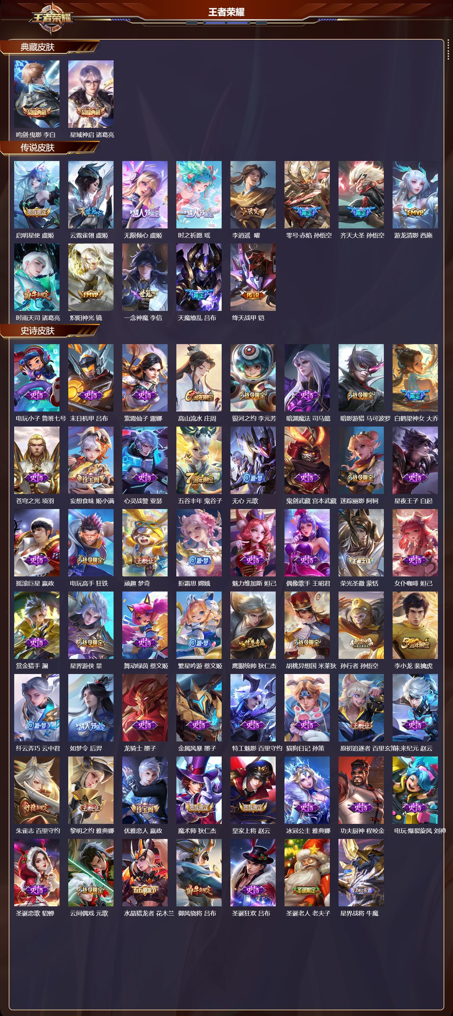 安卓QQ/非凡王者/269皮肤/126英雄/2典藏/0珍品无双/0无双/0珍品传说/13传说/75史