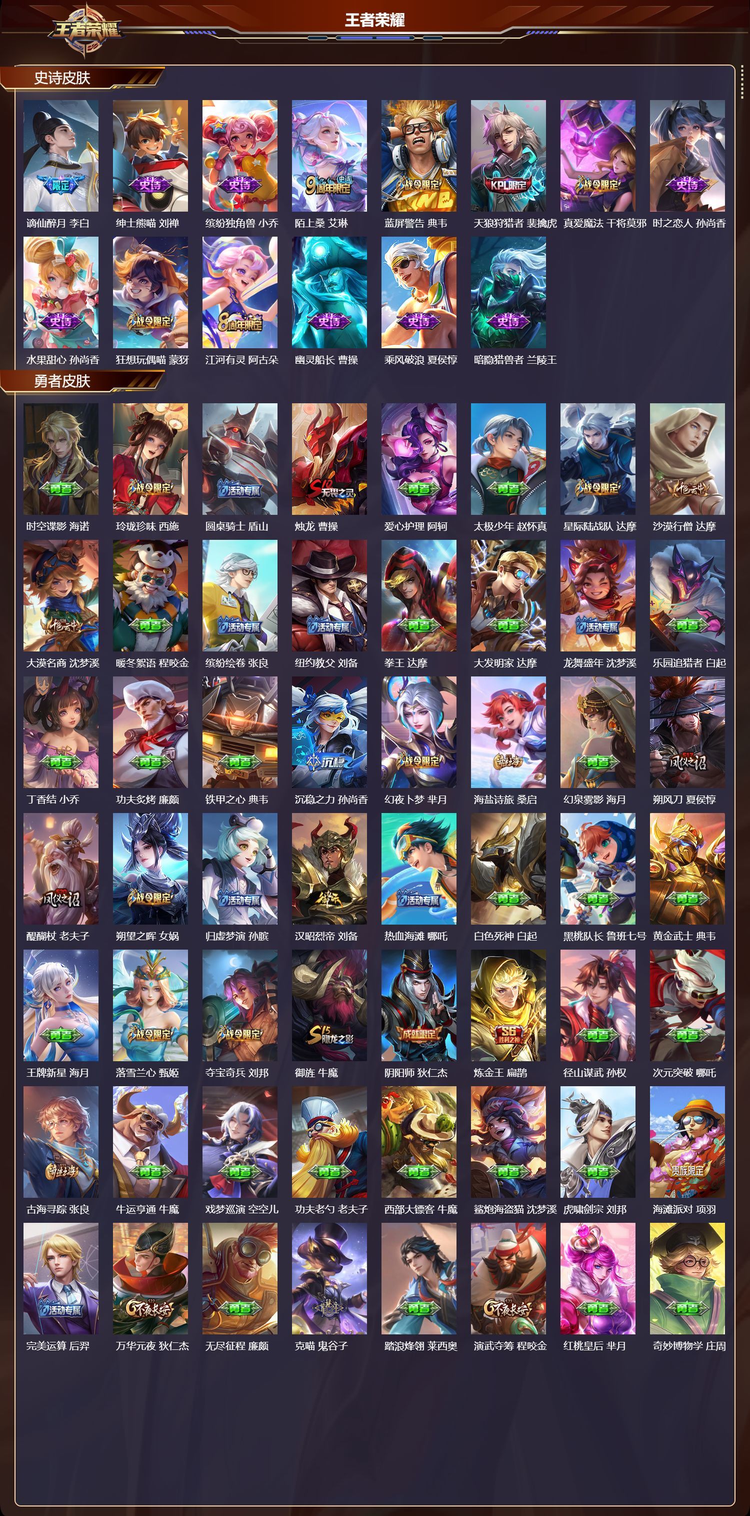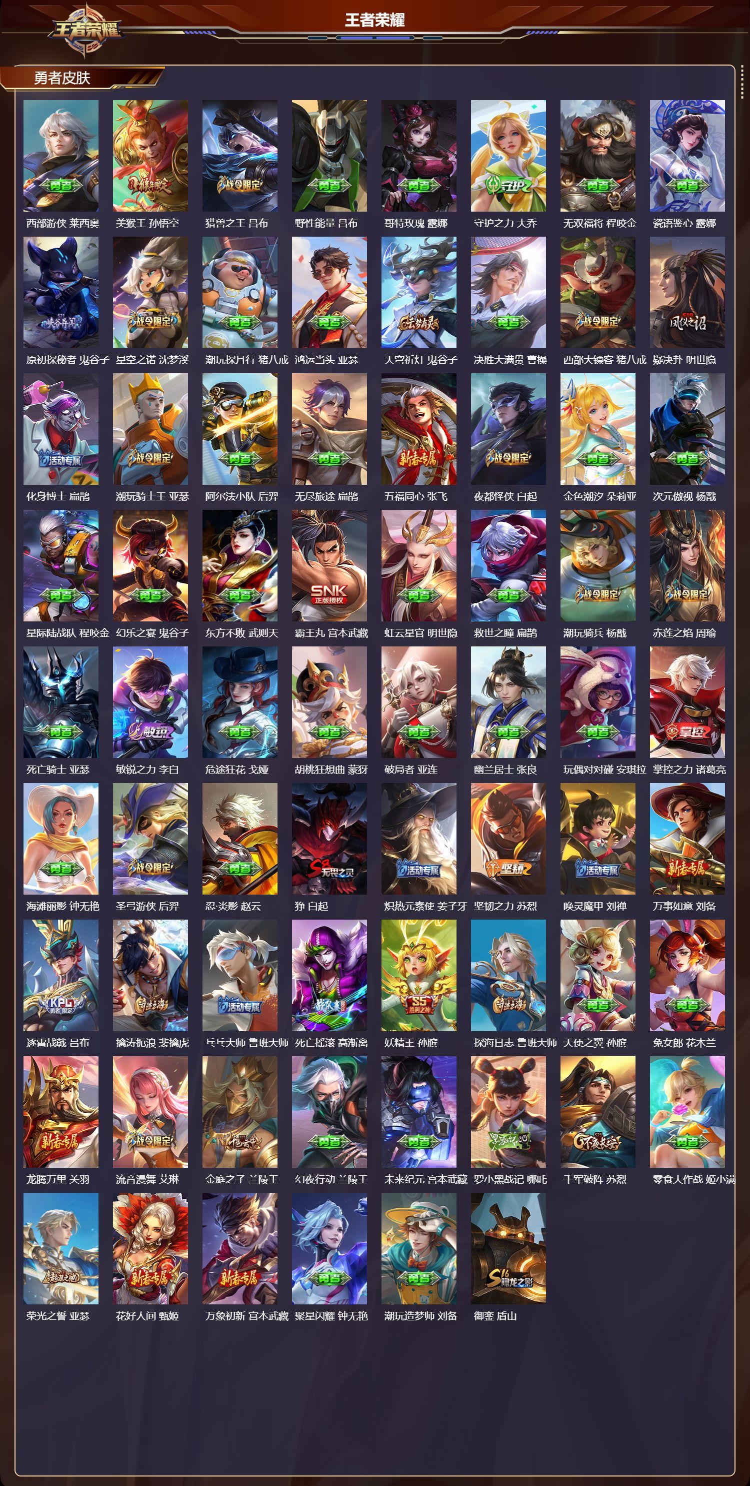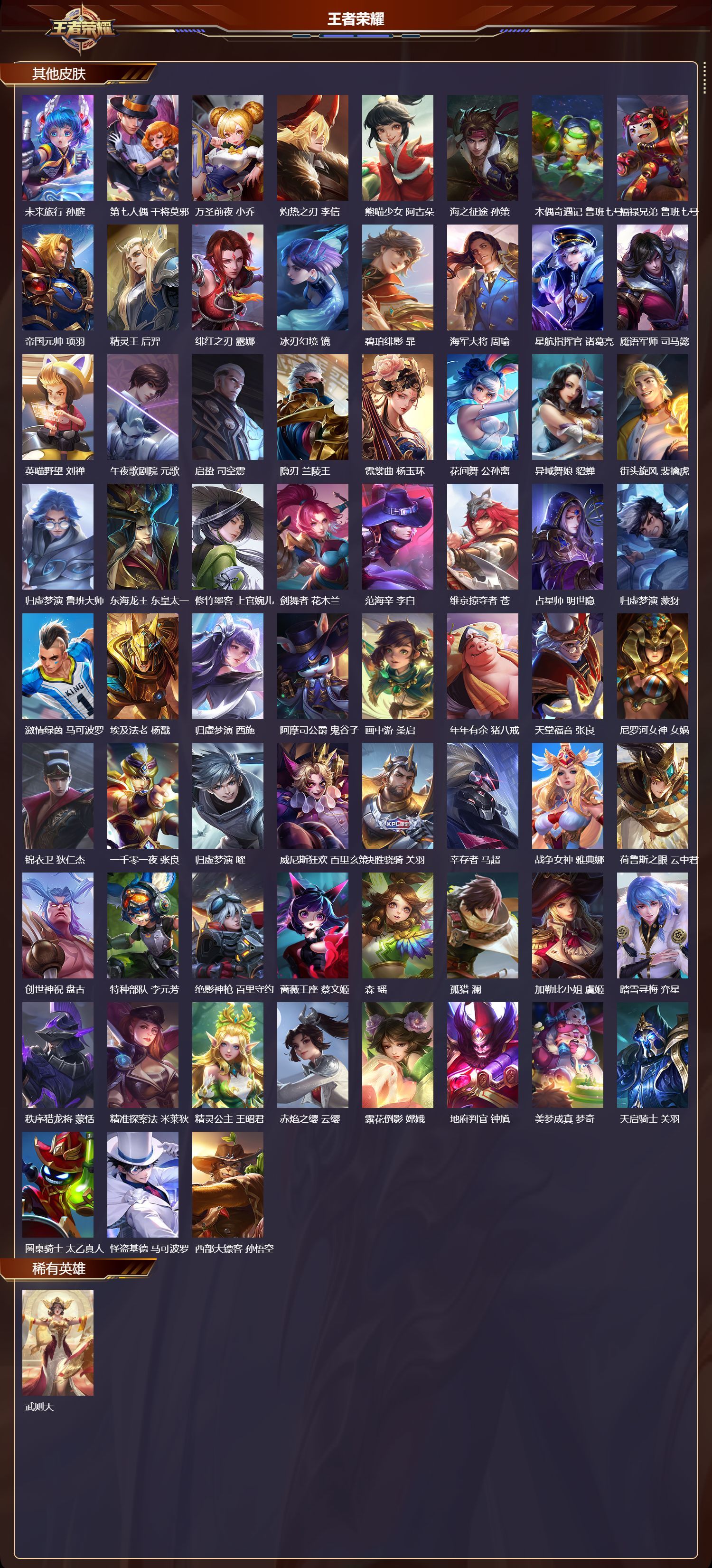安卓QQ/无双王者/486皮肤/128英雄/10典藏/0珍品无双/2无双/1珍品传说/44传说/16
