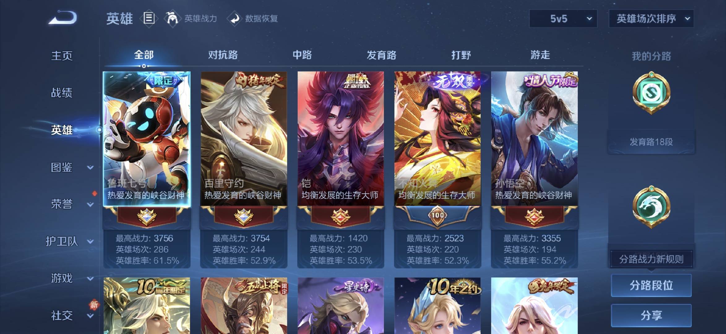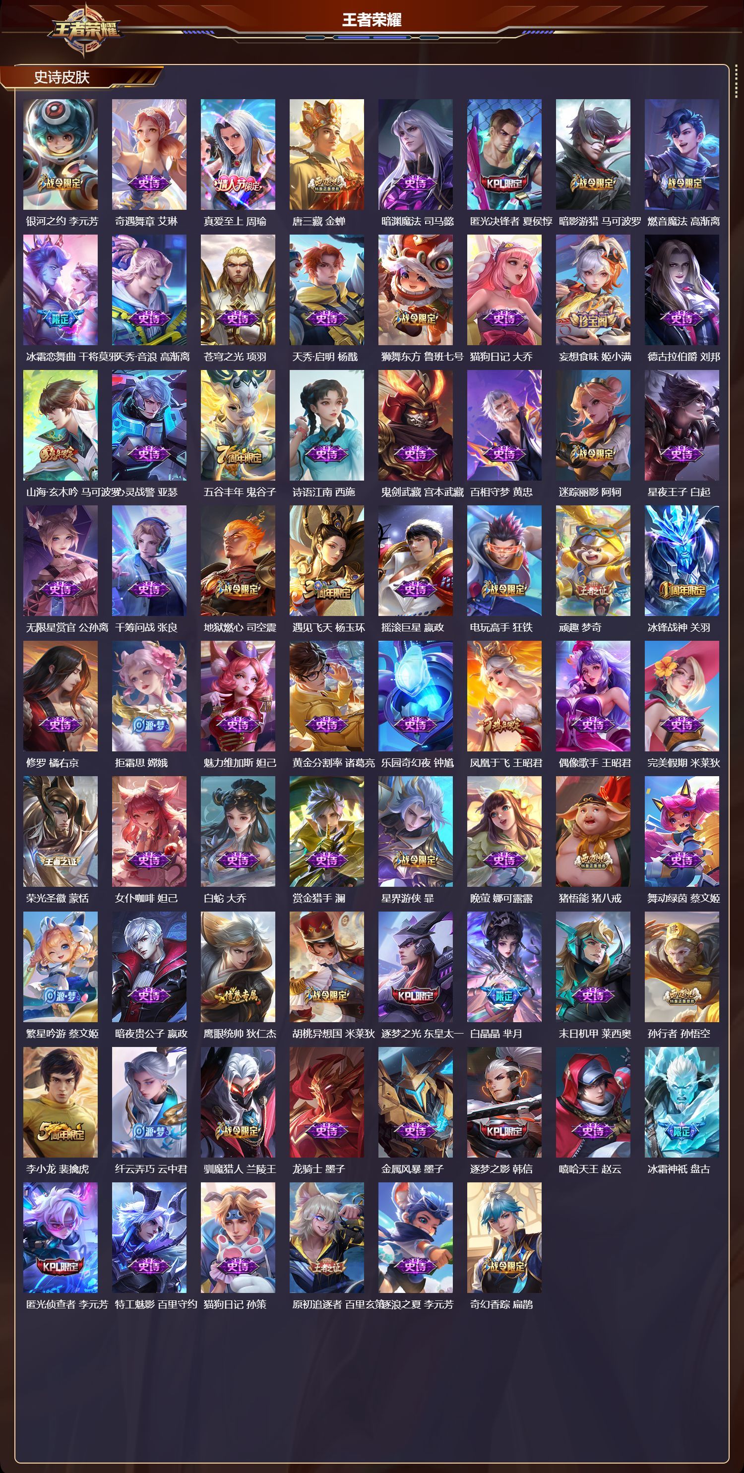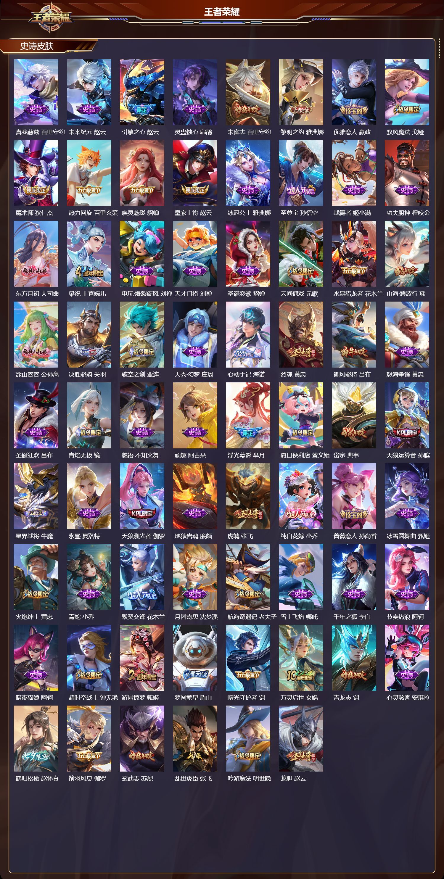 安卓QQ/无双王者/486皮肤/128英雄/10典藏/0珍品无双/2无双/1珍品传说/44传说/16