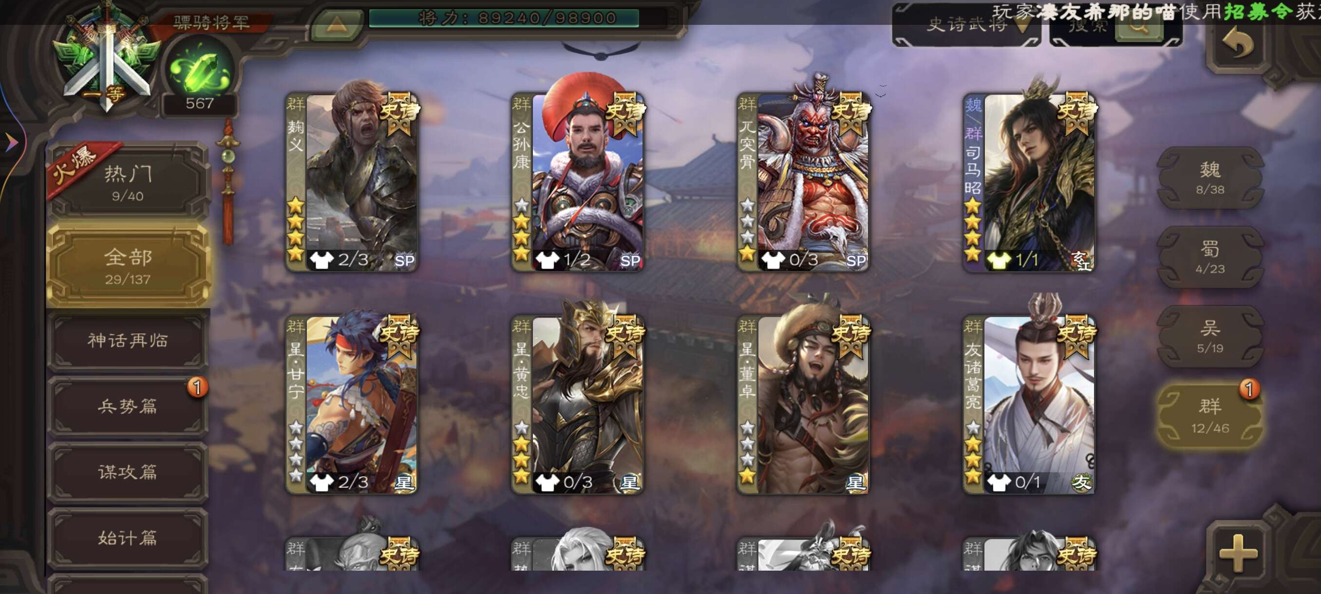 史诗武将数量: