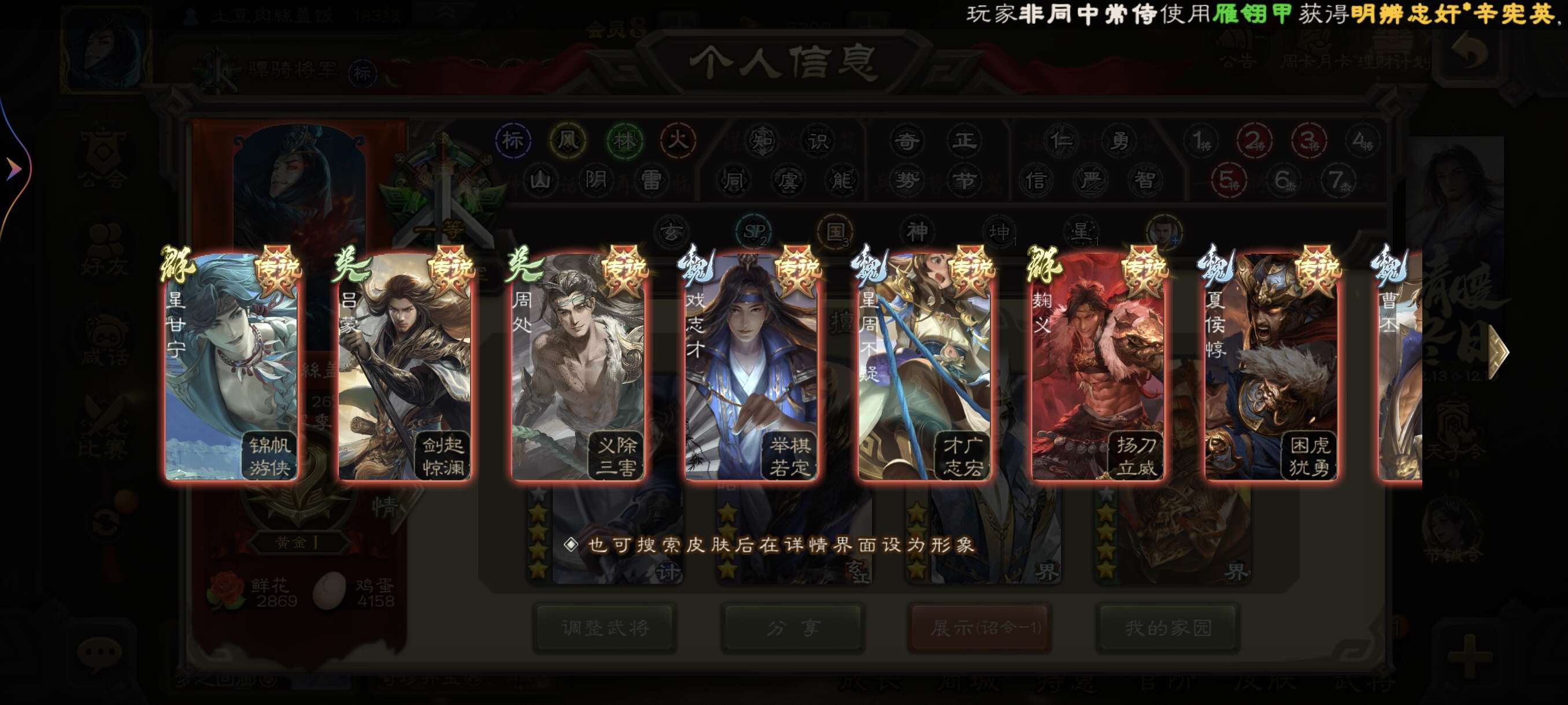 双斗地主权一,大宝文鸯,超多史诗,很多天宫精品,鲍信,排位也能爽玩,还剩20多宝珠,手气卡换将卡几千
