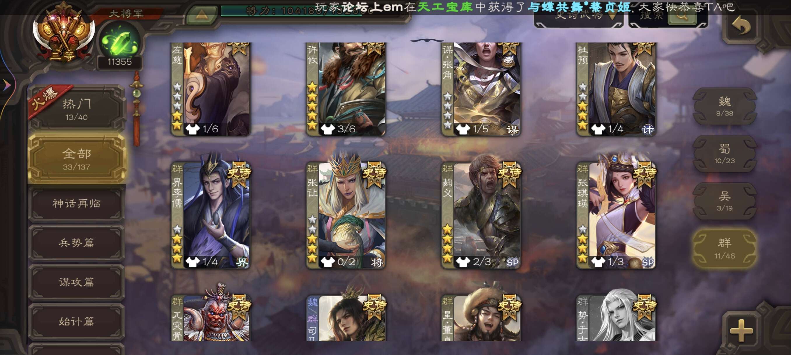 史诗武将数量: