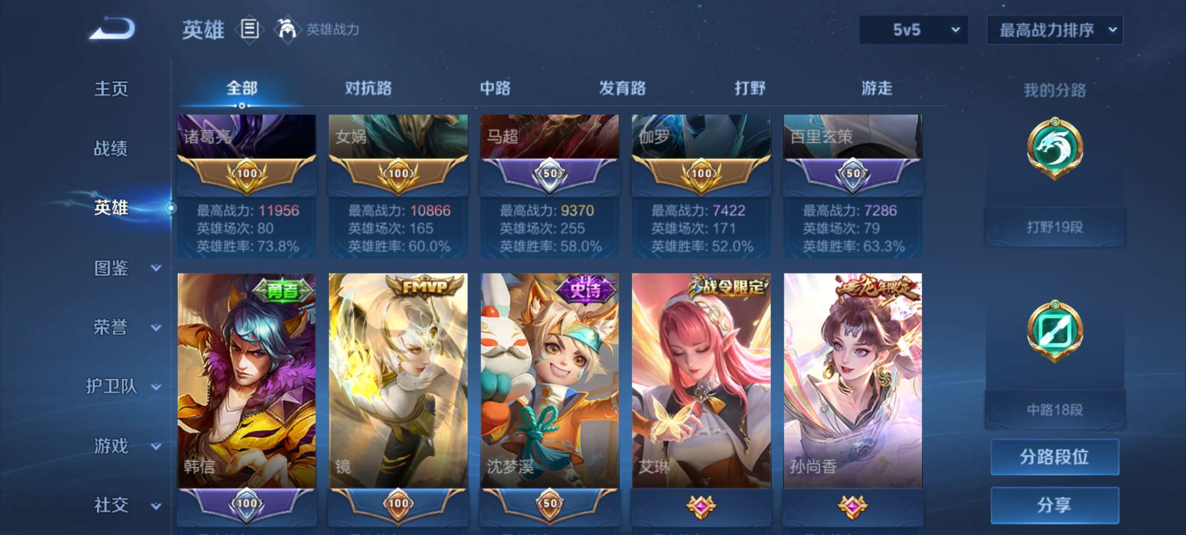 1.2w诸葛亮90瓶11000女娲9300这赛季可以帮你上荣耀最高80多星