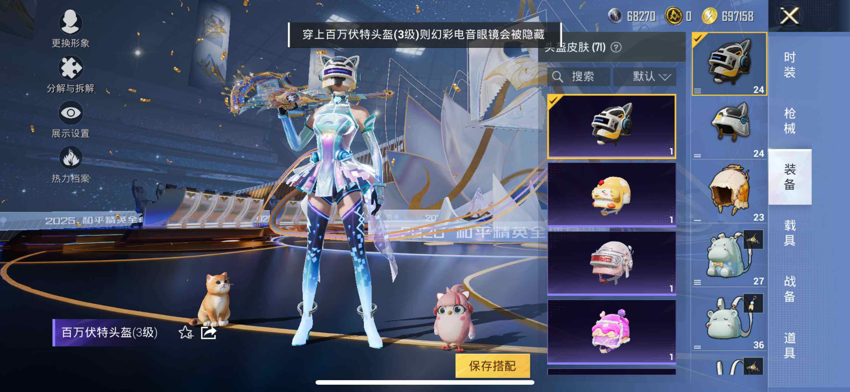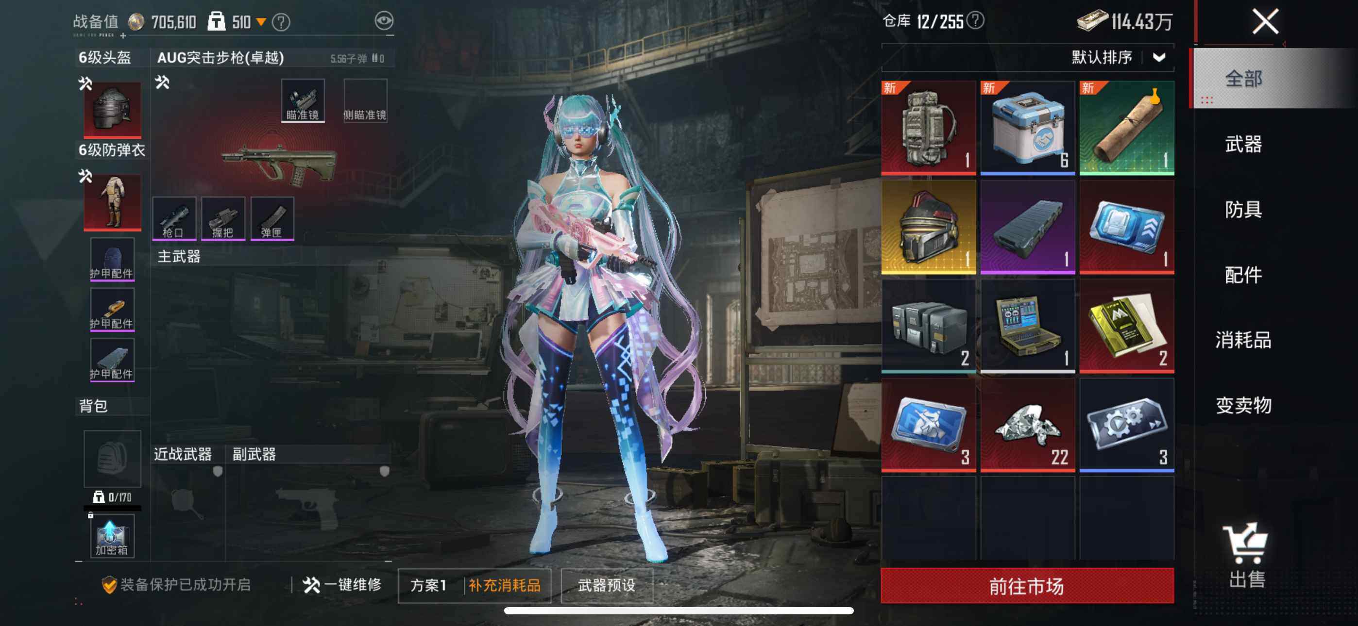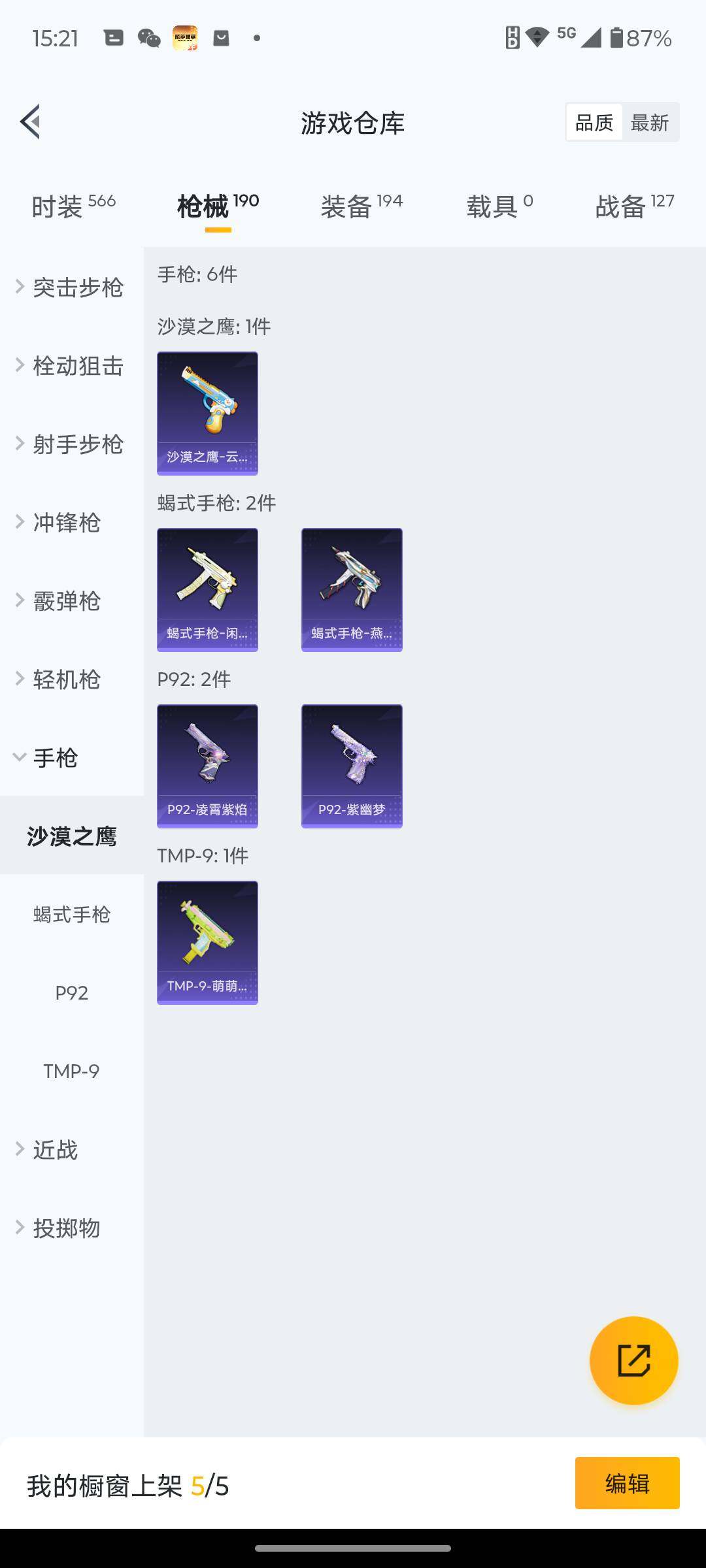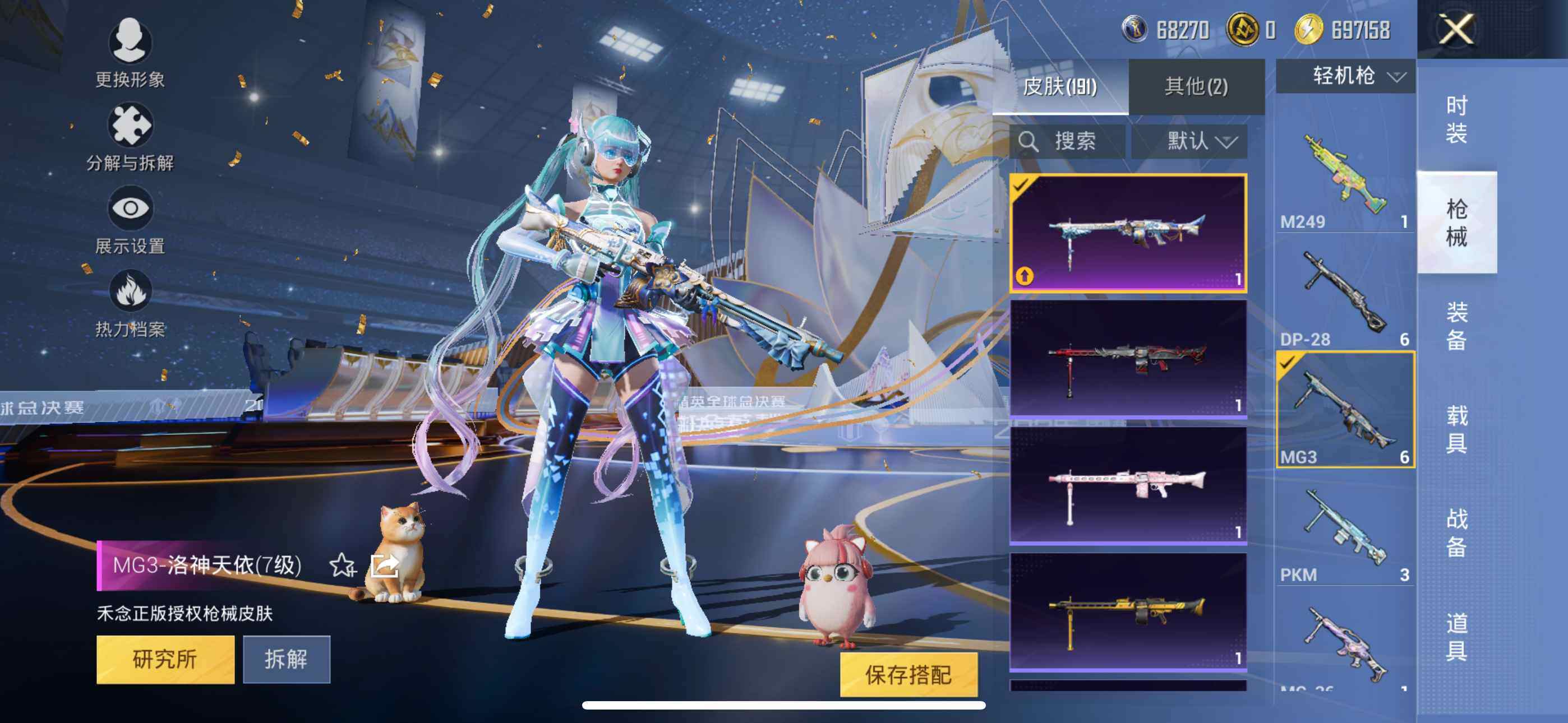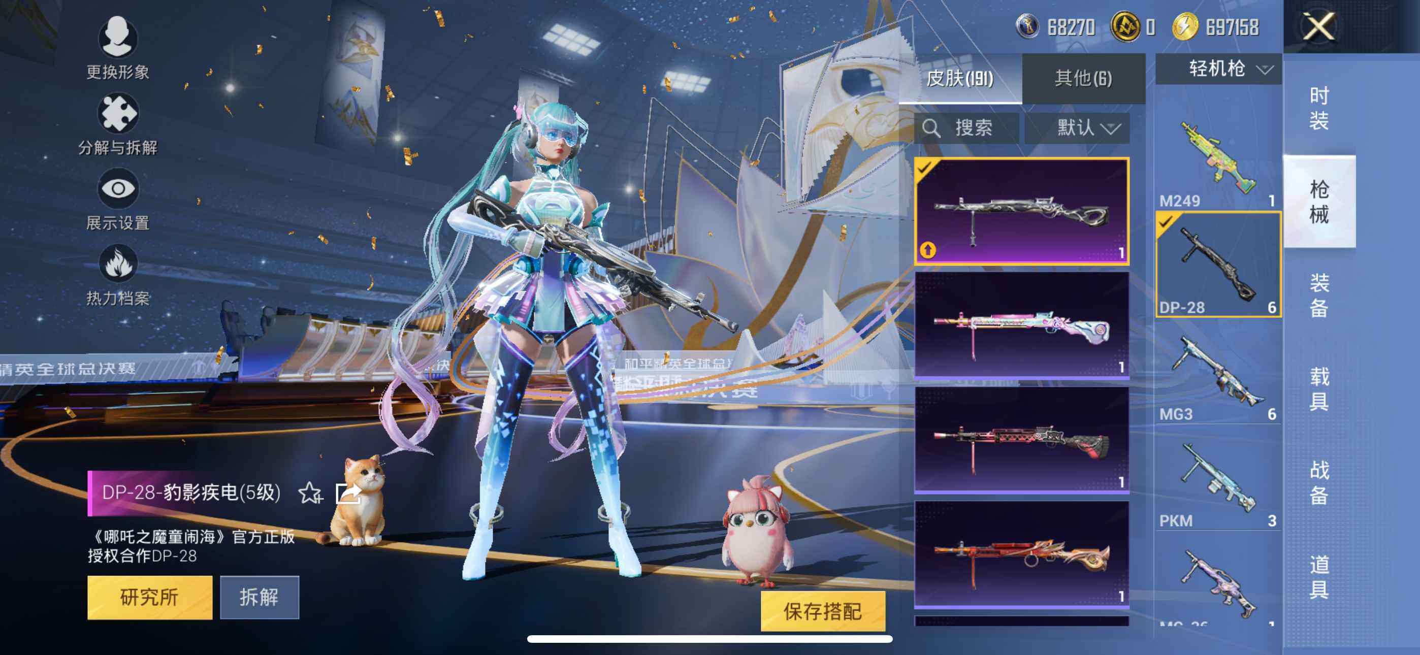 145套装/枪械5/装备194/战备127/王牌印记5/热力值54918/七级M416-风花雪月/五级Kar98K-巳巳如意/六级AMR-智耀战神/五级DP-28-豹影疾电/七级MG3-洛神天依/军刀雅典娜/套装-粉红小猪/金曜白虎/复仇流浪者/粉装-幻彩电音/M416-风花雪月/Kar98K-巳巳如意/AMR-智耀战神/DP-28-豹影疾电/MG3-洛神天依/天之羽翼飞行器/极意拳锋飞行器/百
