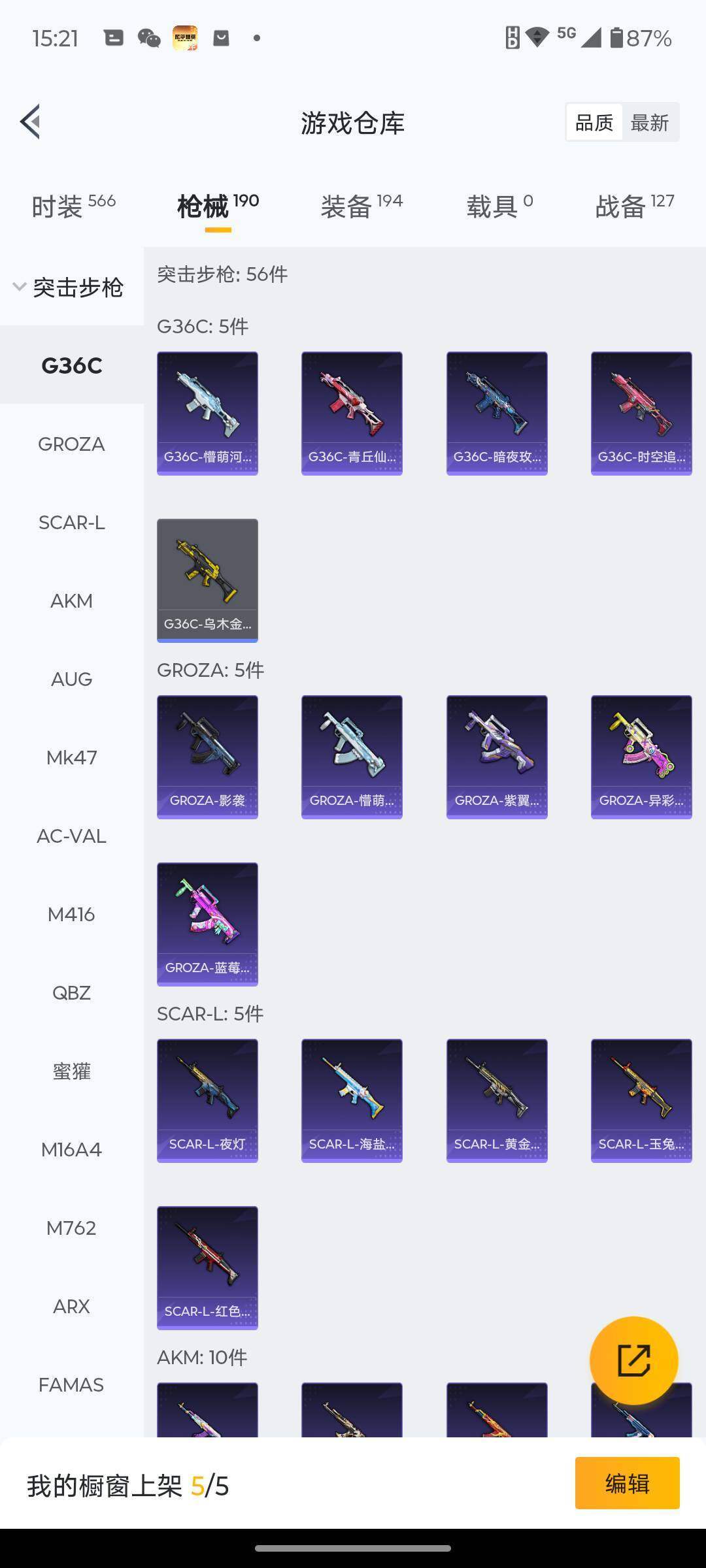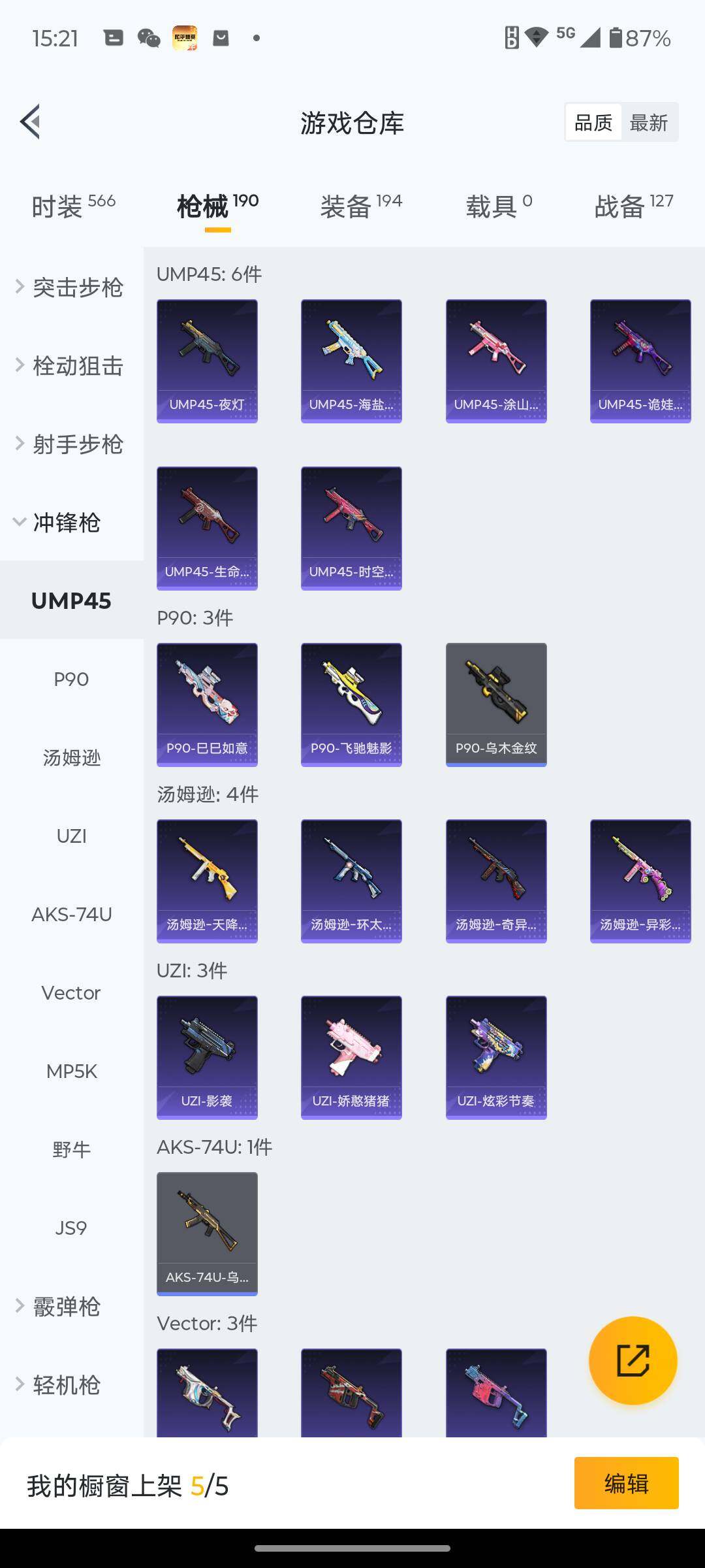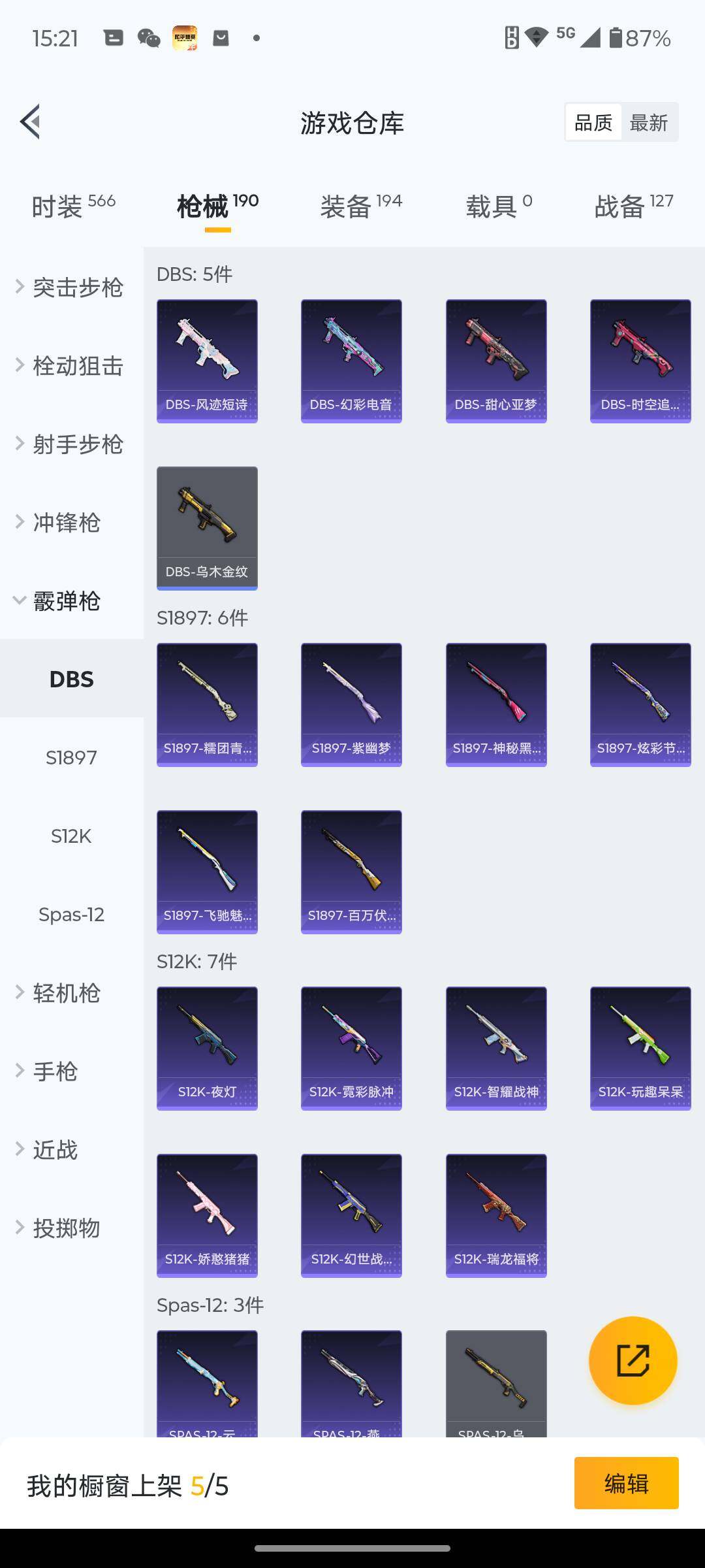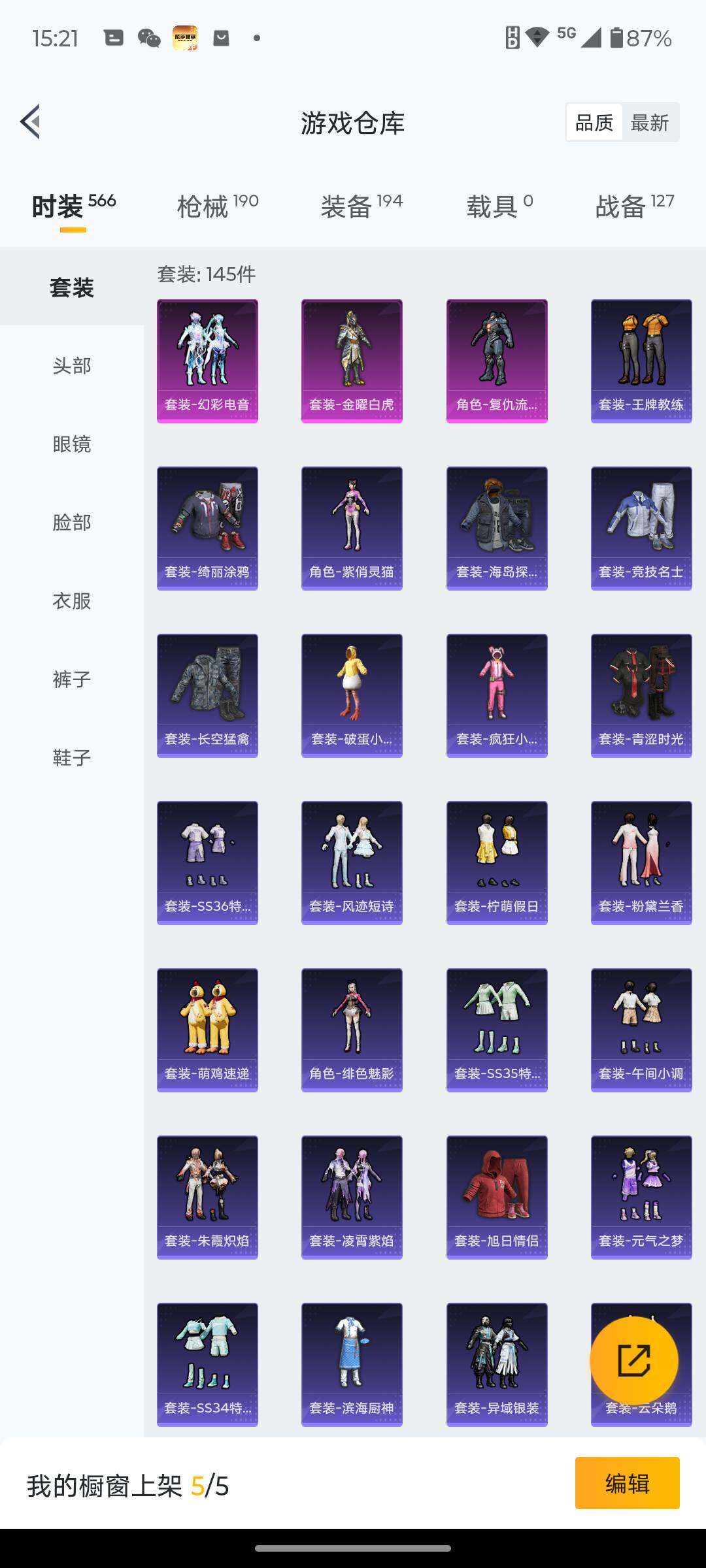 145套装/枪械5/装备194/战备127/王牌印记5/热力值54918/七级