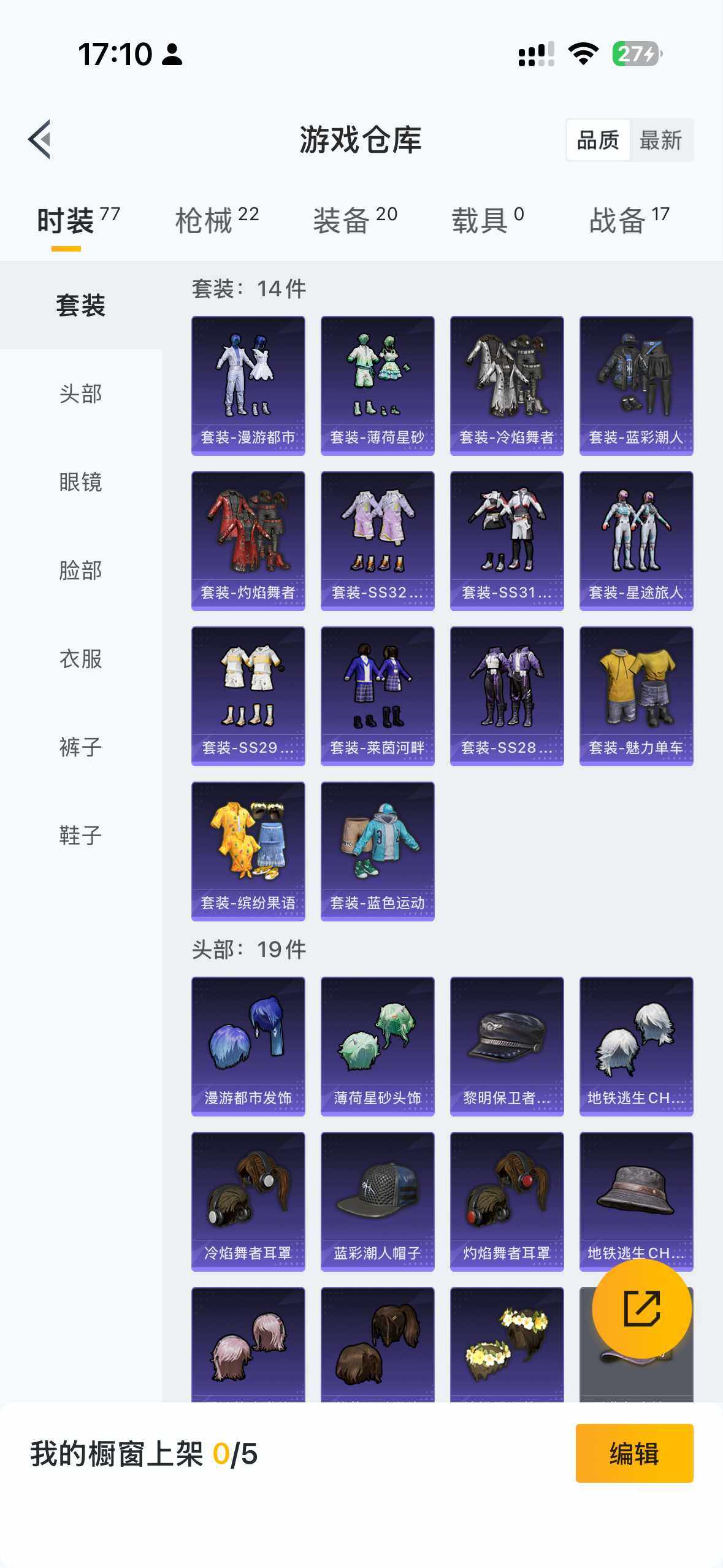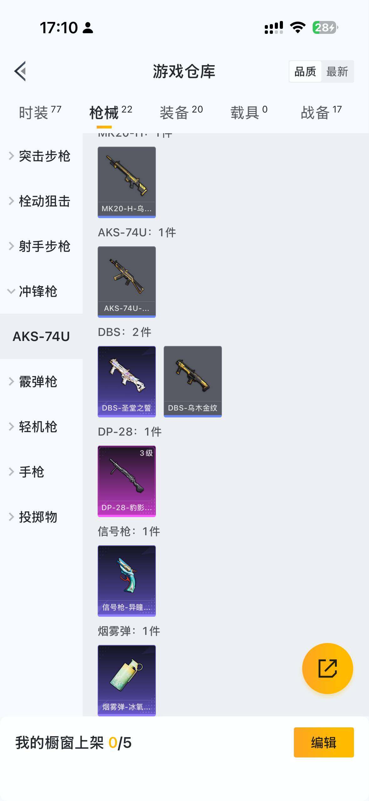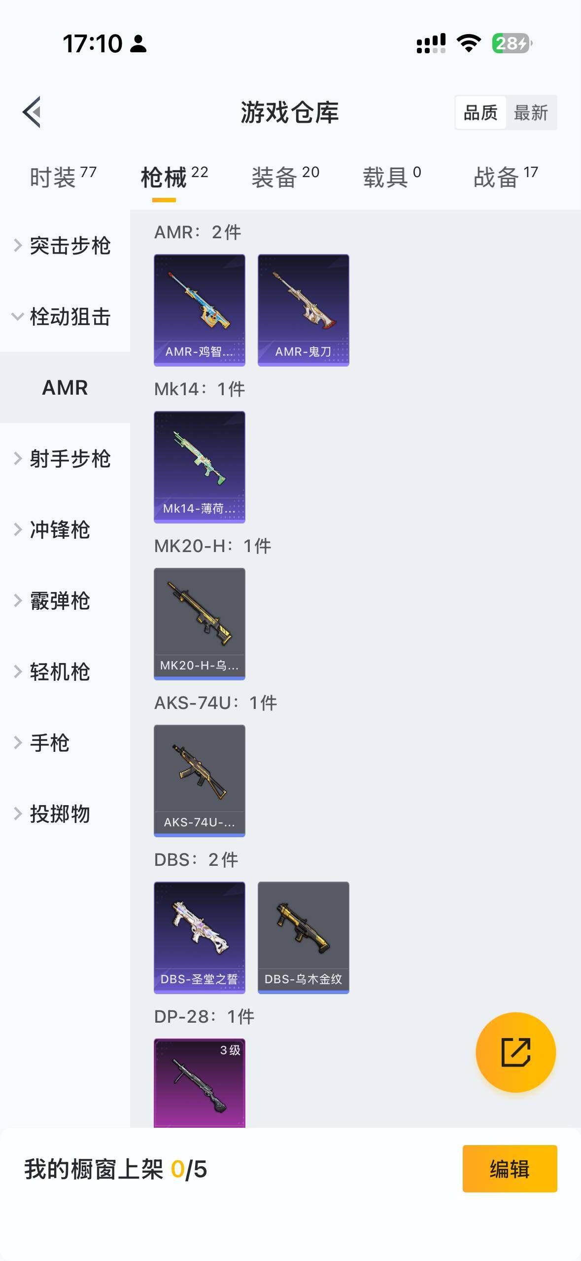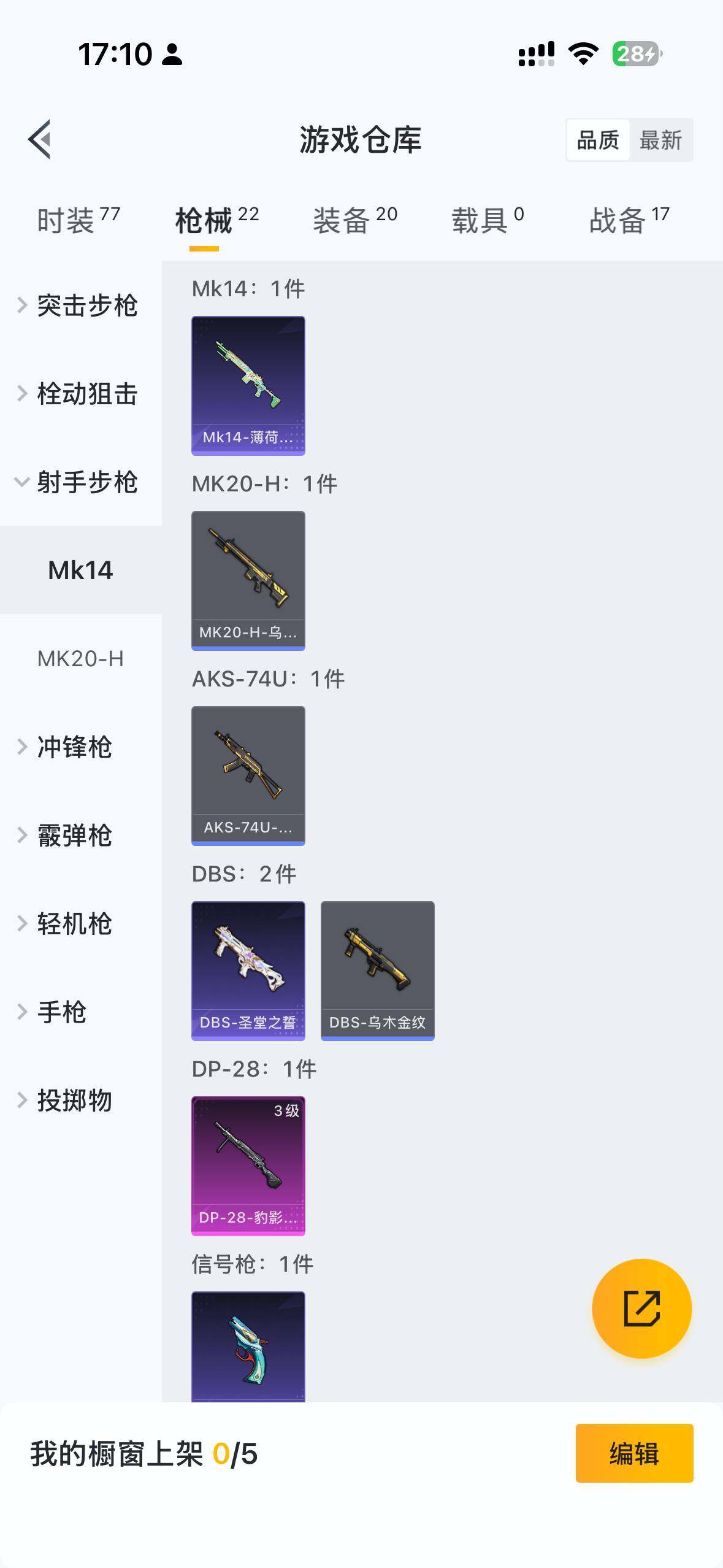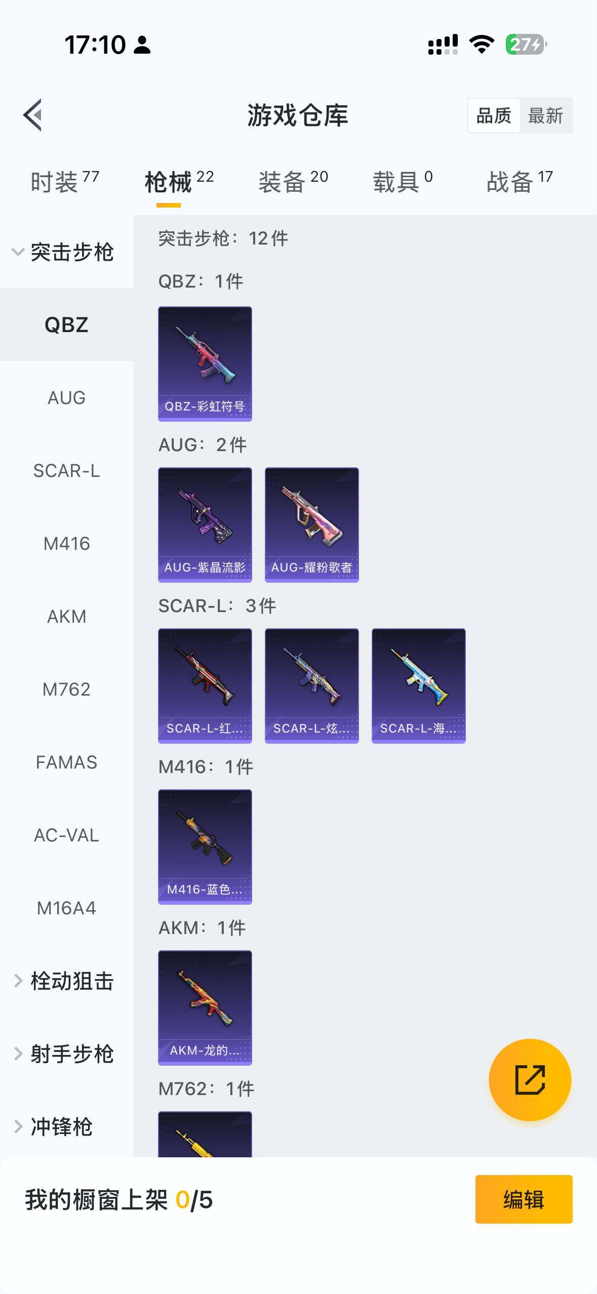 14套装/枪械2/装备20/战备17/热力值6099/三级M16A4-垂柳戏鸭/三级DP-28-豹影疾电/M16A4-垂柳戏鸭/DP-28-豹影疾电/AKM-龙的传人/SCAR-L-炫彩节奏/SCAR-L-红色方程式/M416-蓝色火焰/AUG-耀粉歌者/QBZ-彩虹符号/M762-天降萌叽/AC-VAL-天降萌叽/AMR-鬼刀/DBS-圣堂之誓/SS28特训/SS29特训/冷焰舞者/灼焰舞者/
