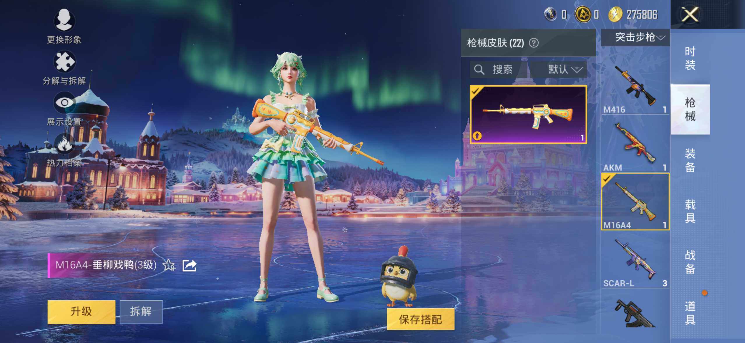 14套装/枪械2/装备20/战备17/热力值6099/三级M16A4-垂柳戏鸭