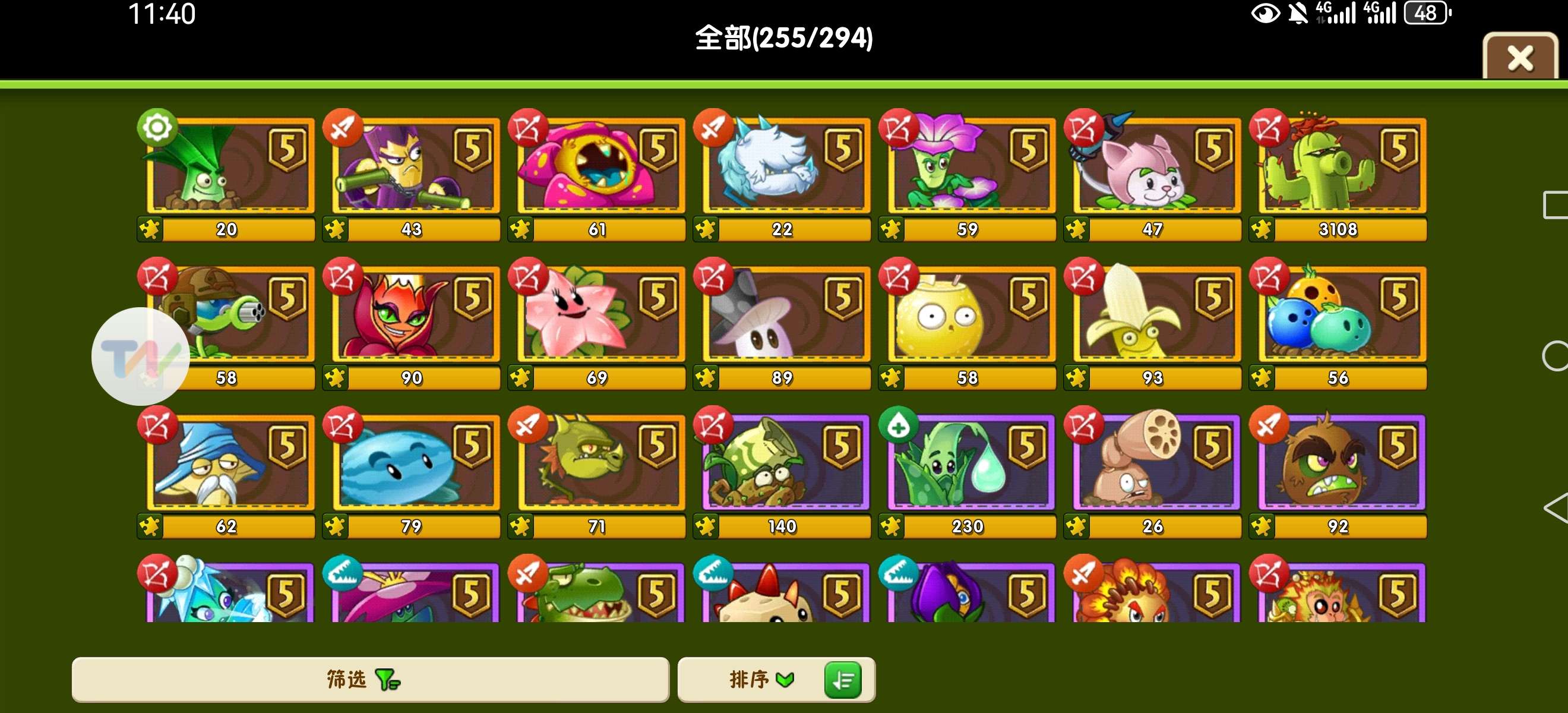 3阶超级机枪豌豆,香蕉枫影剑客山竹桑葚瓷砖魔豆阳光韭菜,可上传云端,n有满级紫手套,5阶机枪仙人掌猫