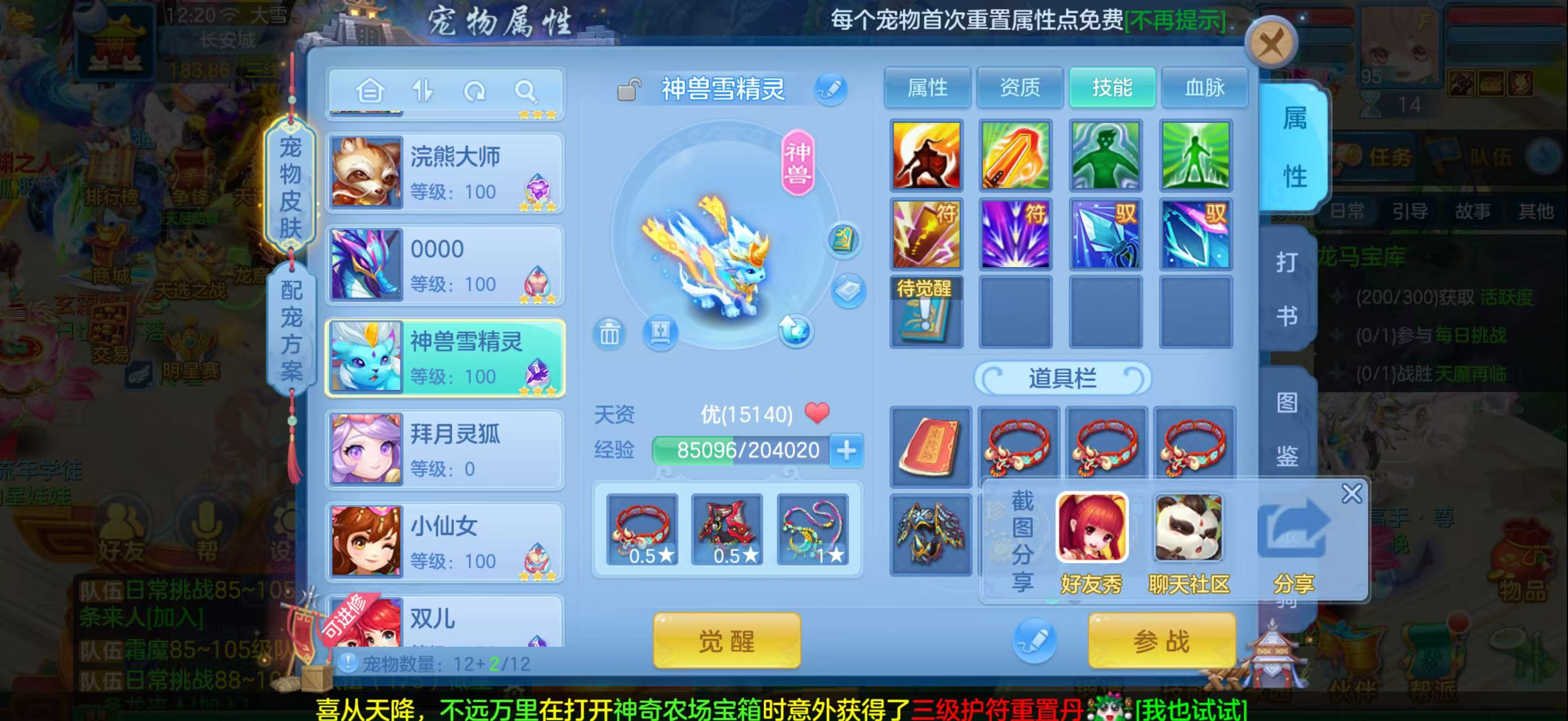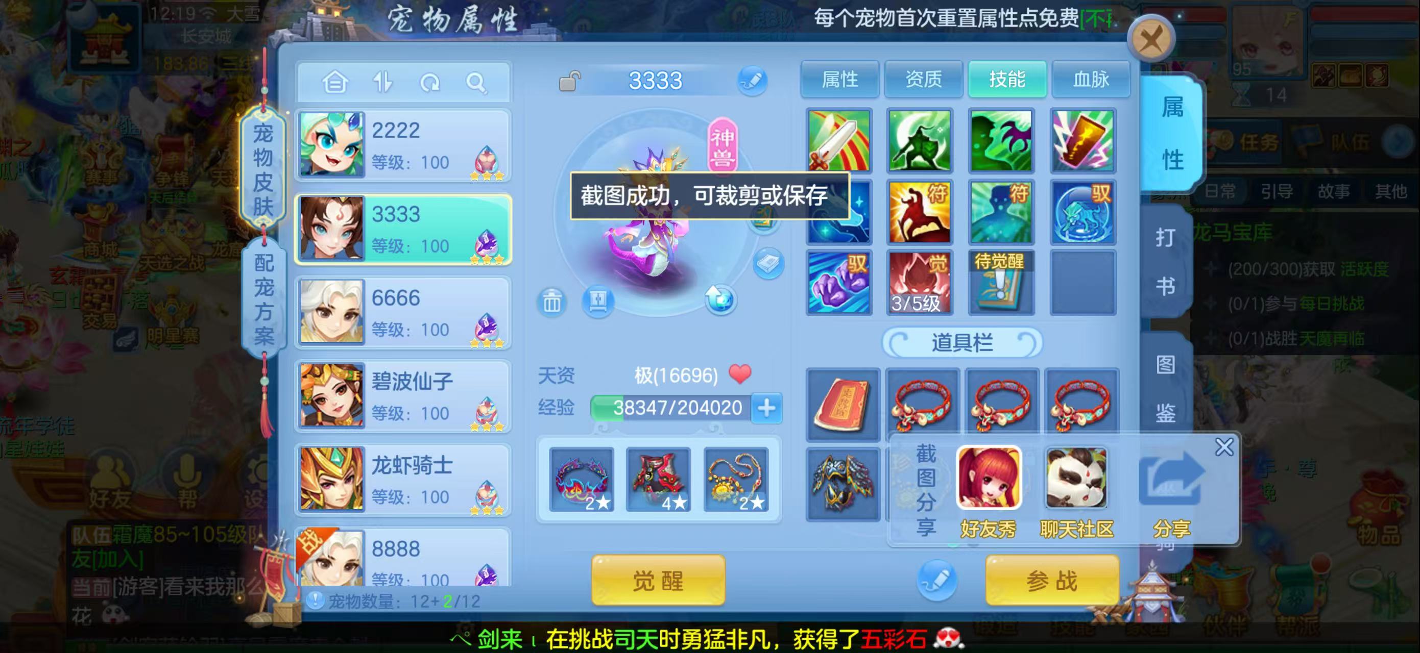 双神兽 一蛇一雪精灵,已存40灵随便指定换神兽。4个宠物皮肤 。