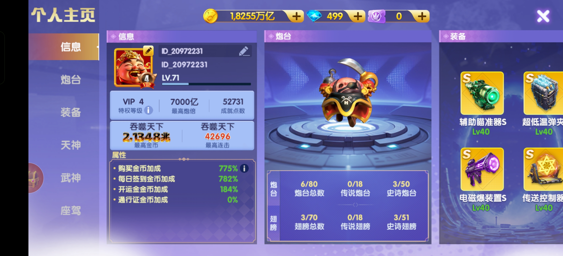 鱼乐达人 新号买断1.8京7000亿炮大部分首杀都在 有武神 小米安卓机通用,能换绑,商家