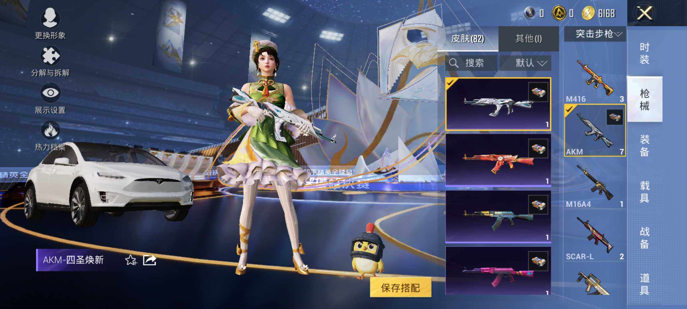 62套装/装备82/载具1/战备50/热力值21799/特斯拉ModelX(珍