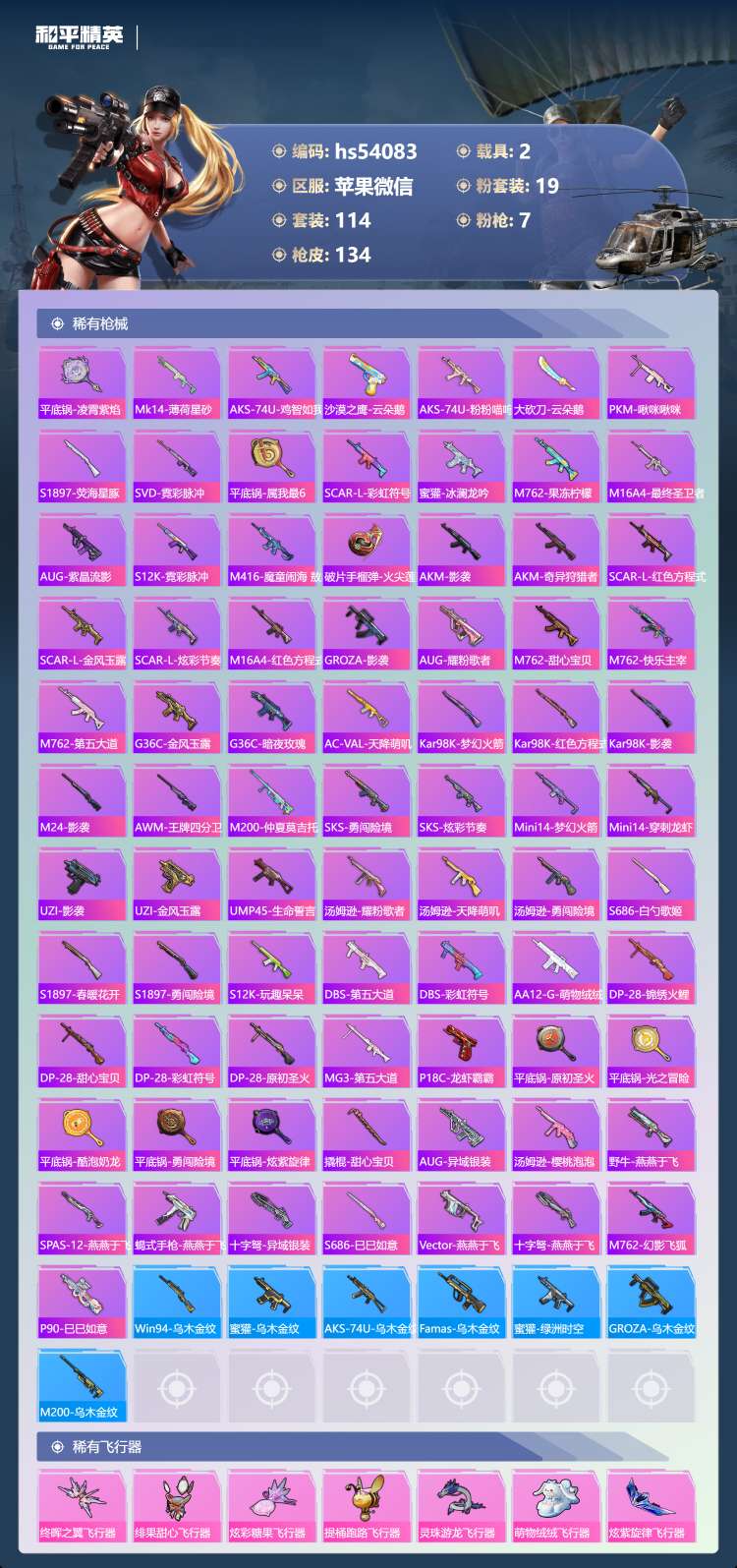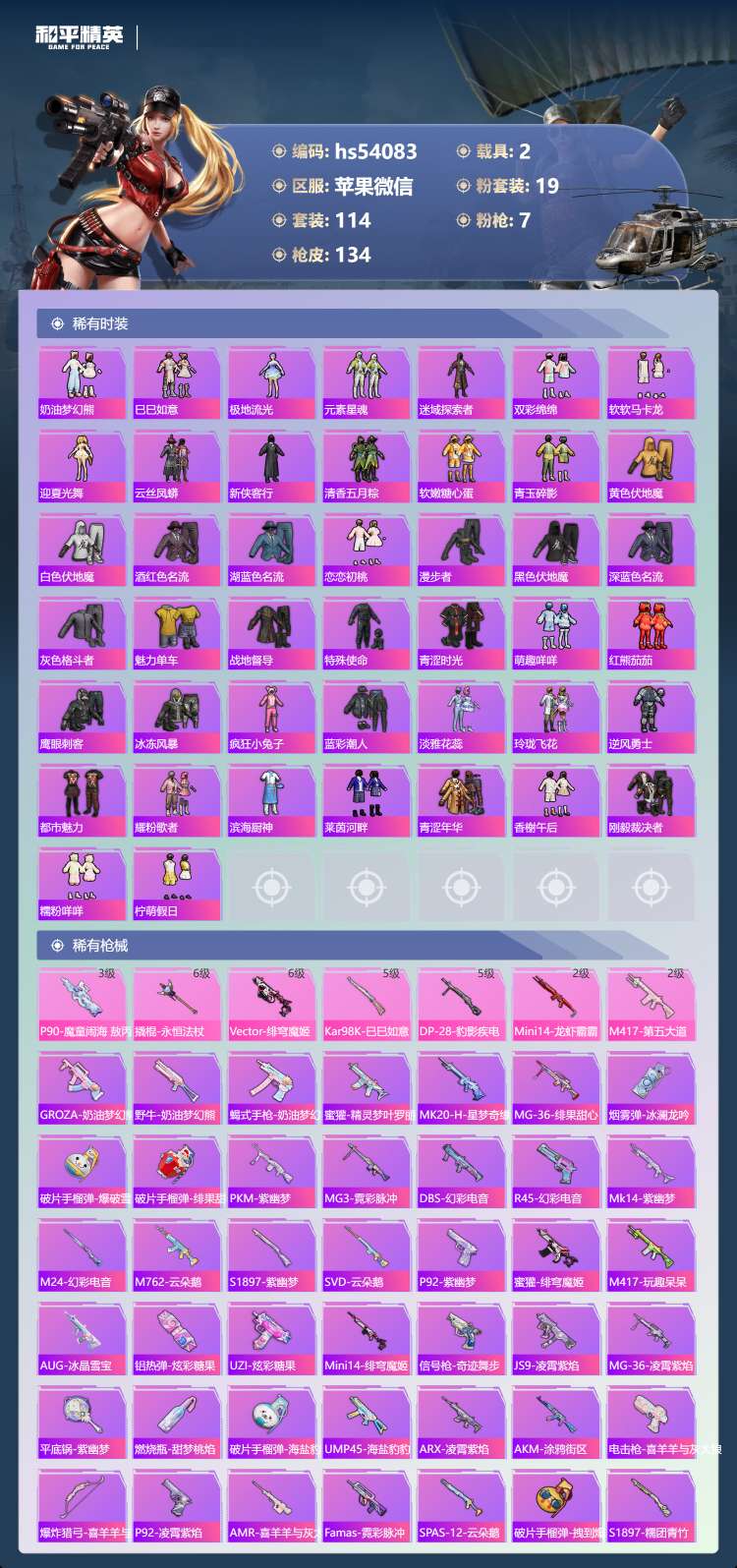 hs54083 苹果微4王牌印记-19粉装-7特效枪-2载具-49613热力值-114套装-13