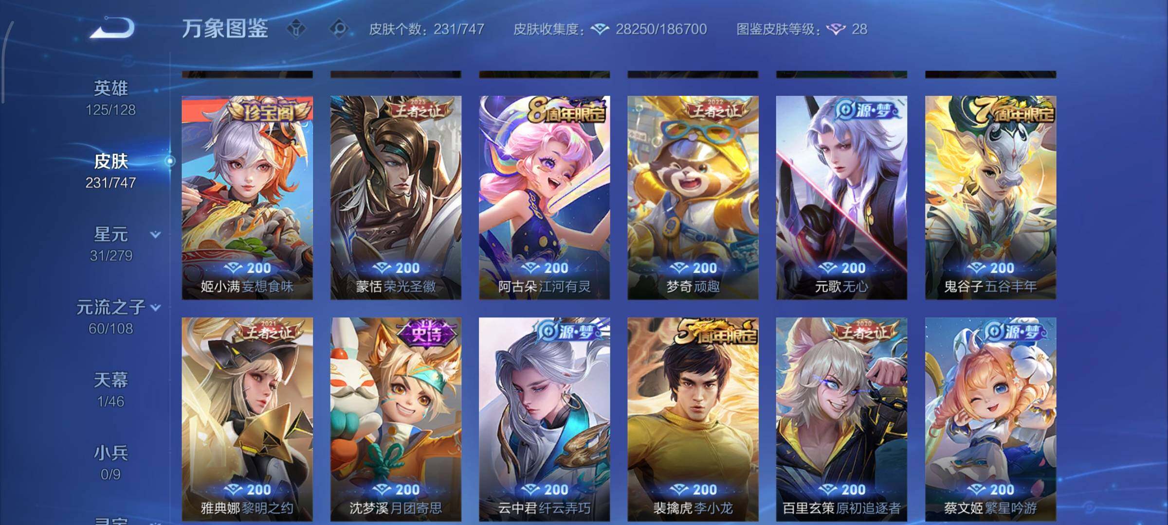 【精品小号·杀手不太冷·愿照岁时盈·久胜战神·胖达荣荣·游园惊梦·繁星吟游·可二次】YXw8450-安卓Q-125英雄-231皮肤-18王者印记-300铭文-贵族积分2w【贵族7】【1典藏·5传说·1天幕·2按键】【因赛季更新游戏段付以上号为准!】