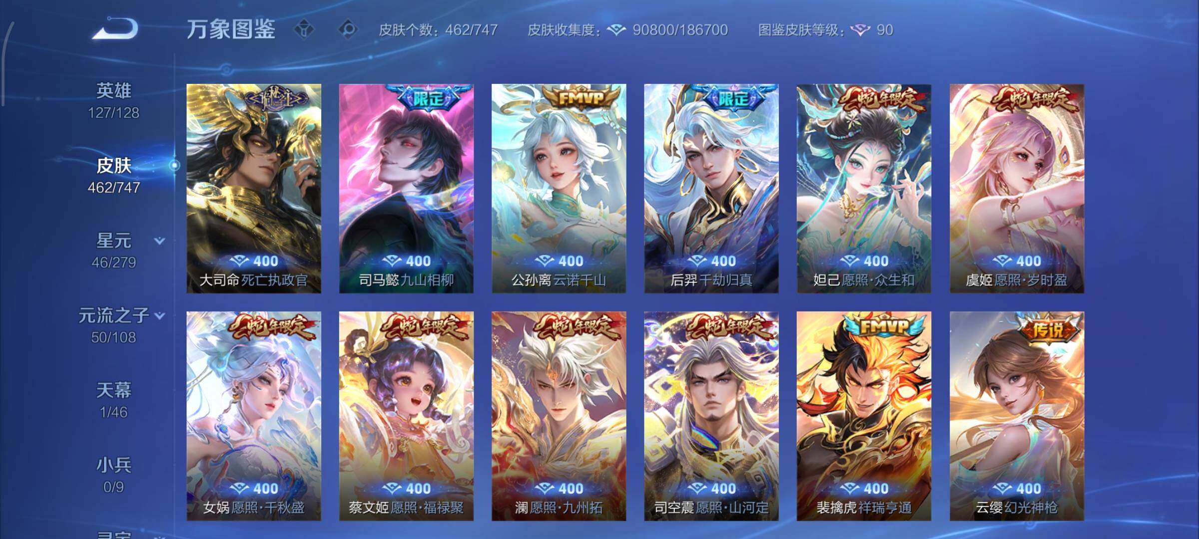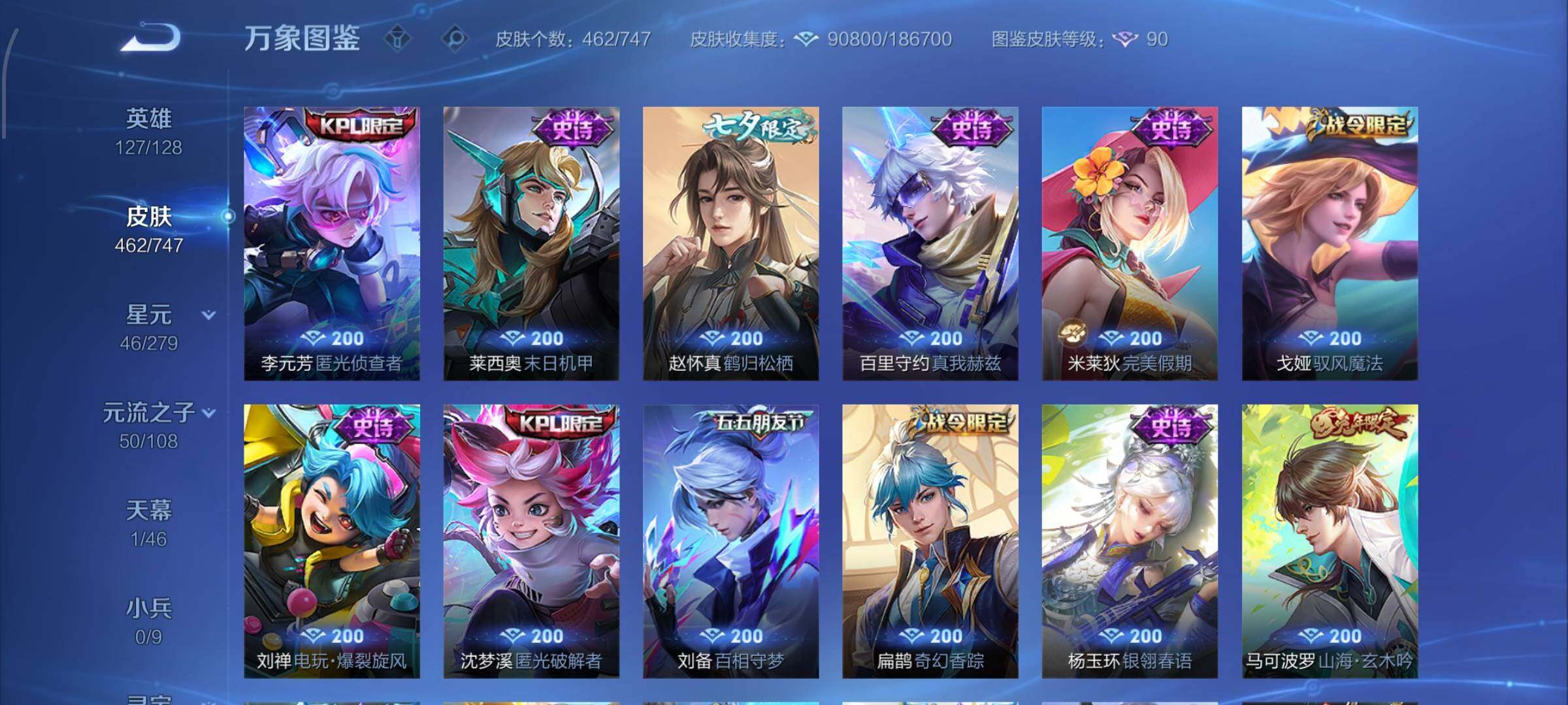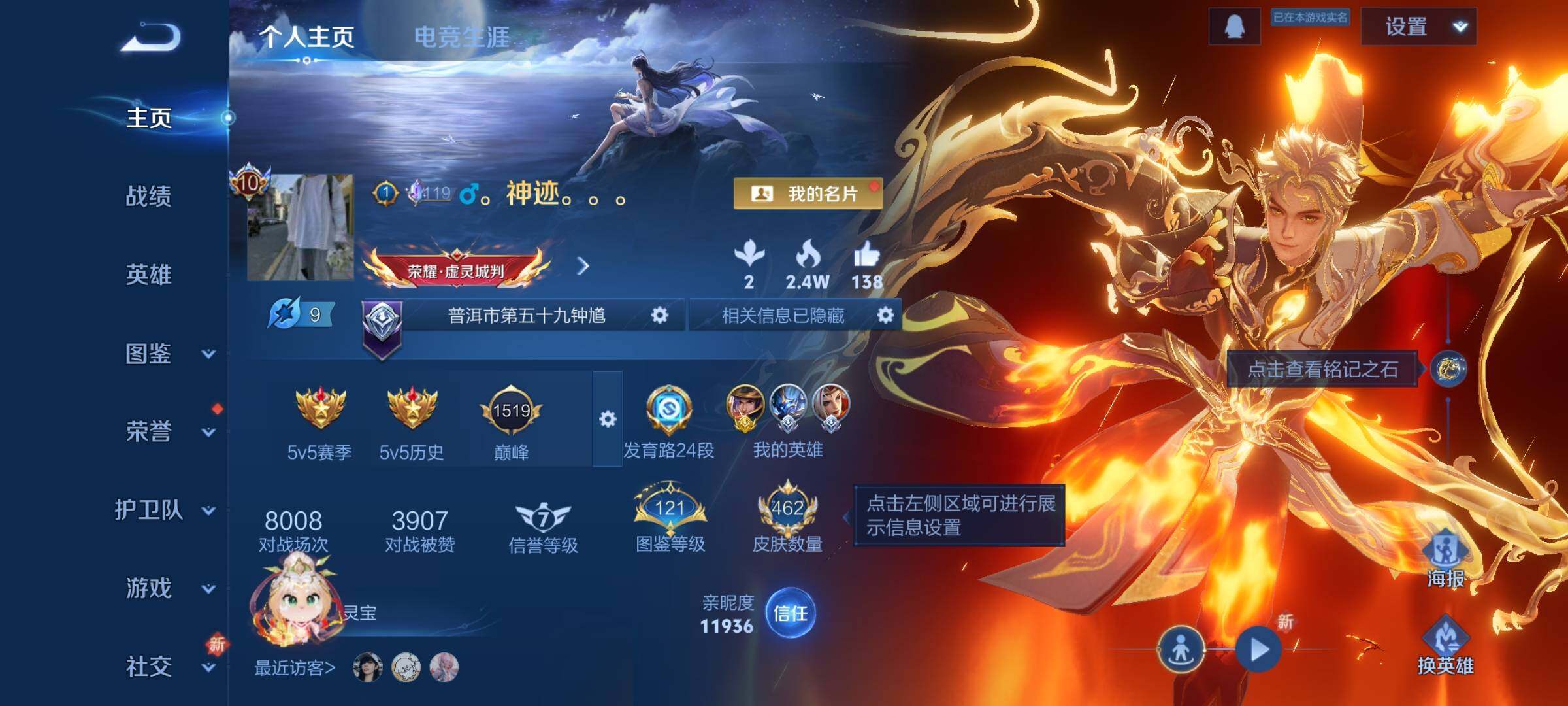 【精氪贵族v10·4典藏·5无双·2珍品·68传说·4星传说·39按键·岁雨灵司·满蛇年限定·千劫归真·可二次】YXw8455-安卓Q-127英雄-462皮肤-11王者印记-290铭文-贵族积分21w【贵族10】【4典藏·5无双·2珍品·4星传说·68传说·1天幕·39按键·167个性戳】【因赛季更新游戏段付以上号为准!】