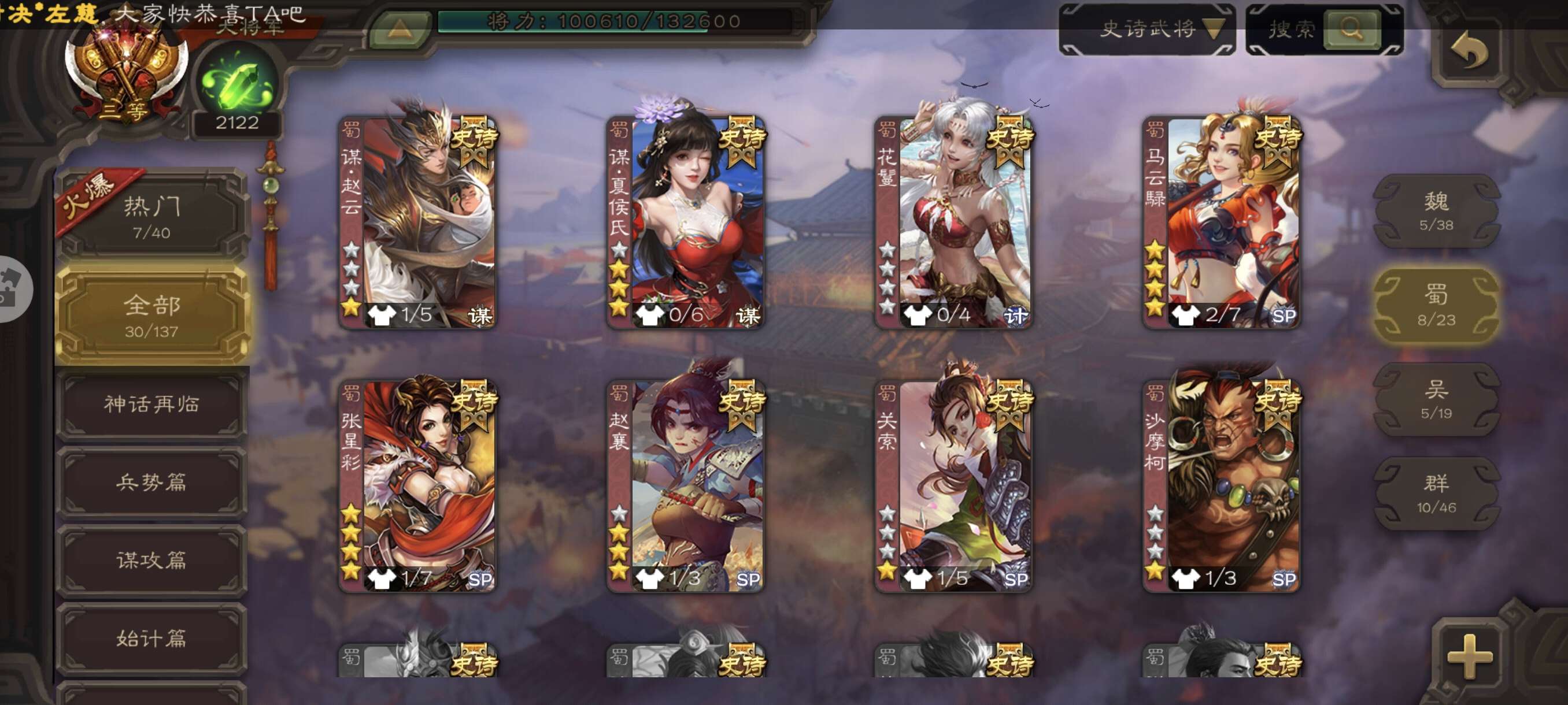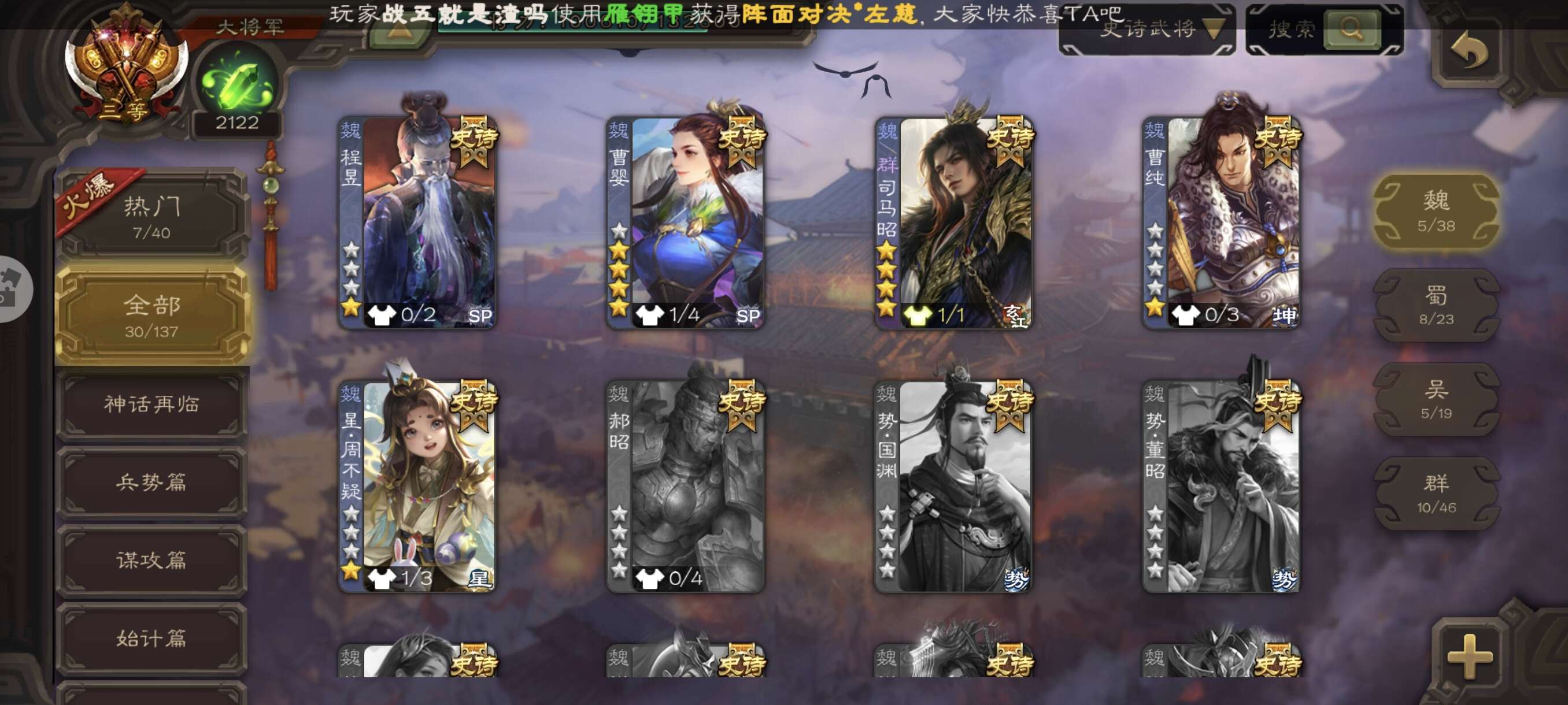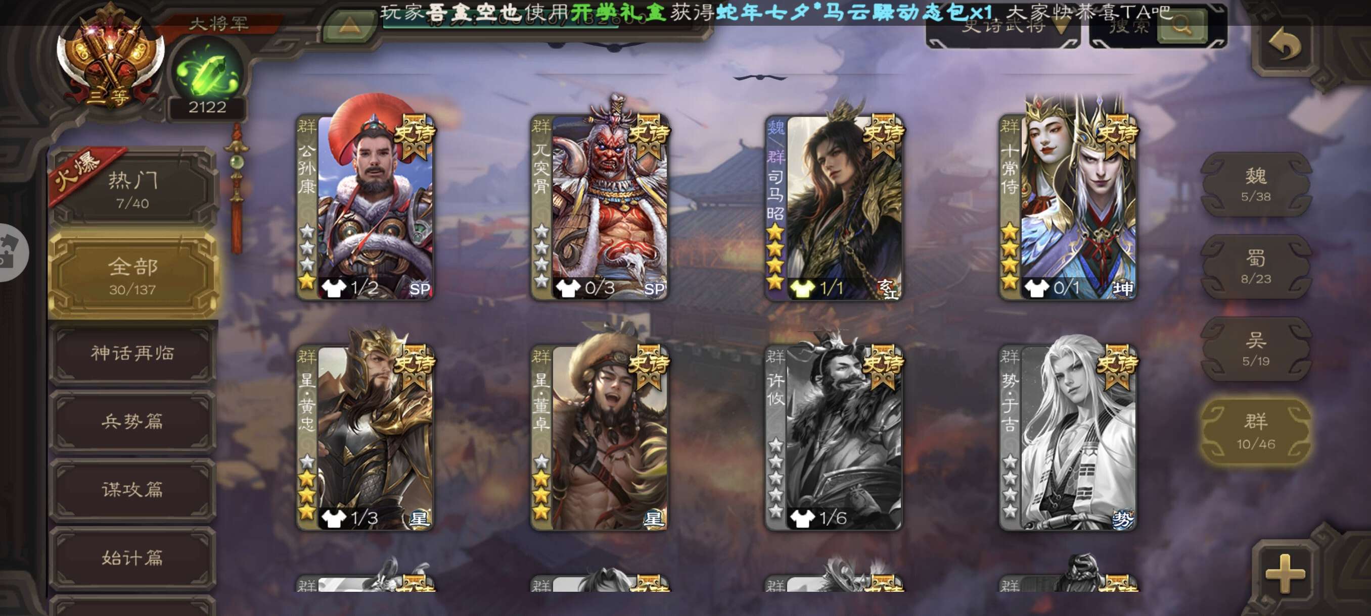史诗武将数量: