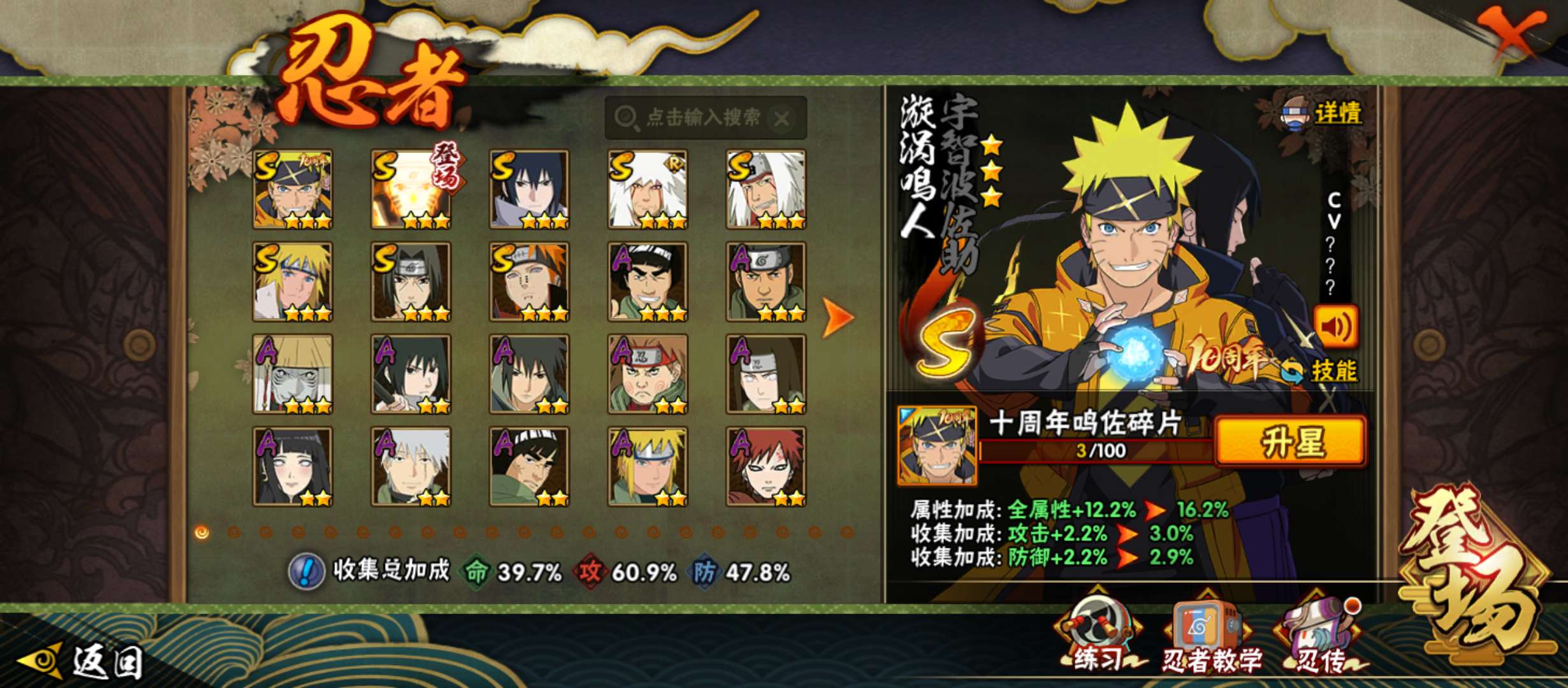 十周年鸣人,黄猿,紫狗,四个198忍者,七千金币,21抽,还有连体王者49皮肤(22有空交易)